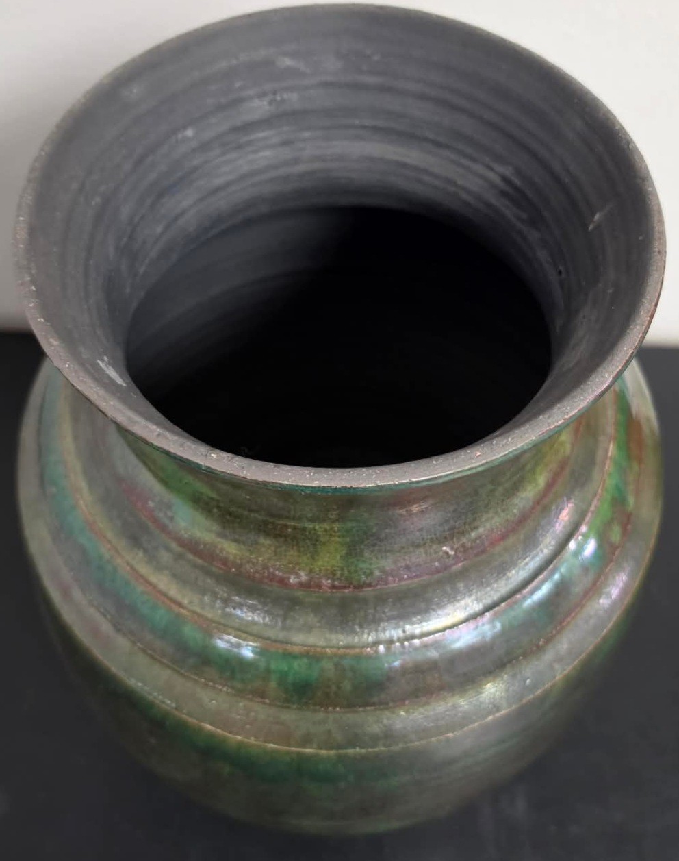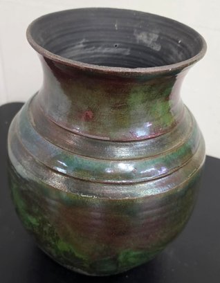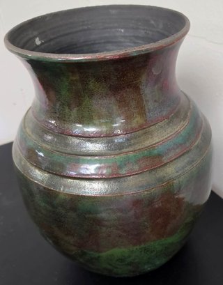 Appears to be a decorative raku pottery vase. Measures approximately 10 x 13.5.