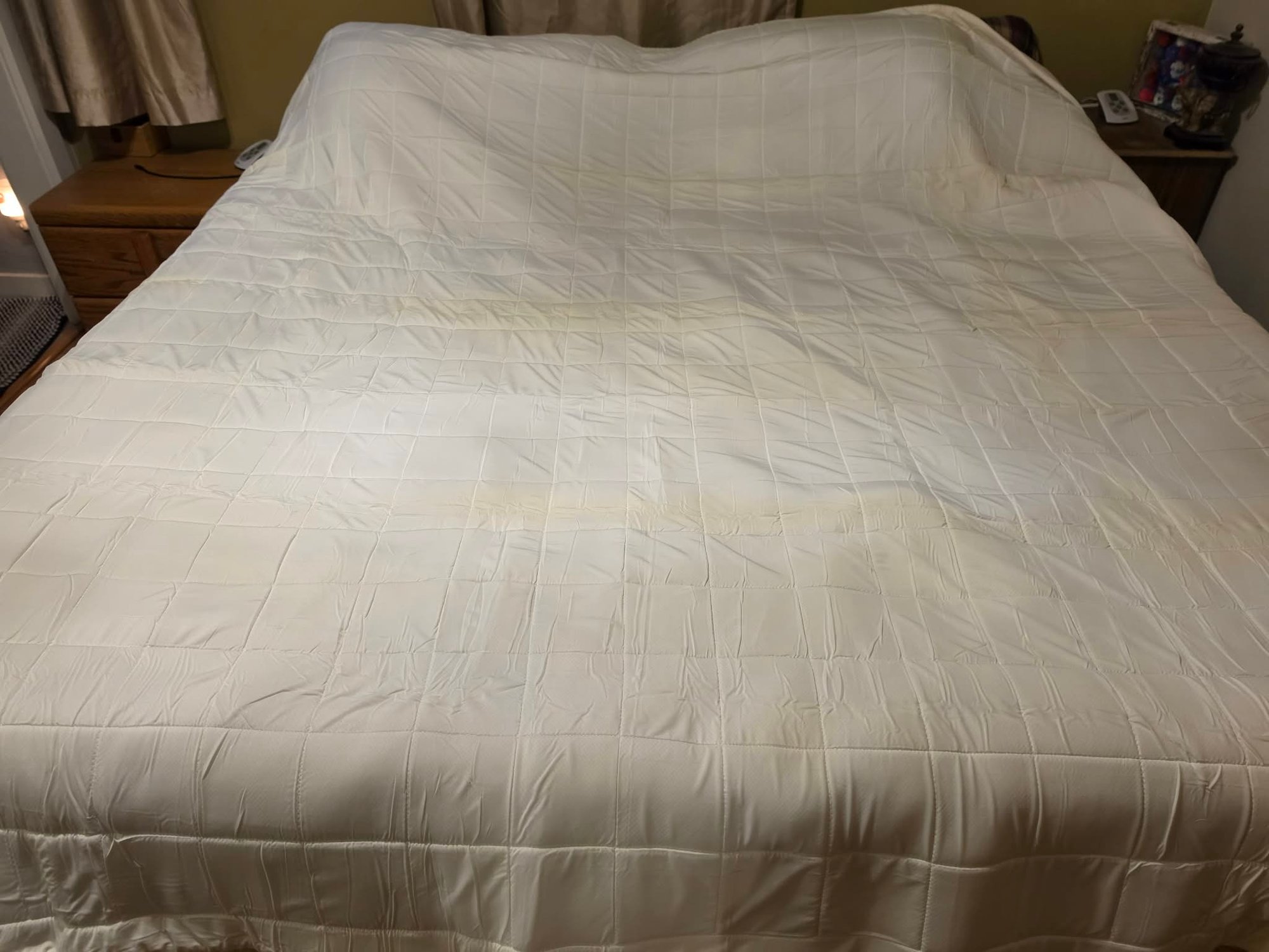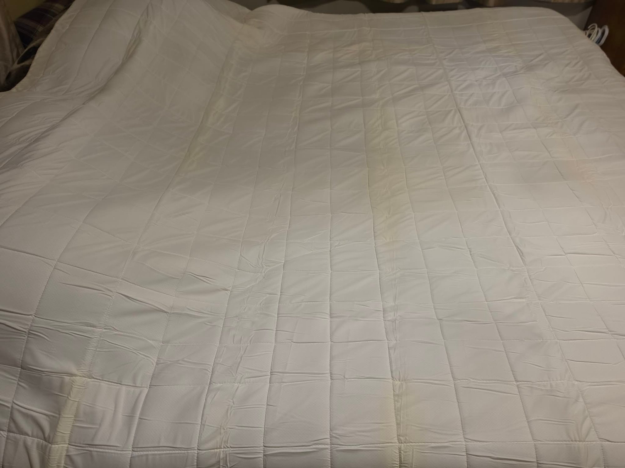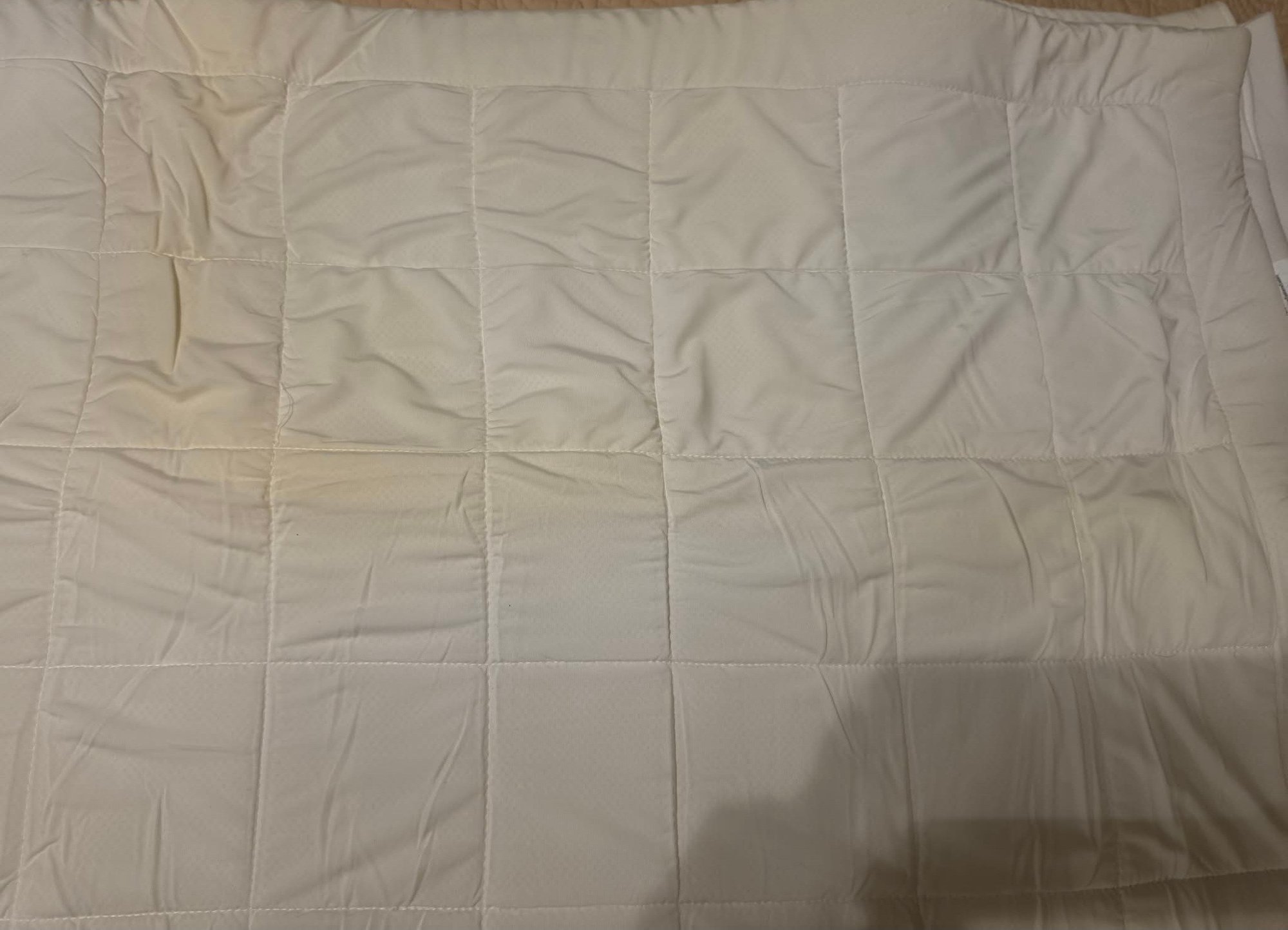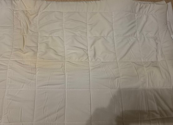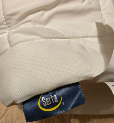 Appears to be a Serta Cooling mattress pad or topper. Some yellowing consistent with folds for the most part. Has been in storage for years. Measures approximately 90 x 96.