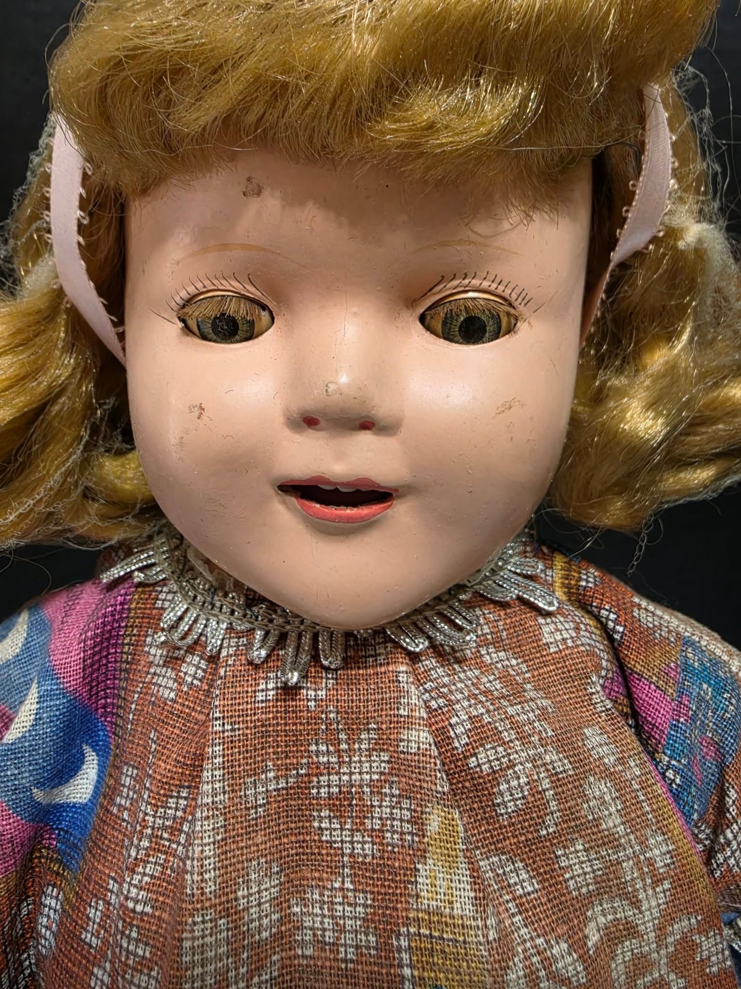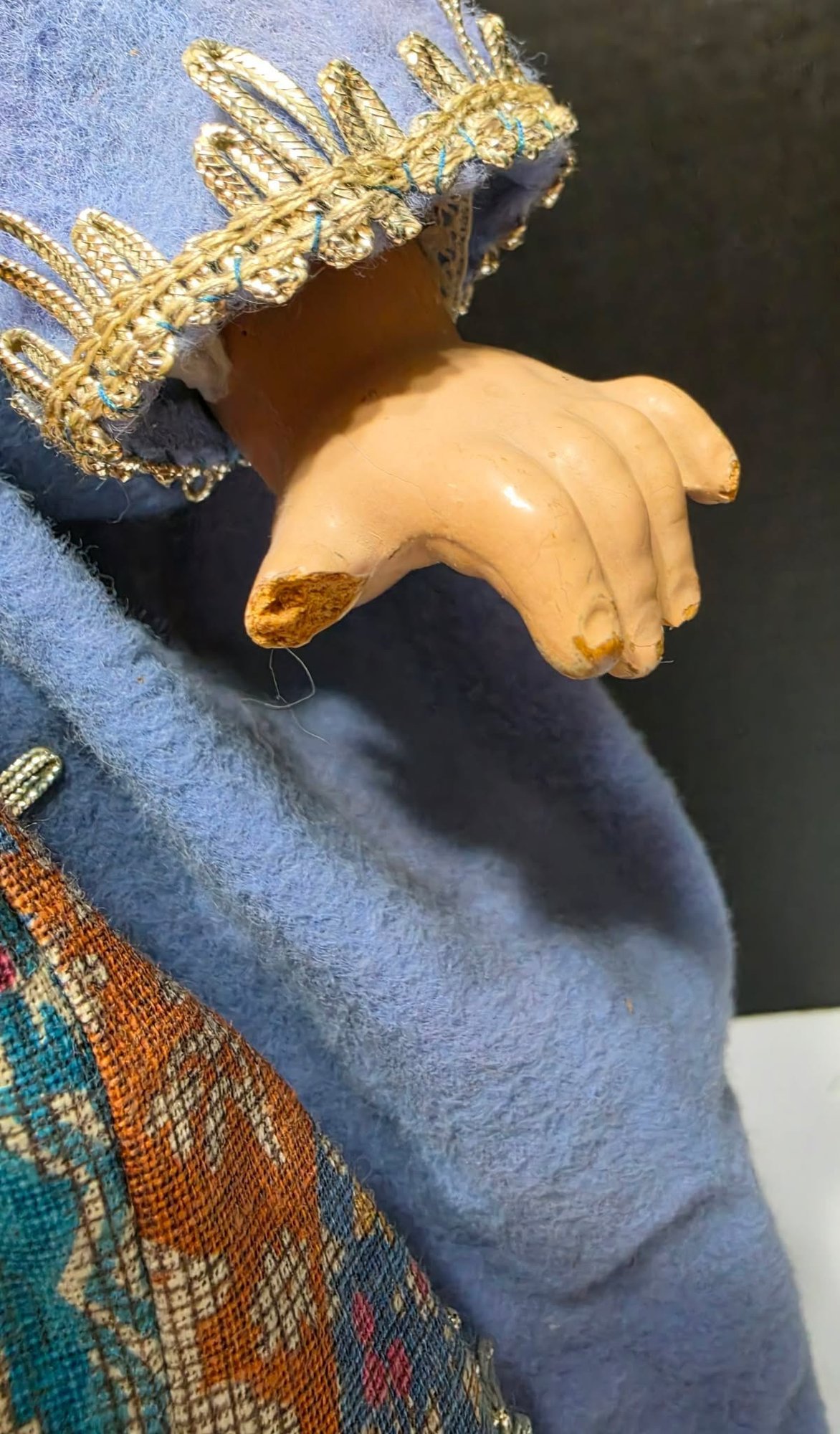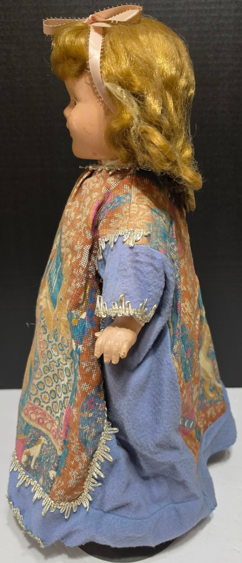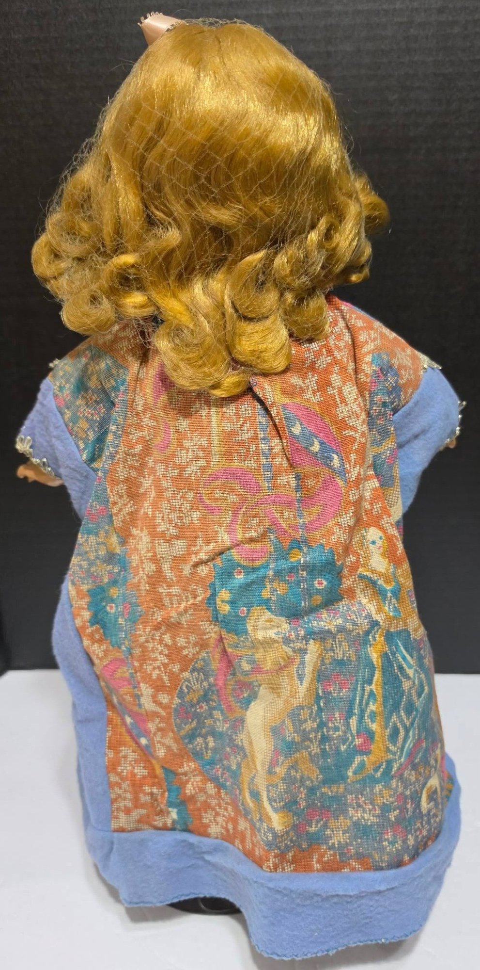 Appears to be a vintage German bisque head doll, possibly manufactured by Armand Marseille, does have a damage to the hand and upper thighs. Measures 19.5h. No maker noted.