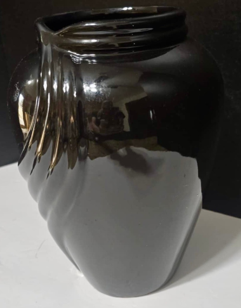 Appears to be Vintage Haeger Pottery Black Ceramic Drape Vase Swirl Glossy. Measures 7 x 10. No cracks or chips noted . However there is a little bit of crackling in the bottom part of the vase.