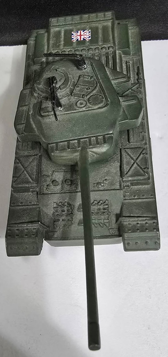Appears to be vintage metal military toys. The tank feels like metal and resin. Measures 4.5 x 1.5 x 1.25. The soldiers Measures 2.25.