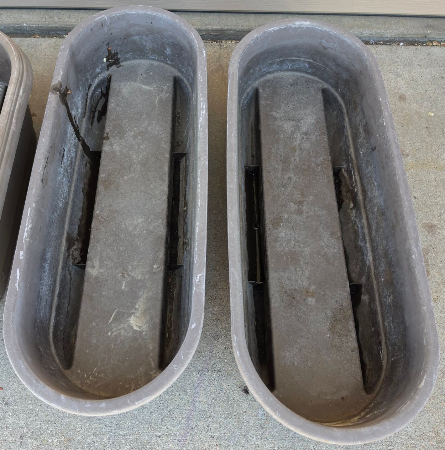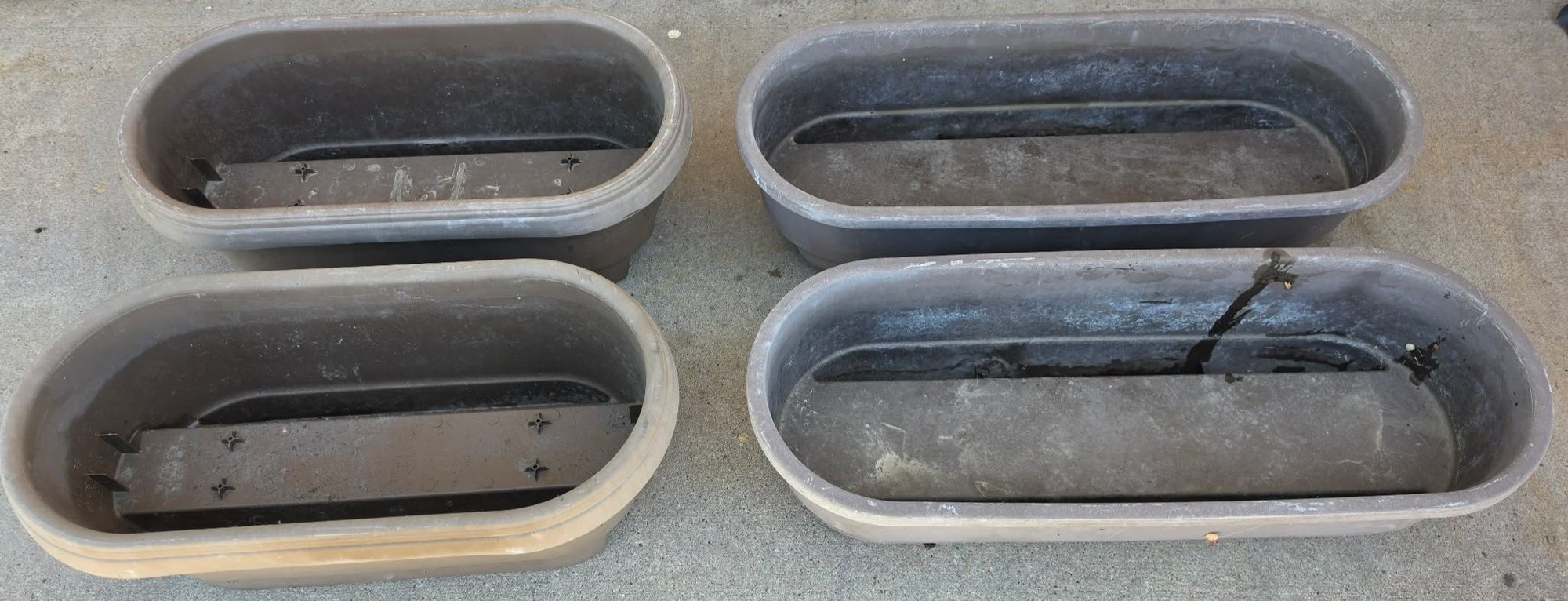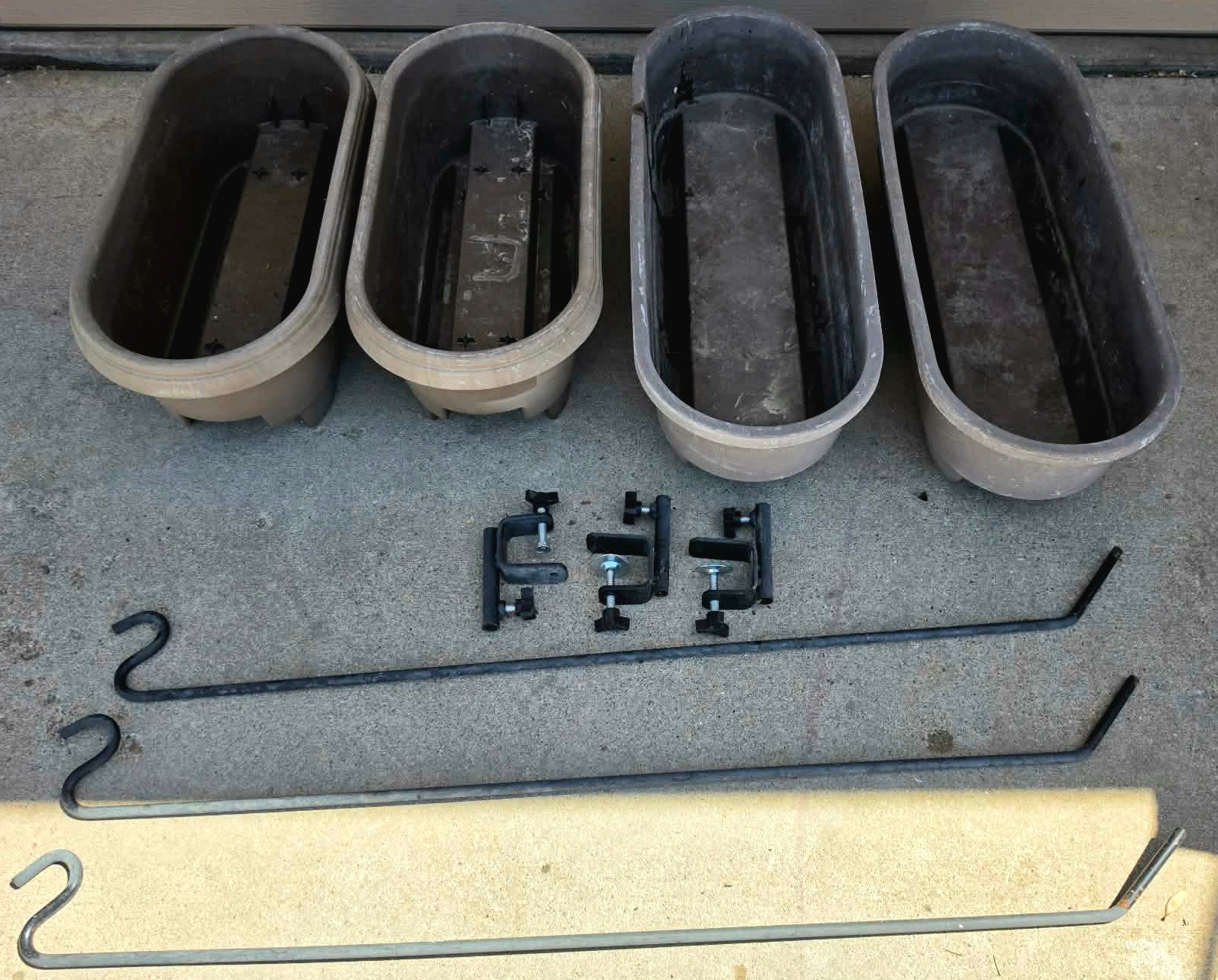 Garden Pots (23 x 11 x 9) (29.5 x 11.5 x 8) and heavy-duty metal shepherd's hooks or garden hooks.