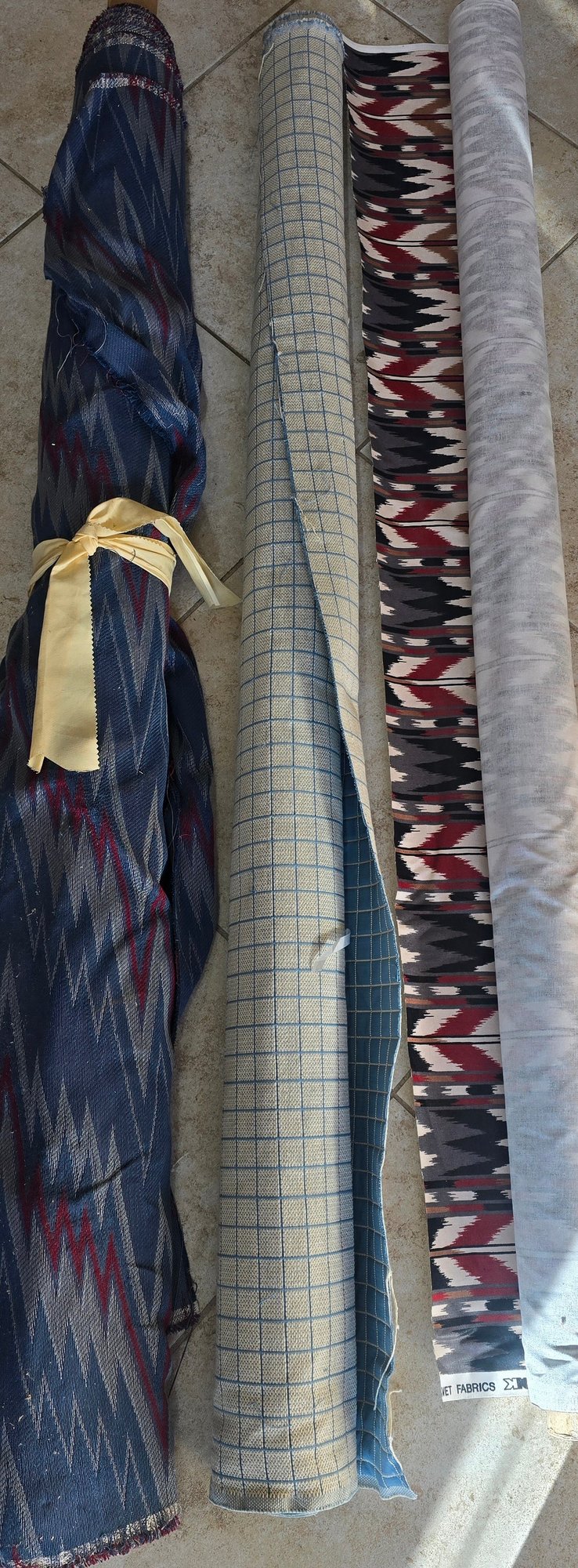 Partial rolls of material. If requesting shipping it will be removed from the roll. Not sure of the amount on each roll. Please see all pics for details.