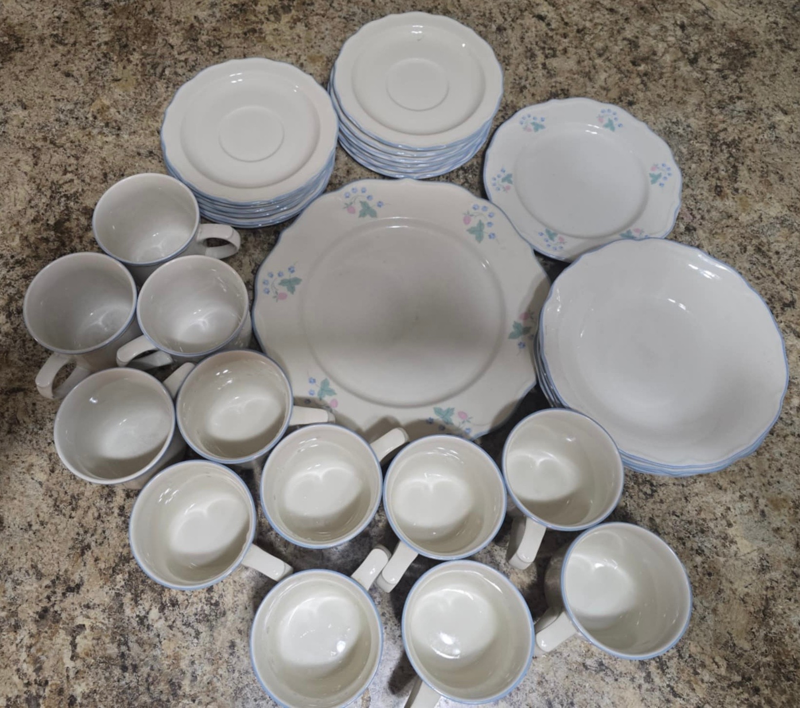 Partial set of Anchor Dinnerware. Auntie Em . Some do have different colored stamps but same model number. No cracks or chips noted.