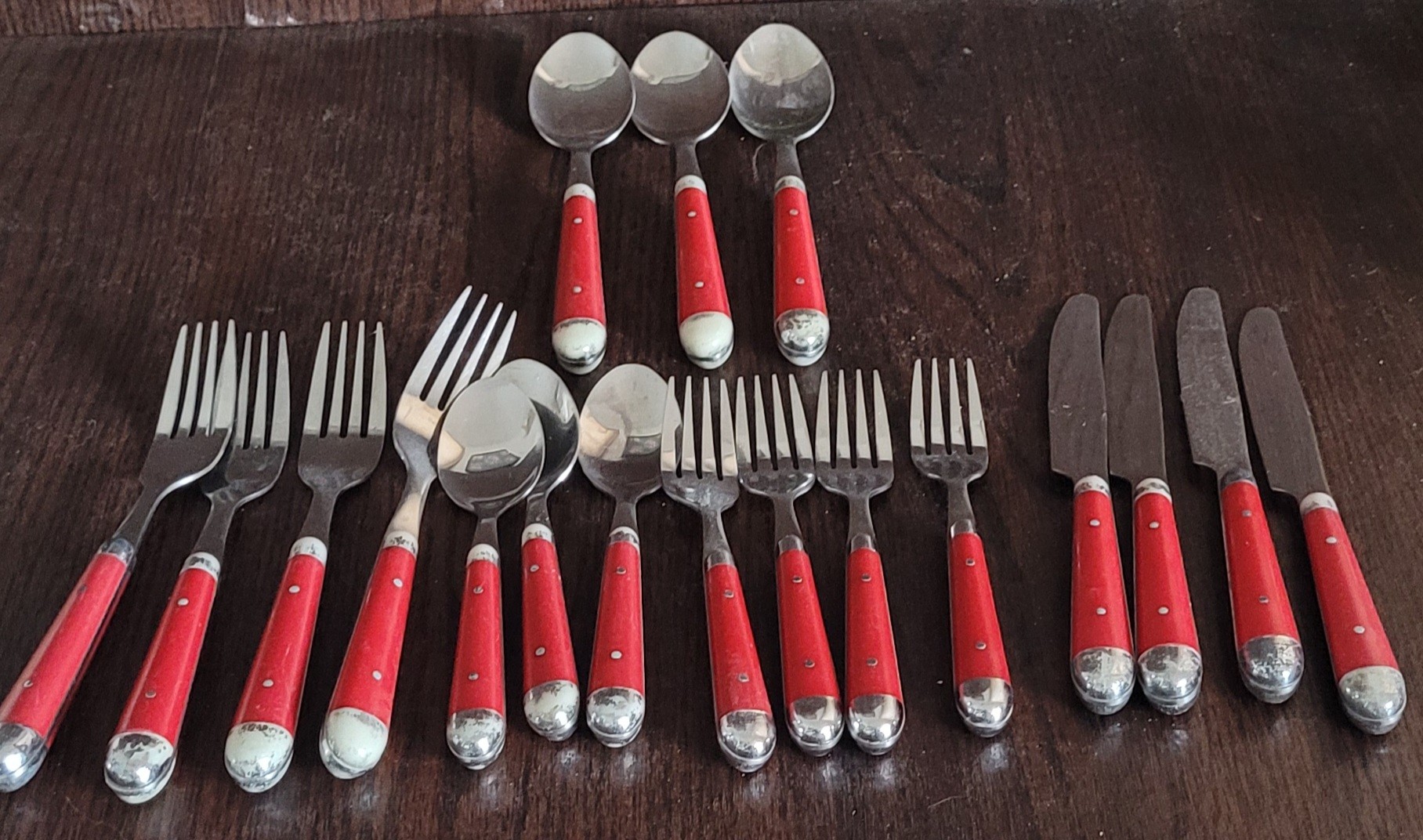 This set is missing 2 different spoons. Needs to be cleaned. See pictures for details.