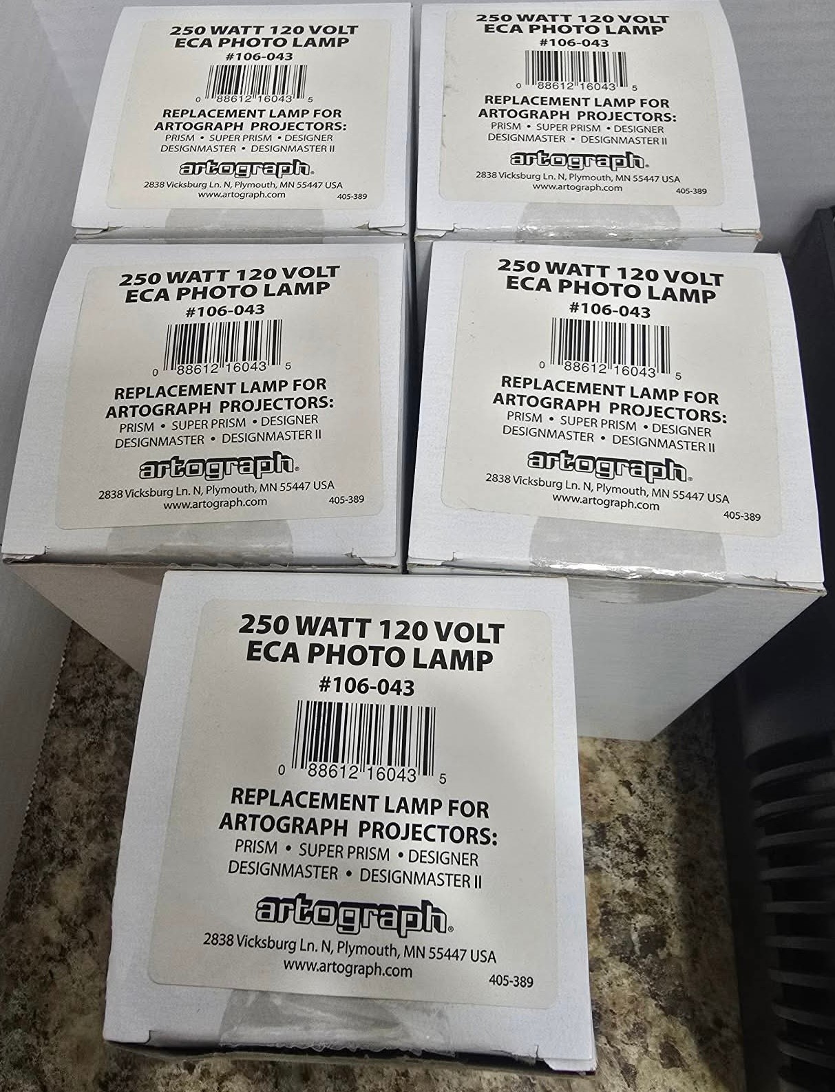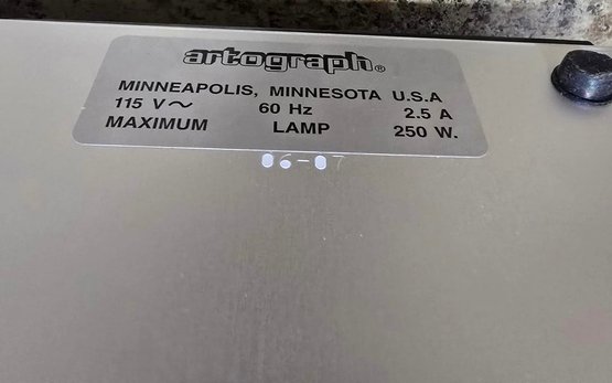Artograph Designer Projector, used for enlarging artwork and designs. Comes as pictured only. Untested. Does turn on. Comes with 5 extra lamps.