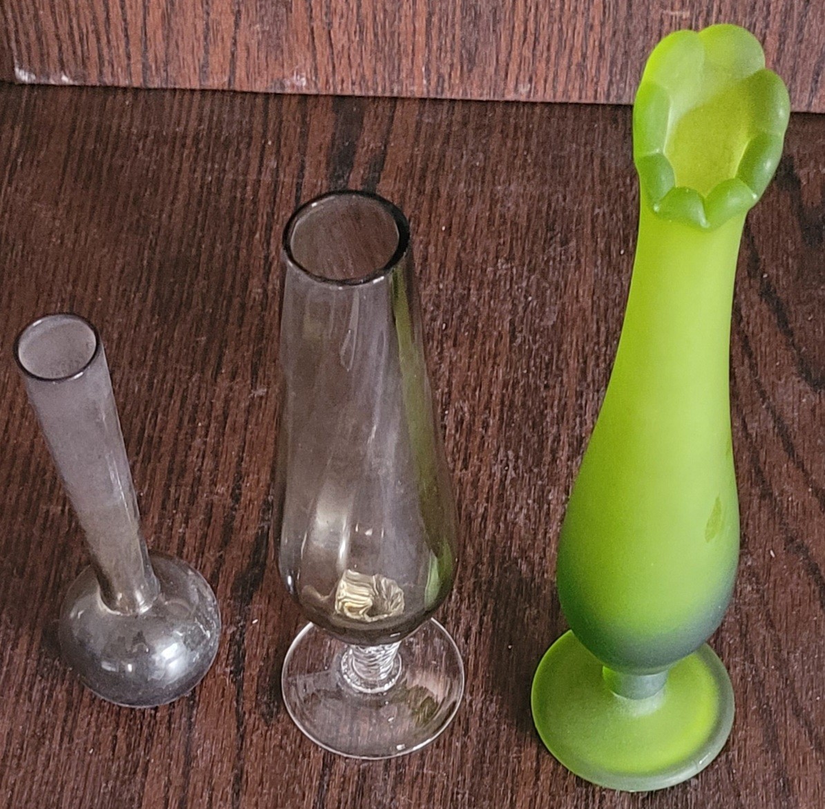 One vase measures 6.25" tall the next one measures 8.25" tall and the last one measures 10" tall. See pictures for details.