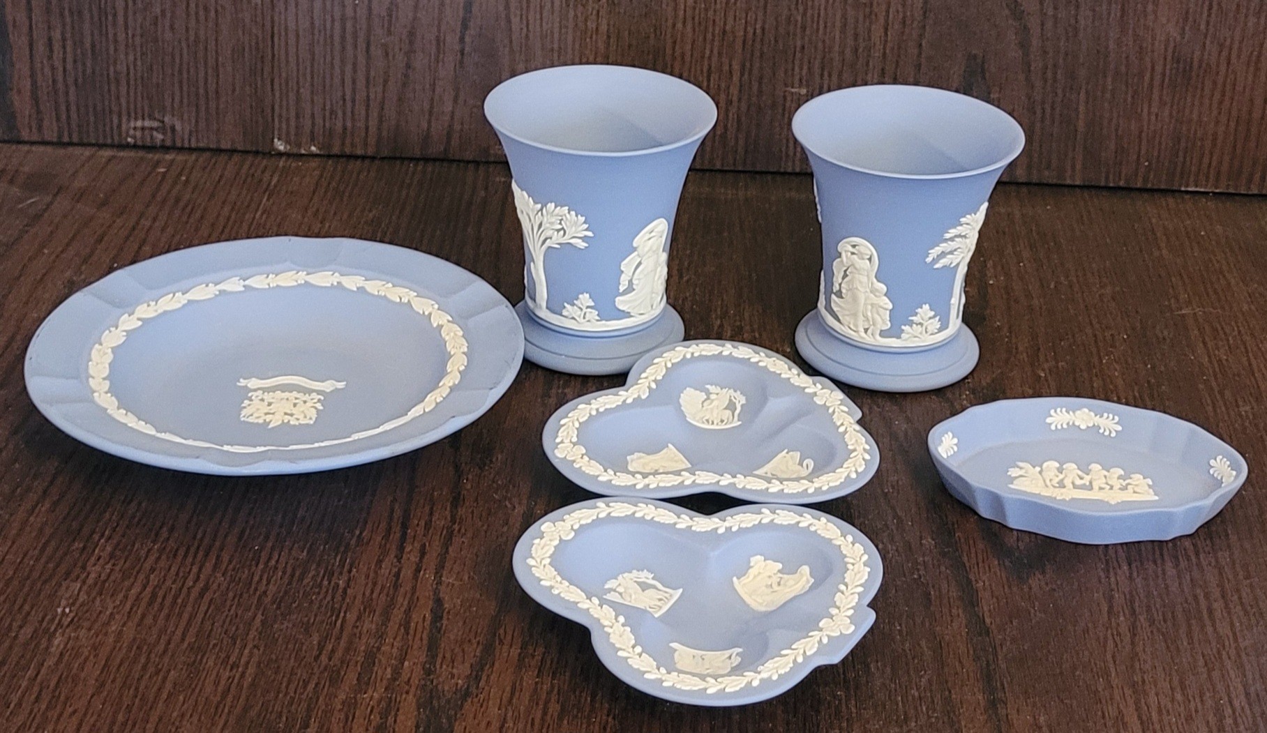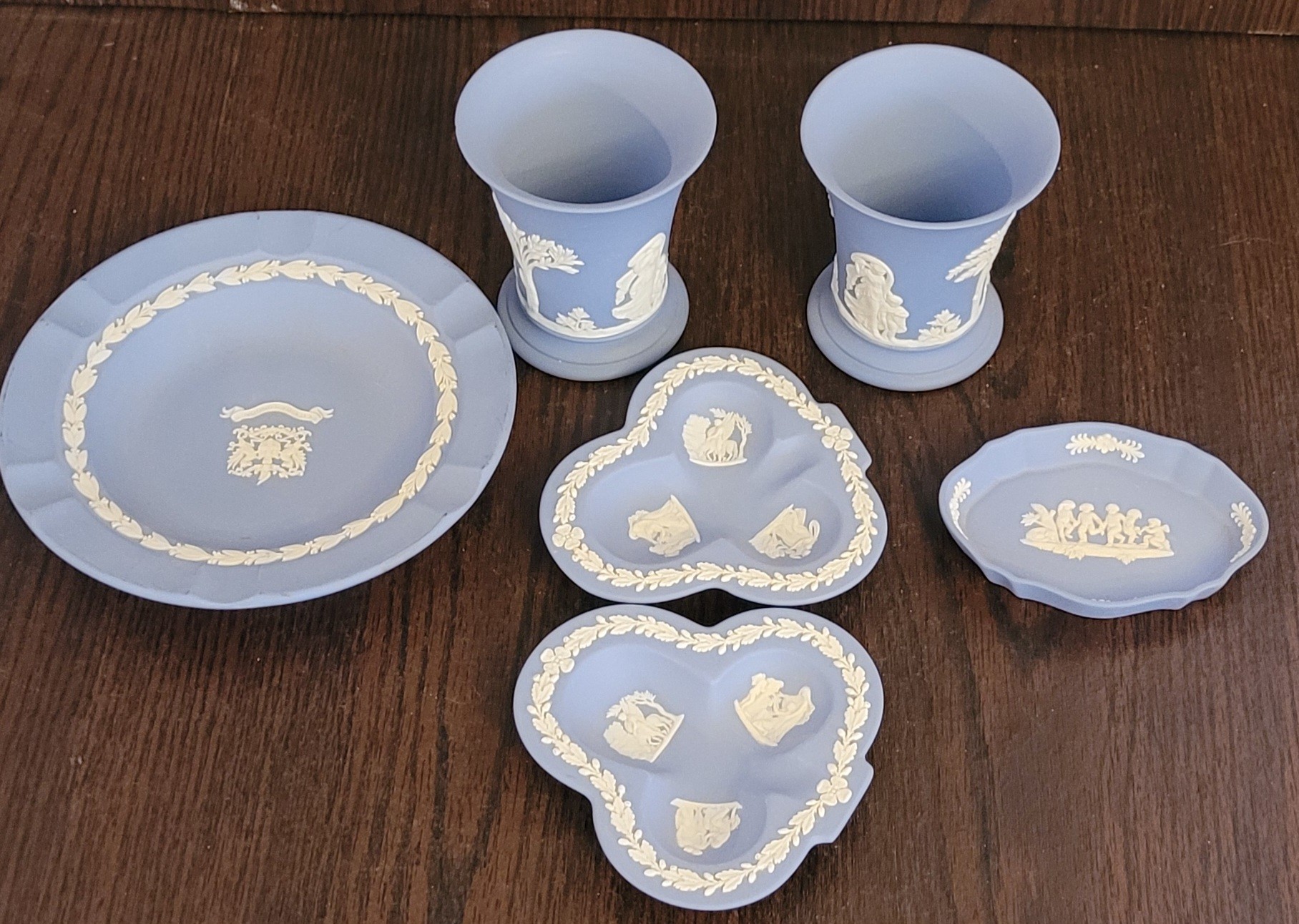 This lot comes with different pieces. One of the vases has a small chip on the edge. See pictures for details.