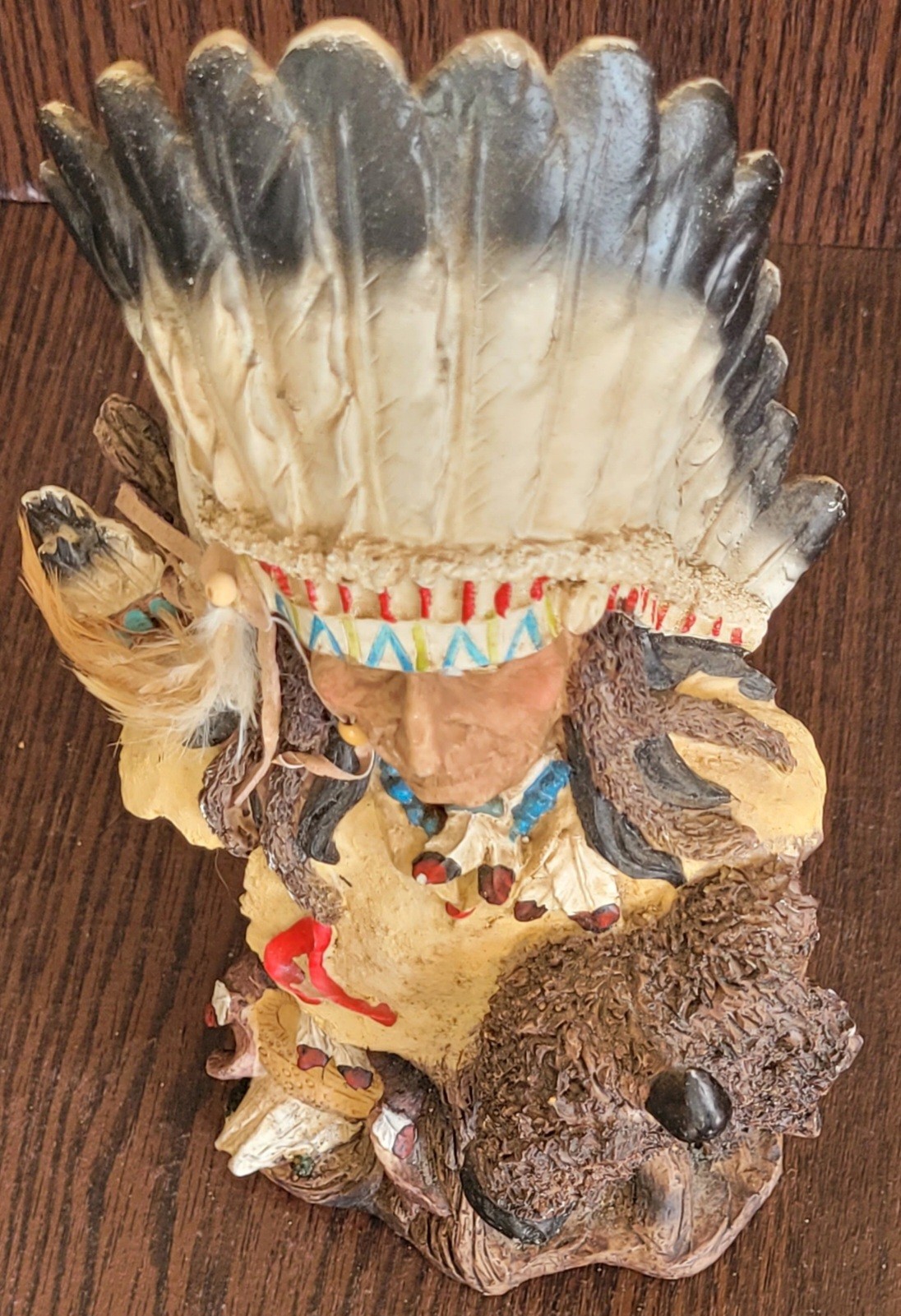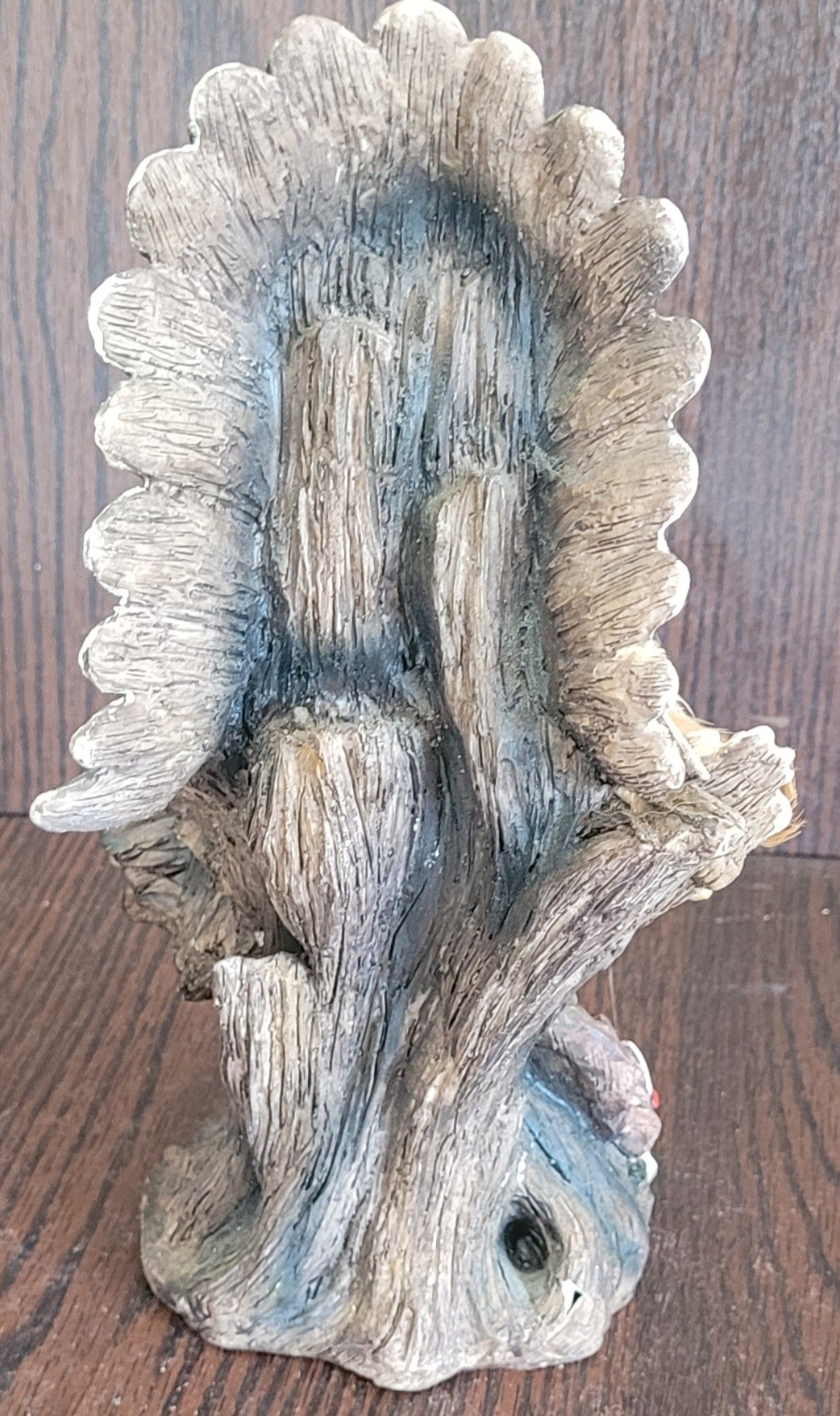 This measures 10.5" tall. Did does have a spot of the back that is broken. See pictures for details.