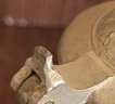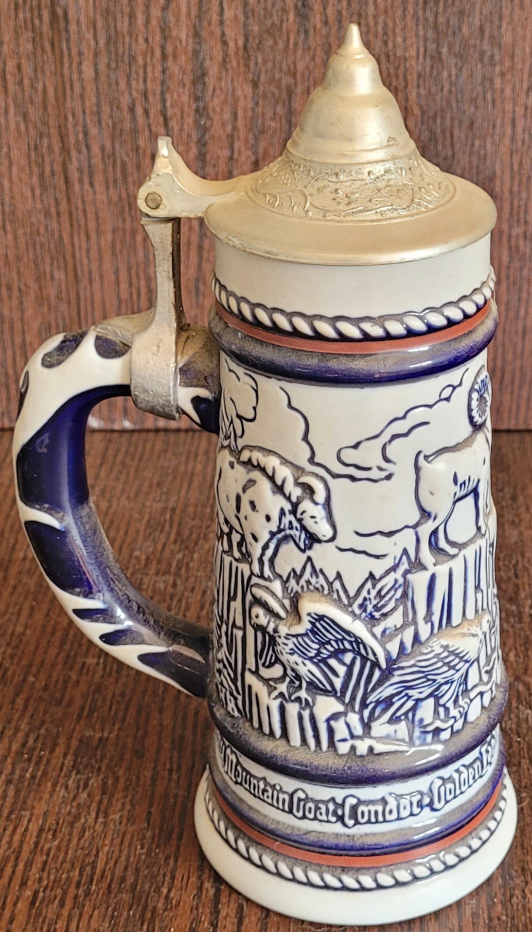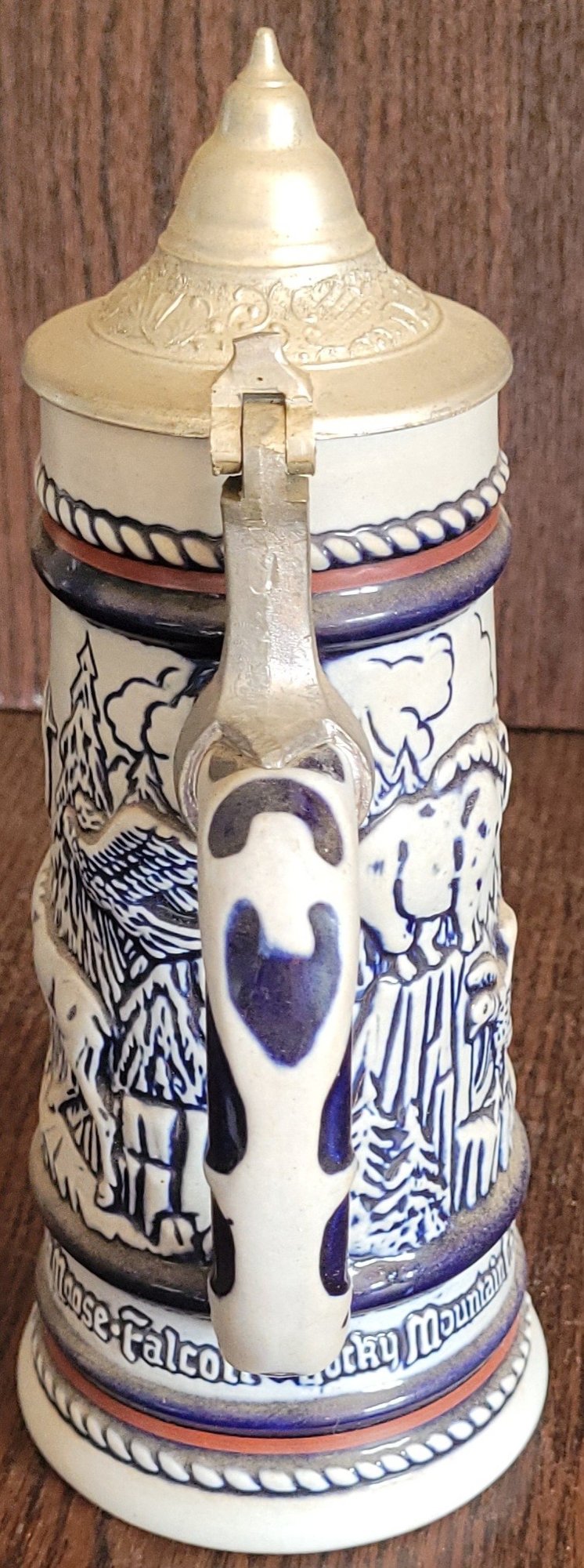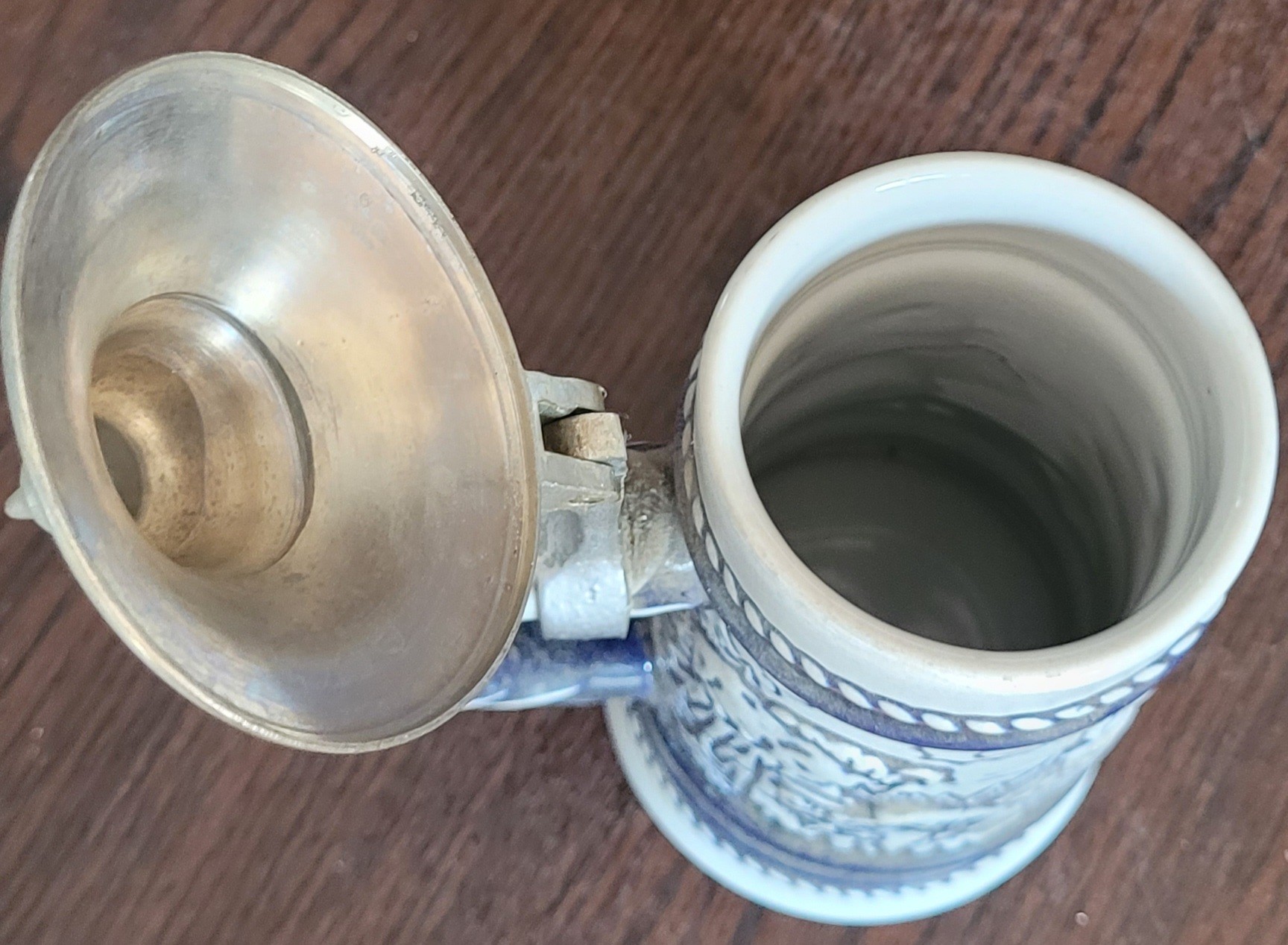 This measures 9.5" tall. There is a piece of the lid that is broken off. See pictures for details,