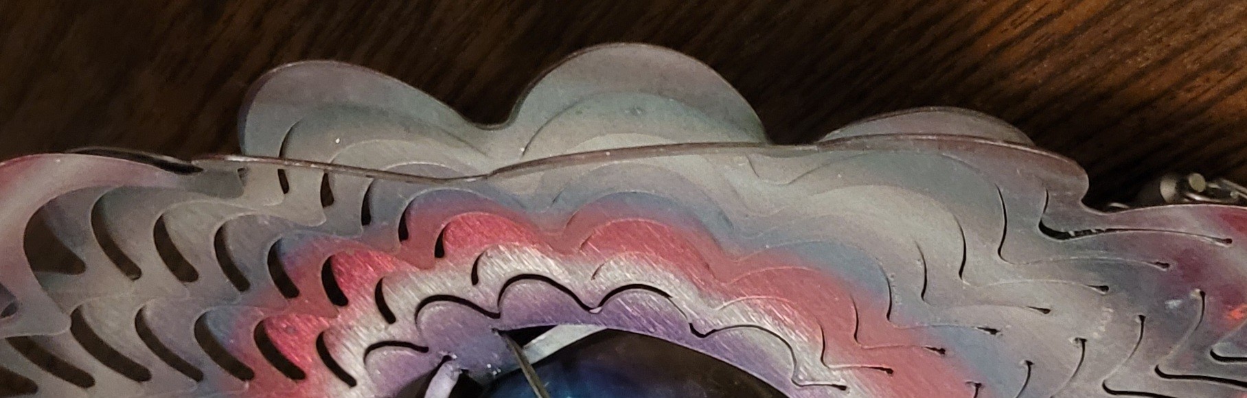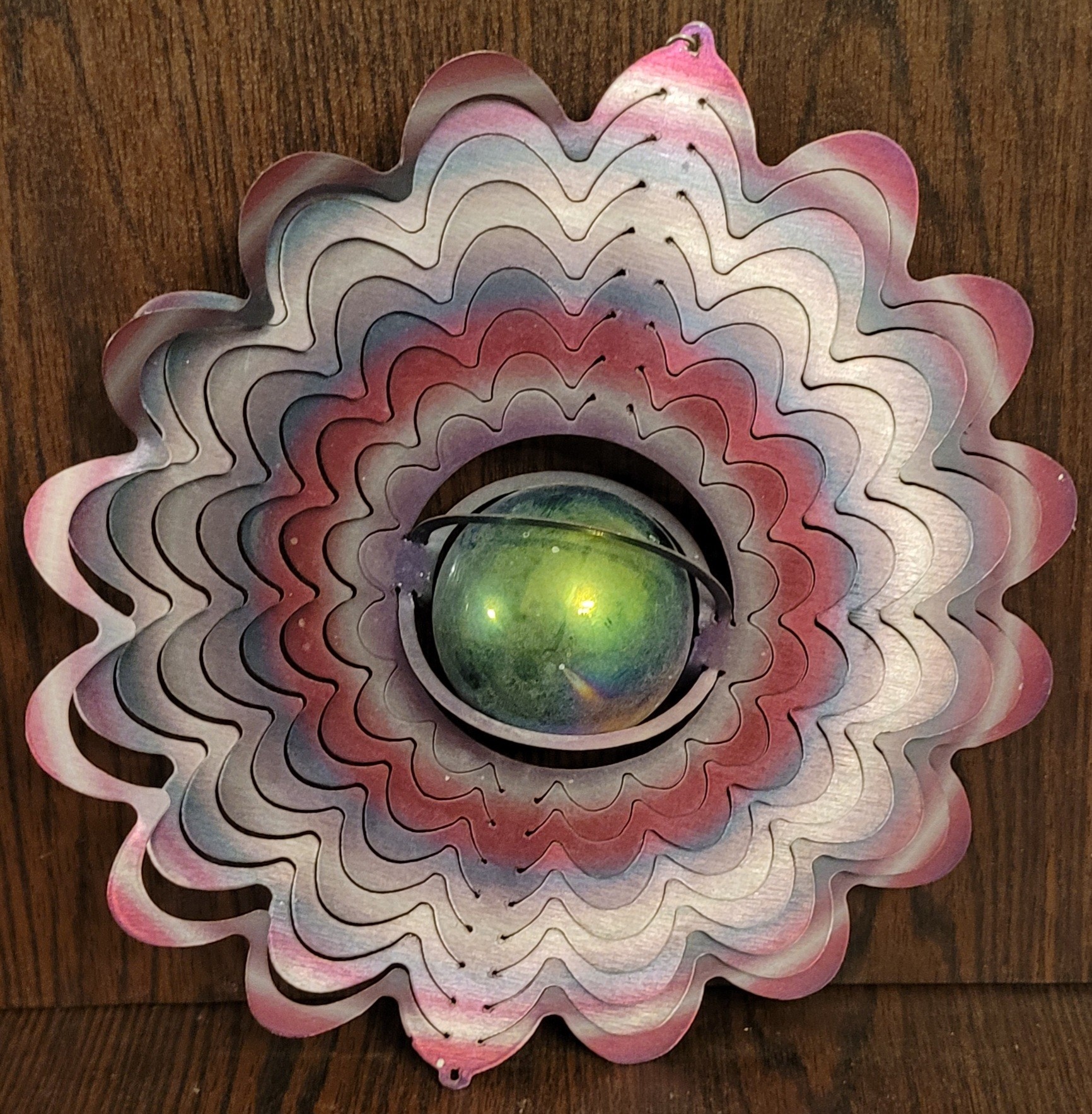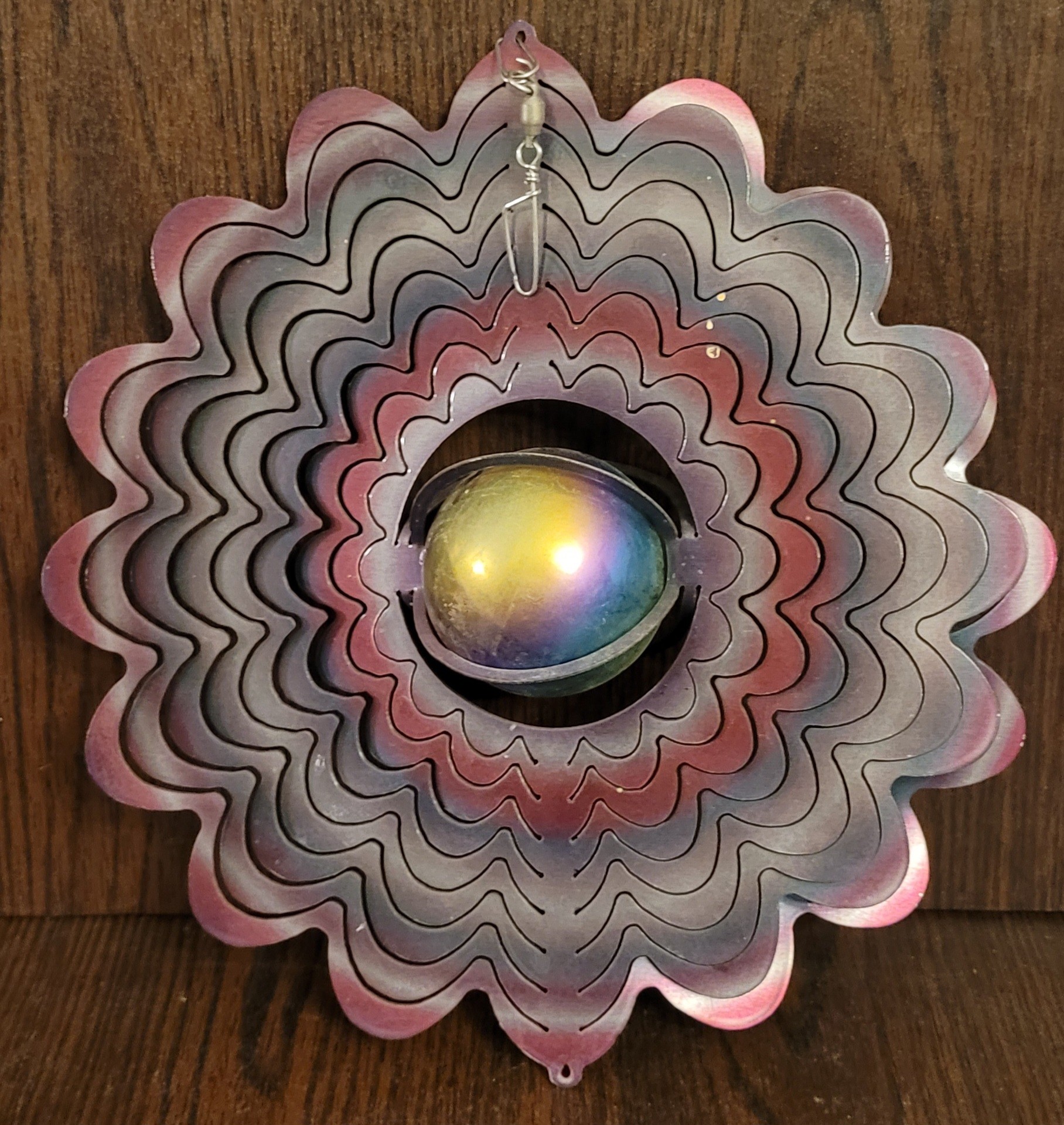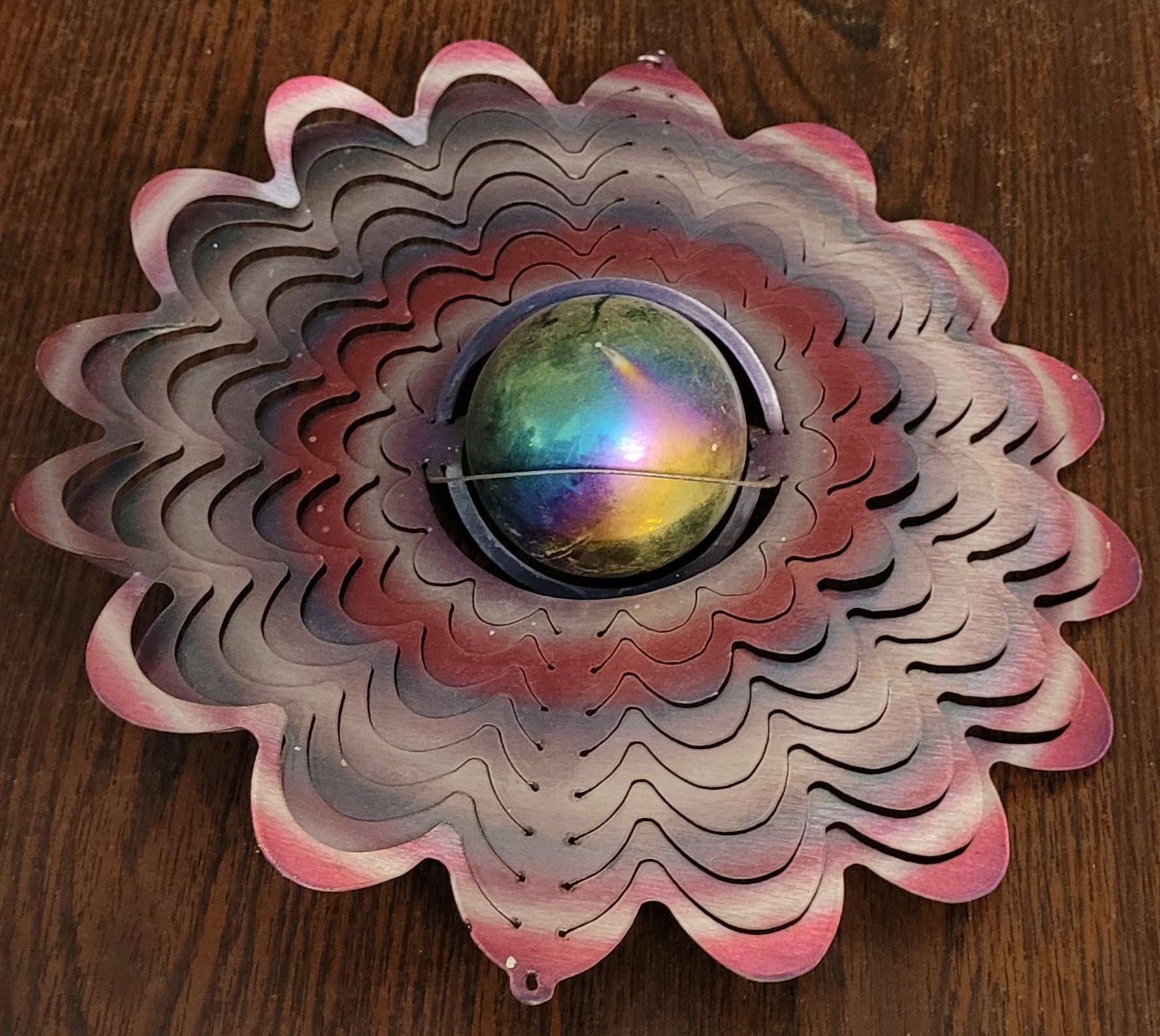 This measures 12" in diameter. One of the outside pieces is bent a little. See pictures for details.