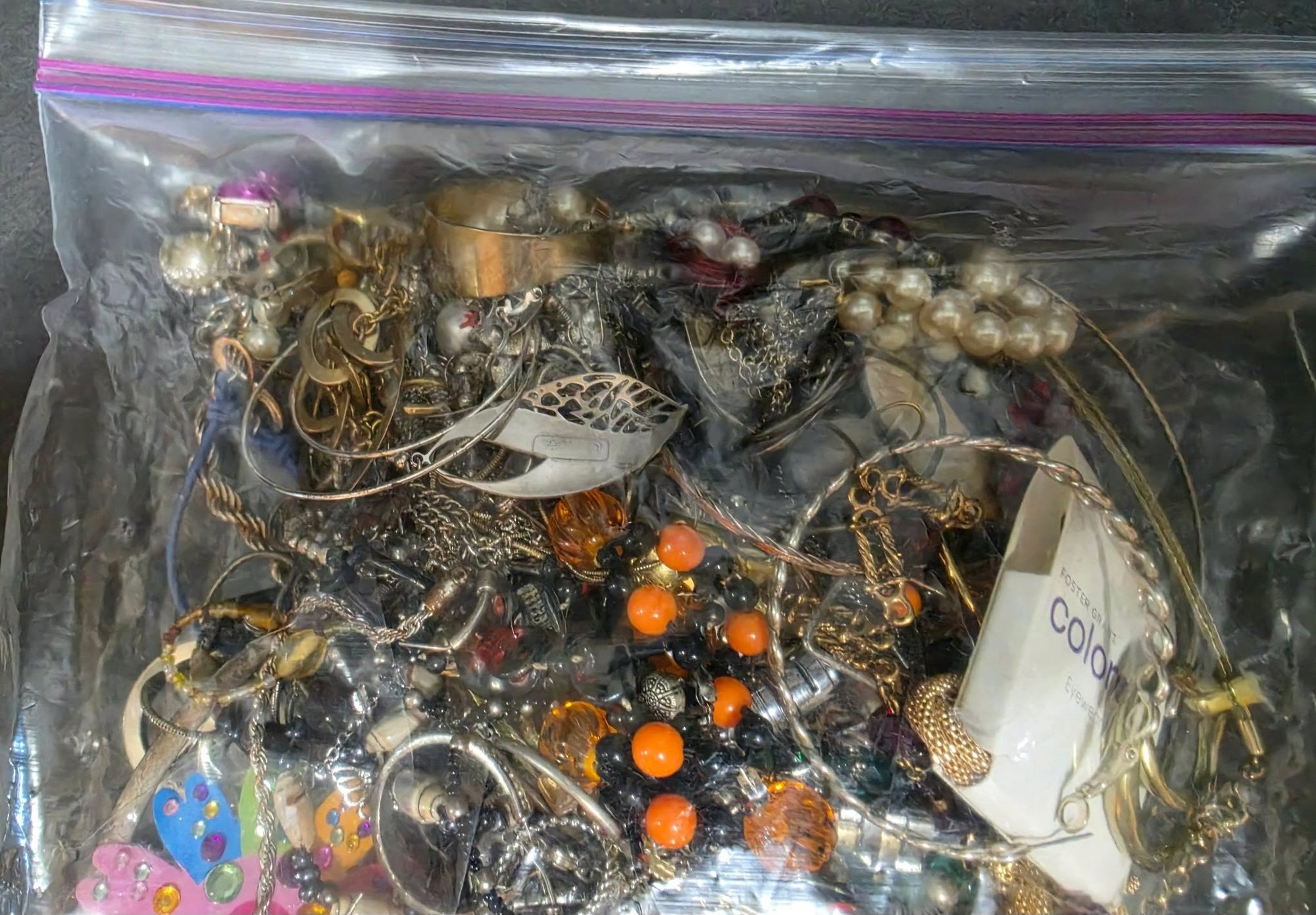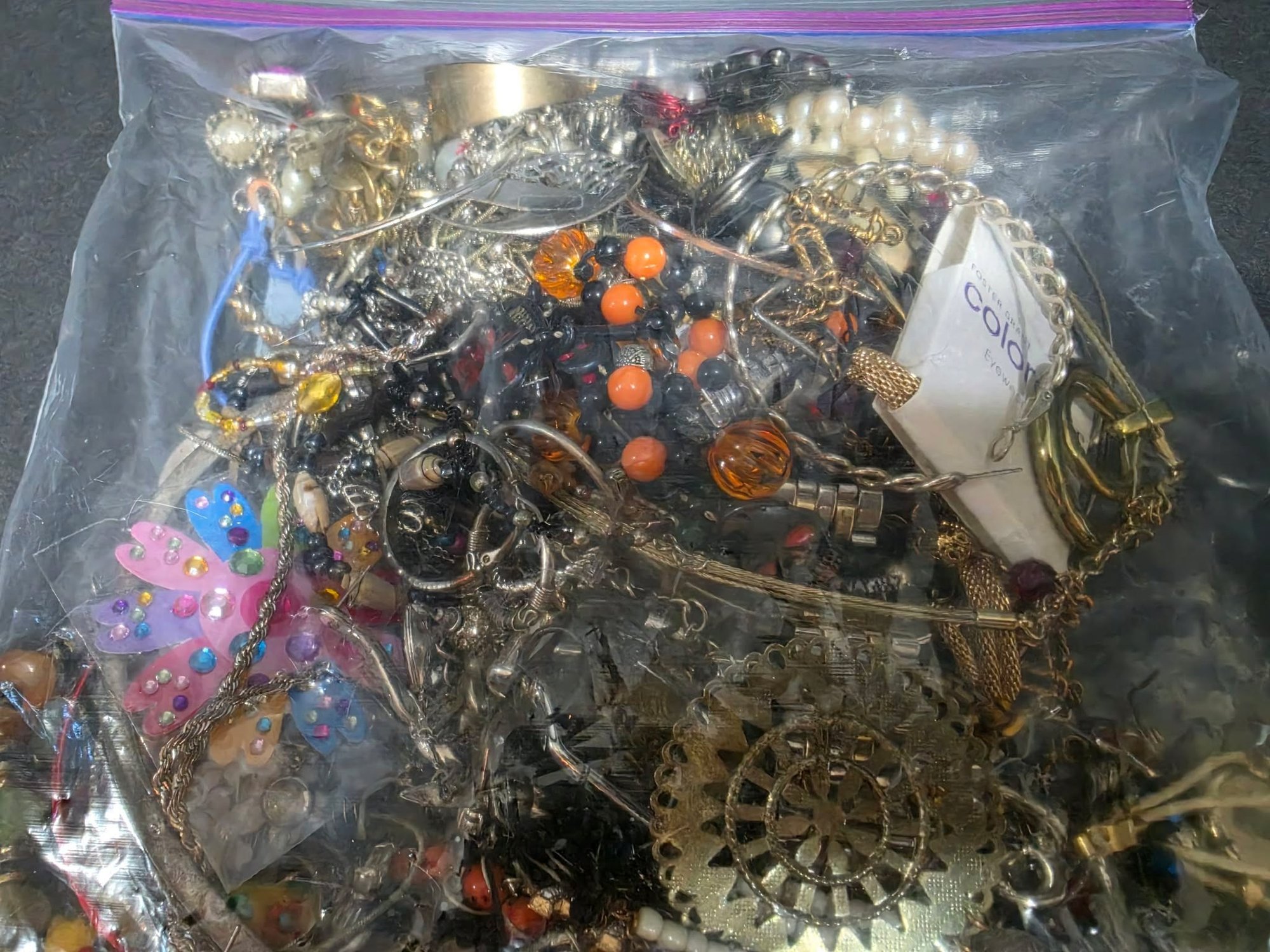 Bag of mixed jewelry. Great for crafting, theater or play.