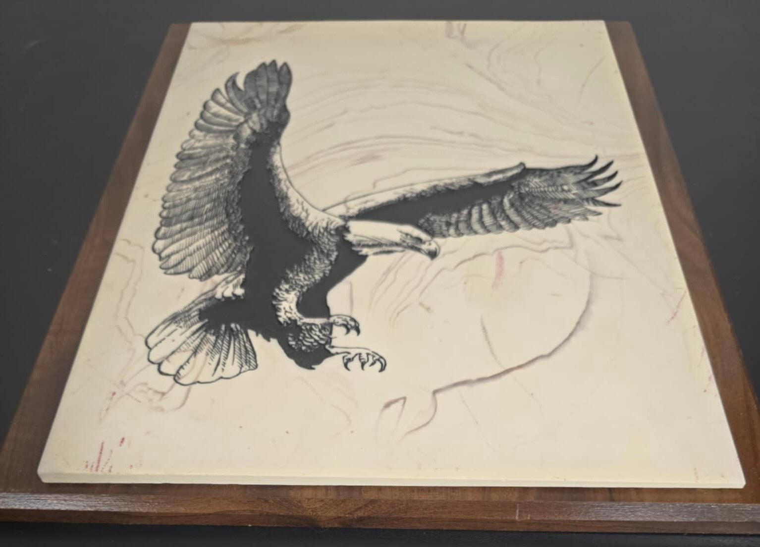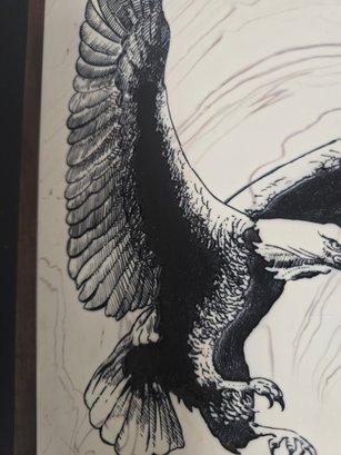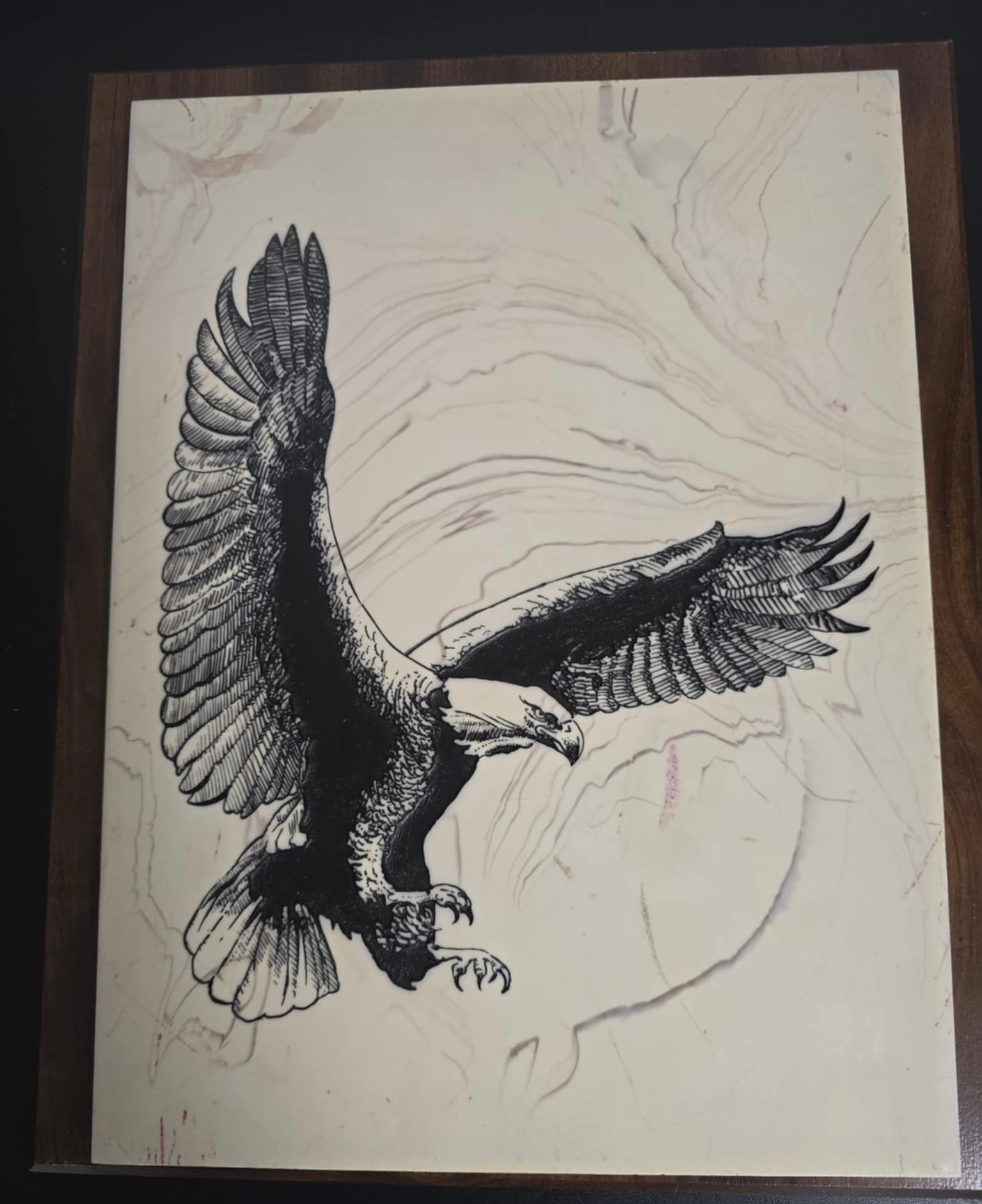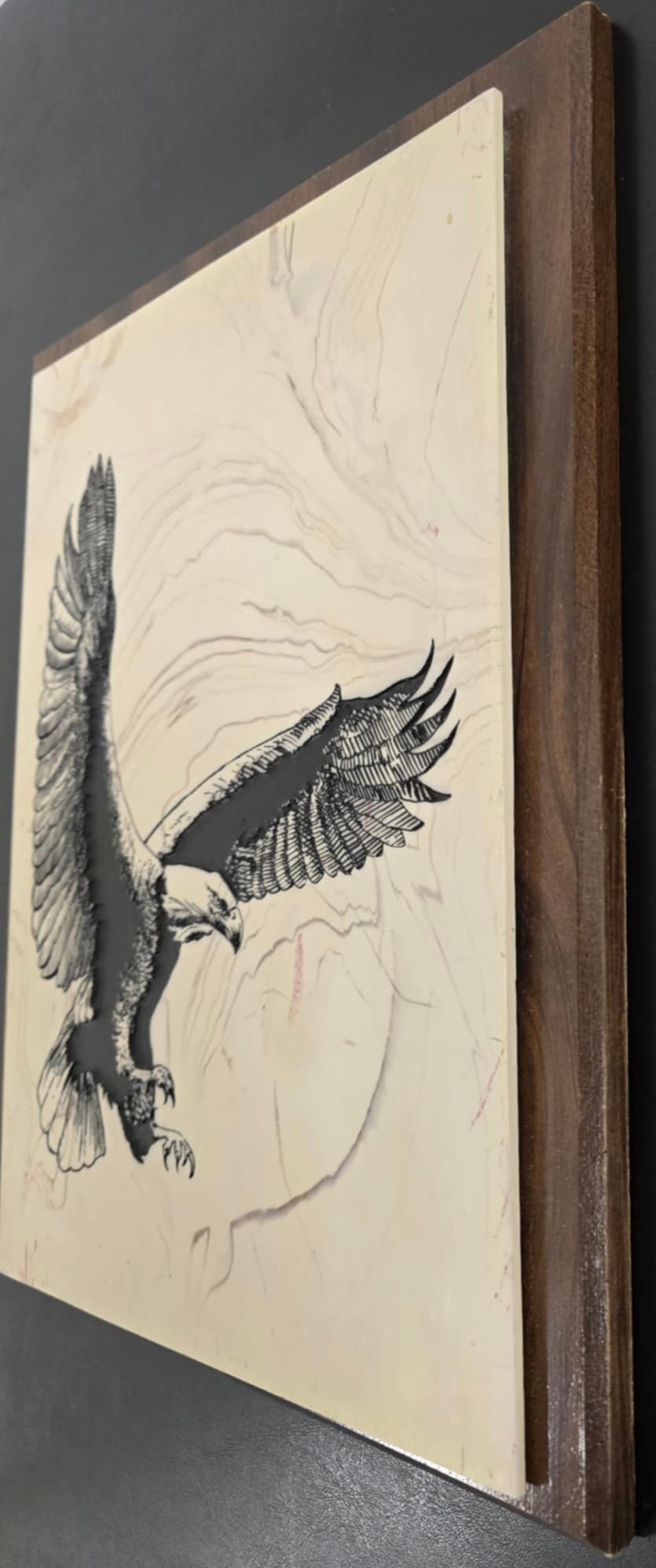 Bald Eagle on stone and wood frame. Measures 10.5 x 13.