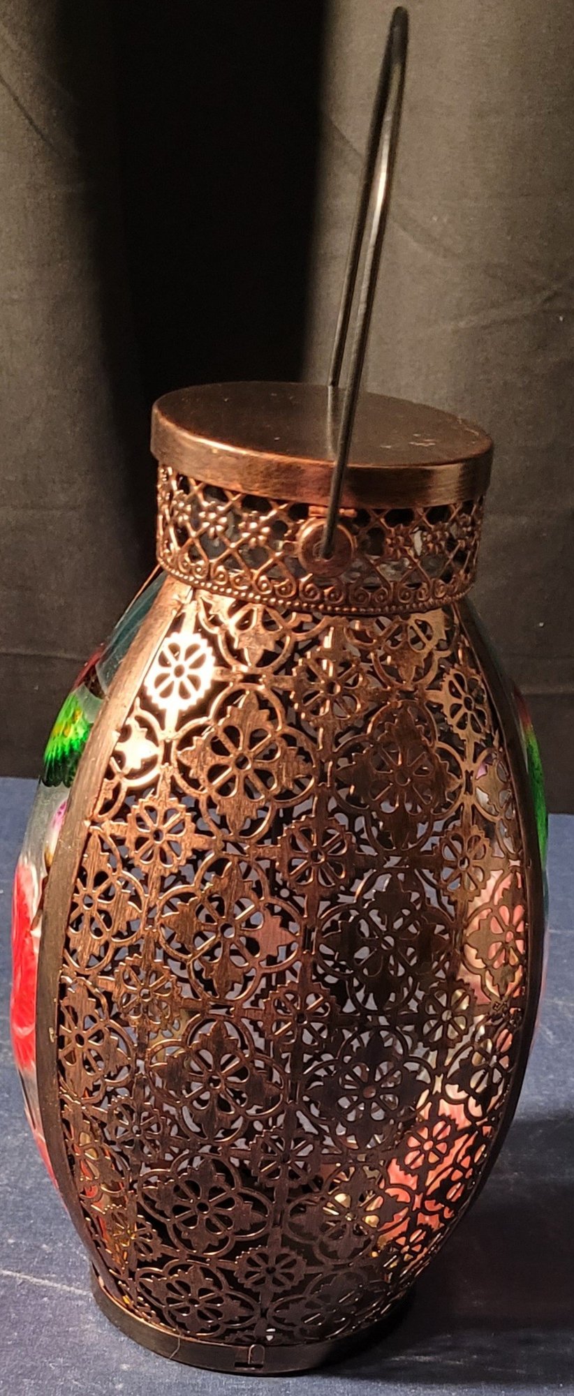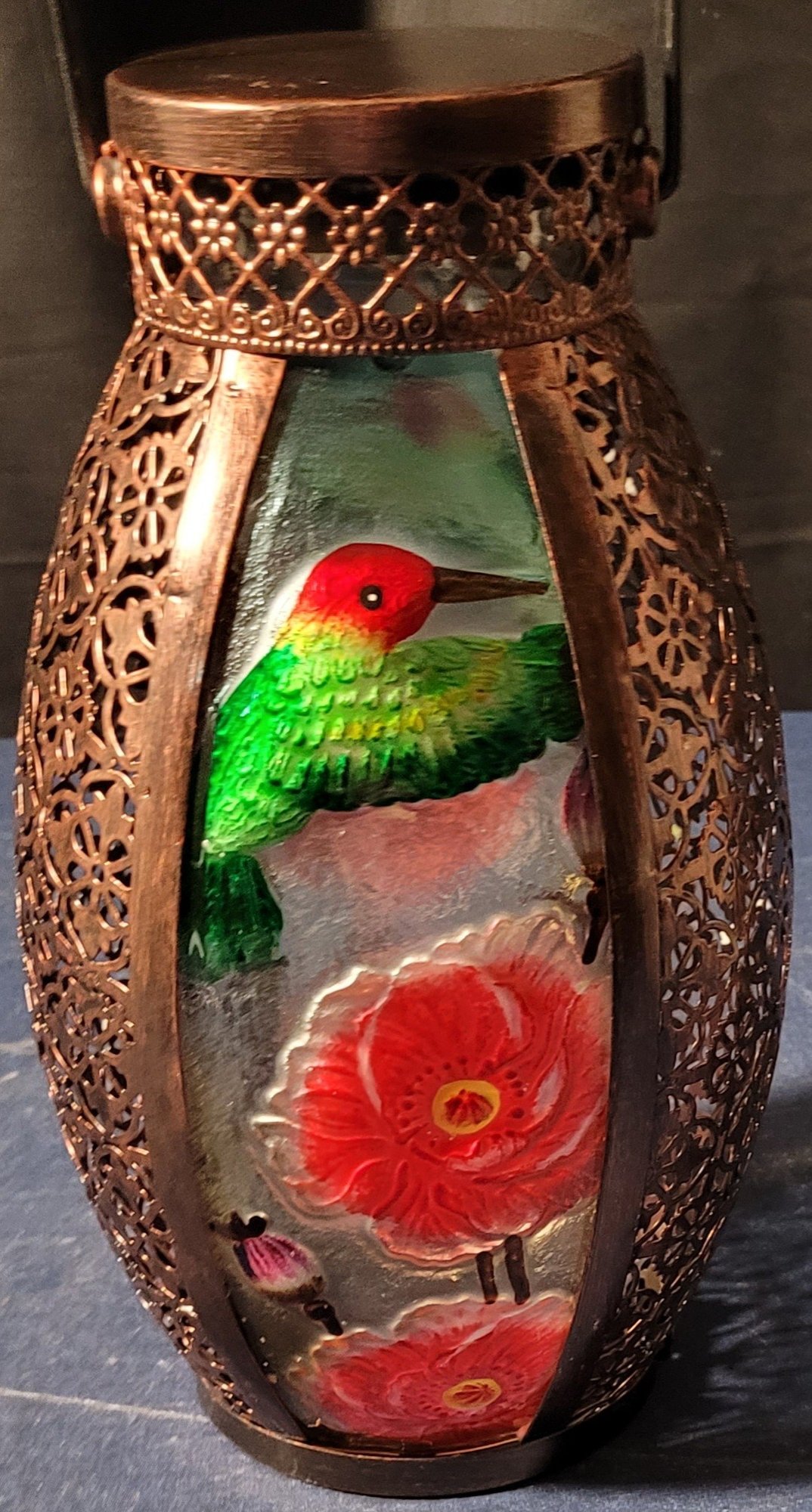 This measures 12" tall. It is battery operated. Appears to have not been used I had to take it out of the box to picture it. See pictures for details.