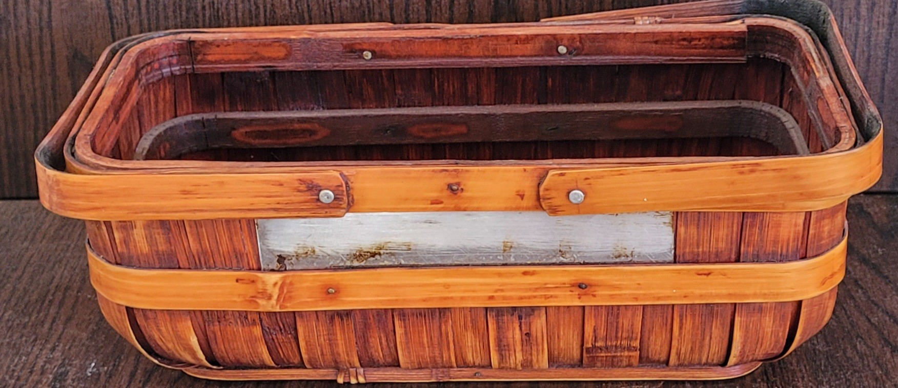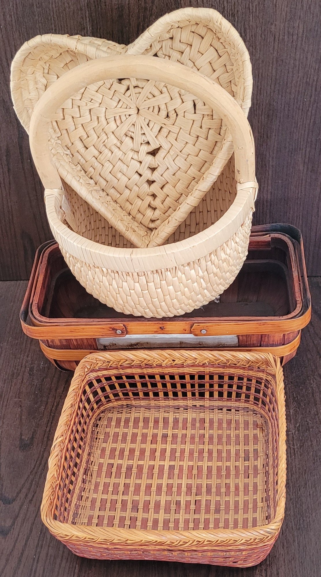 One basket measures 12.5" long by 6.25" wide, next one measures 9.5" in diameter, the next one measures 9" long by 9.25" wide, and the last one measures 10" long by 9.25" wide. See pictures for details.