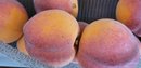 This measures 24" long by 8.5" tall by 8.5" wide. The peaches look real. My kids thought I brought peaches. See pictures for details.
