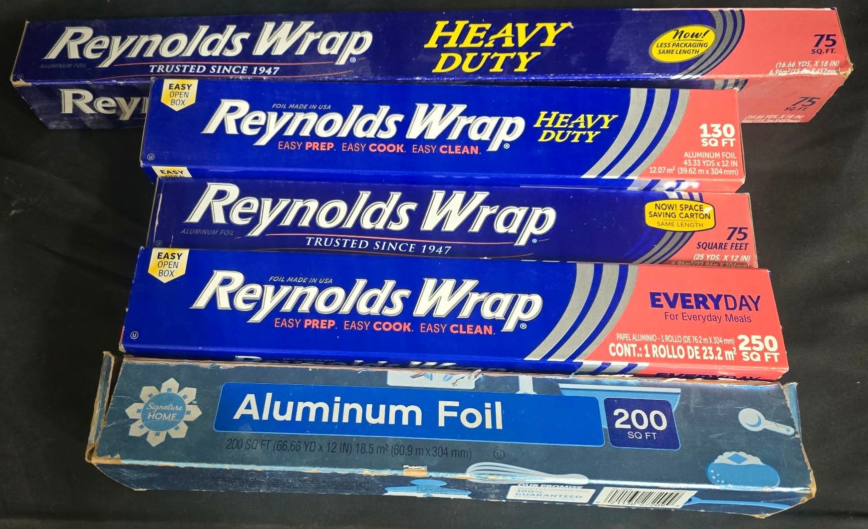 Boxes of Reynolds Wrap & Aluminum Foil. 3 are partially used.