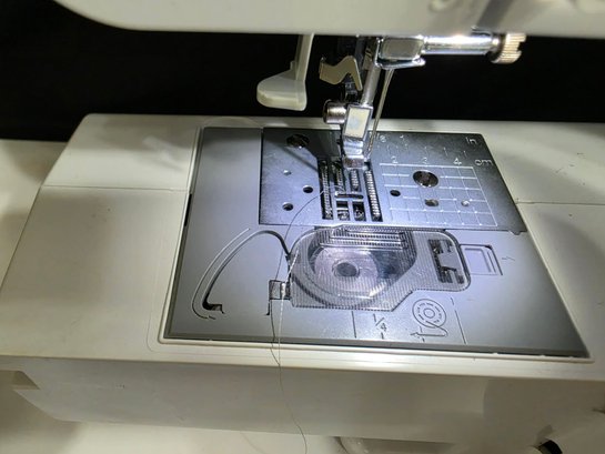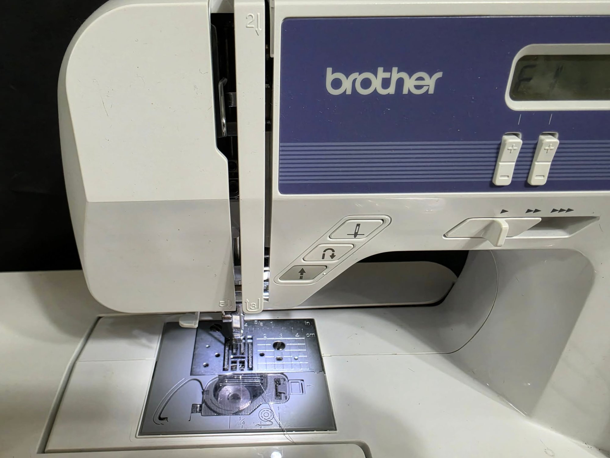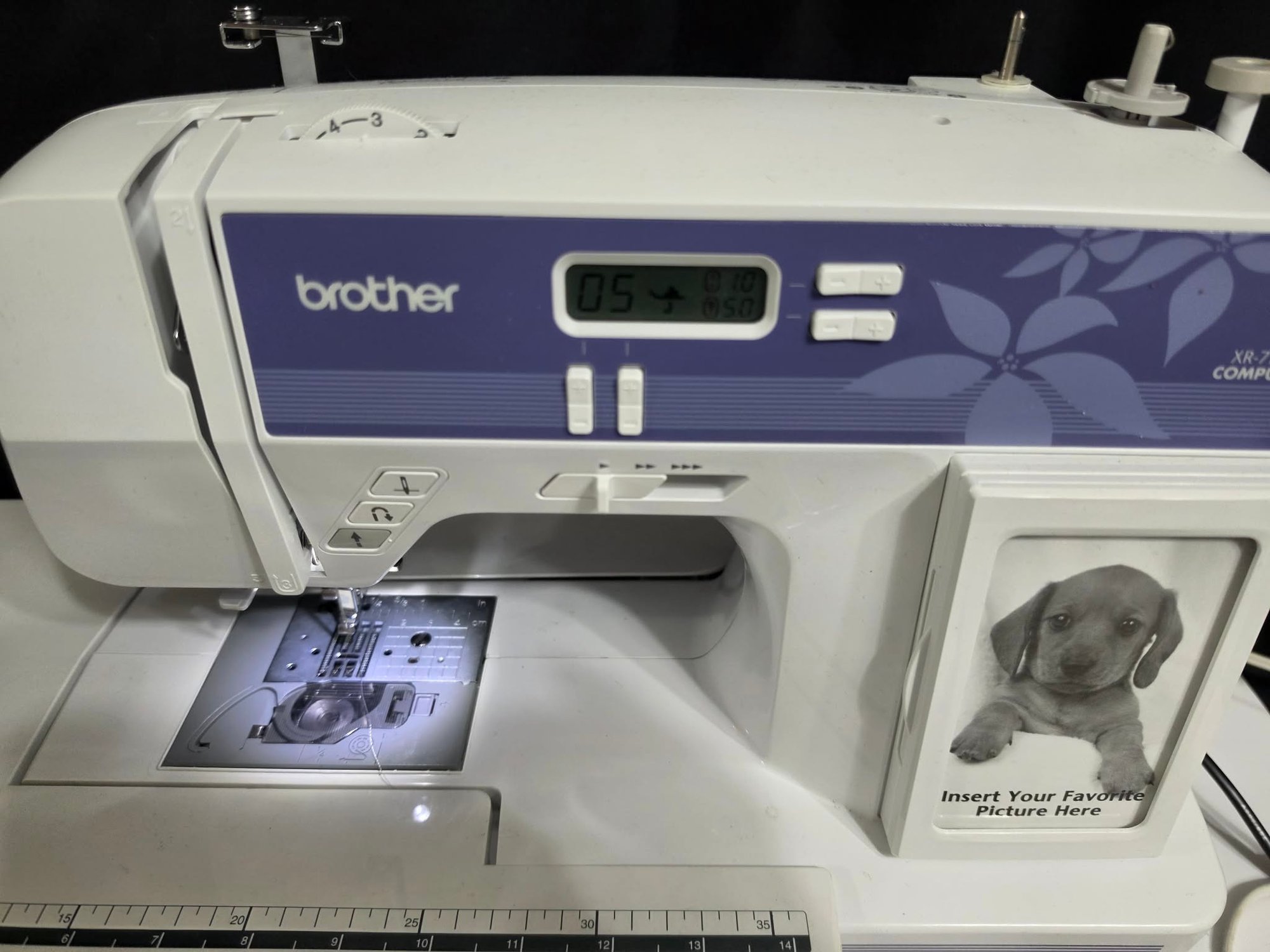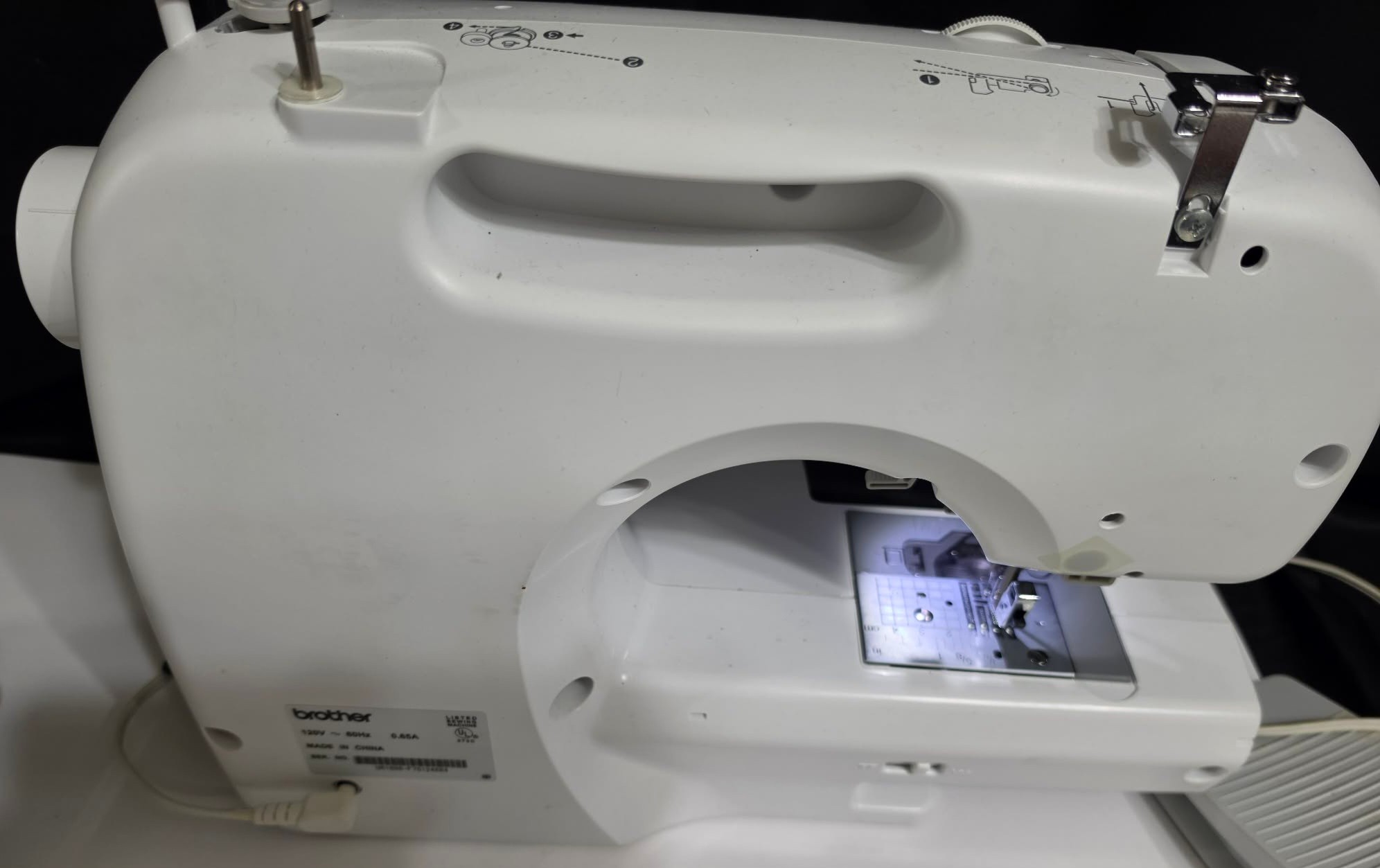 Brother XR7700 Computerized Sewing Machine. Turns on. Pedal works, however machine was not tested. Missing the flat bed attachment with accessories compartment. Comes as pictured only.