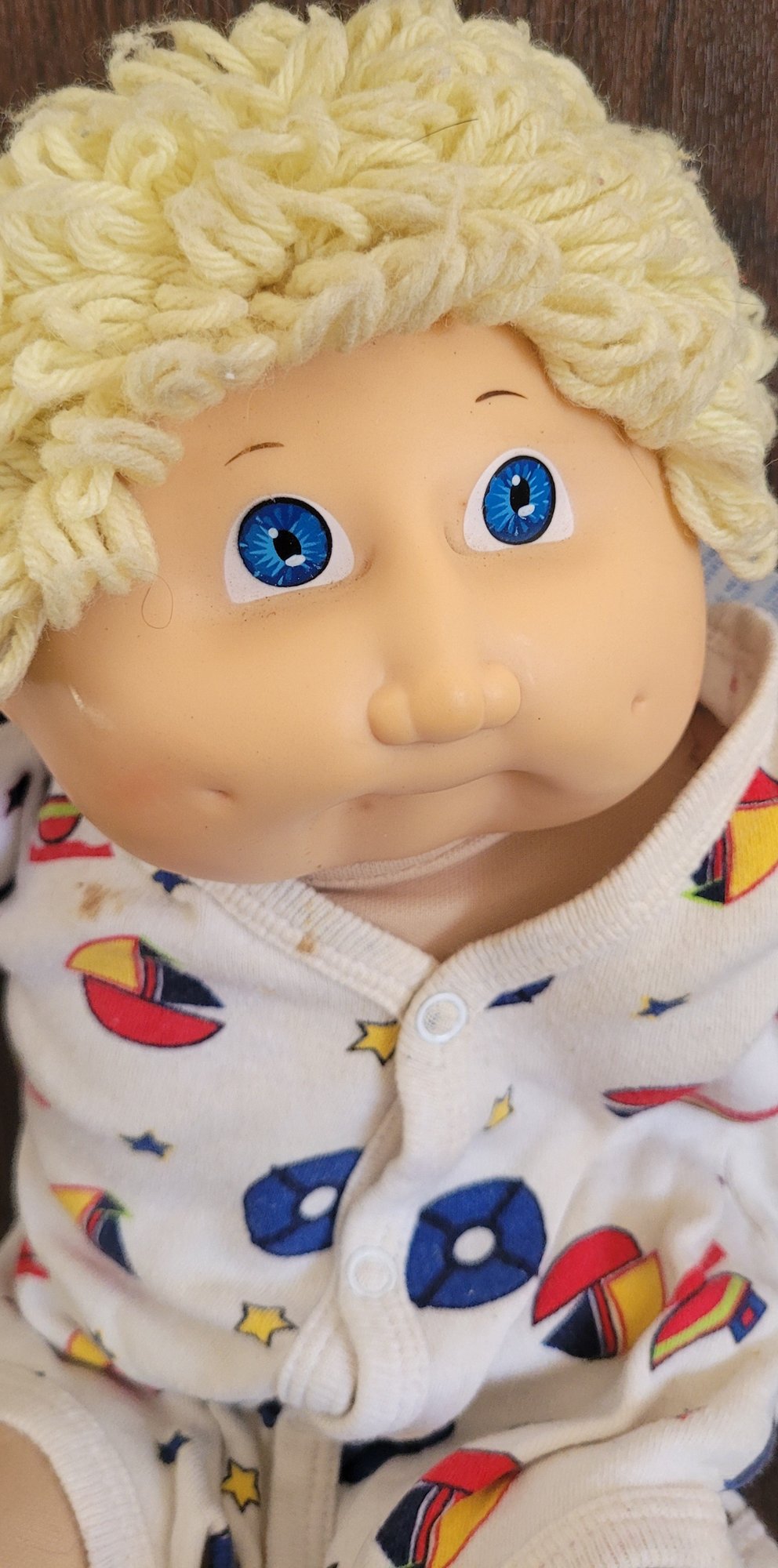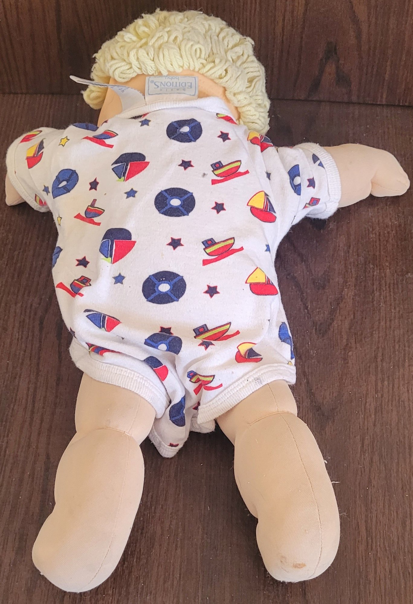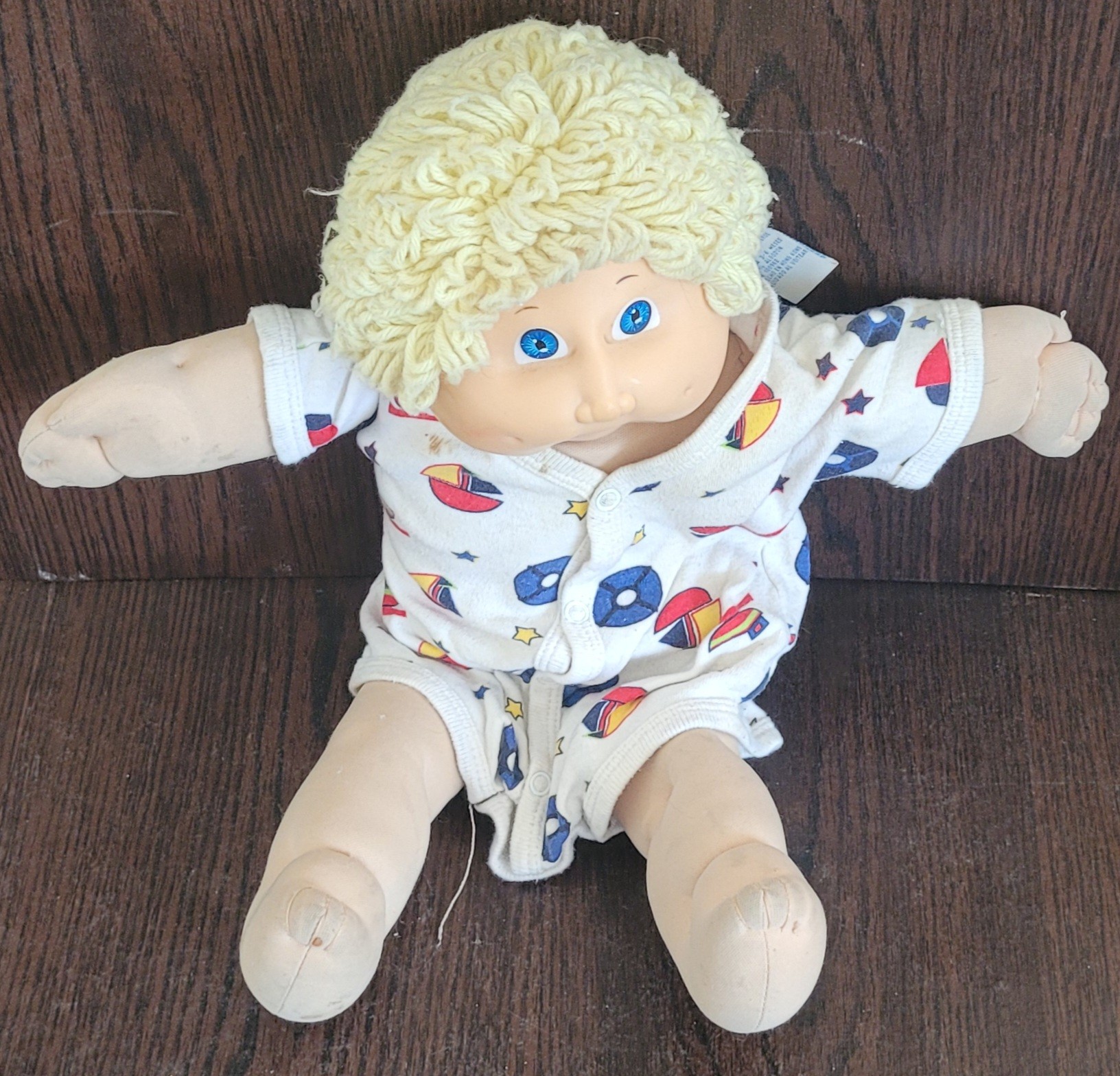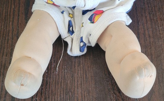 This doll measures about 16.5" long. It does need to be cleaned. See pictures for details.