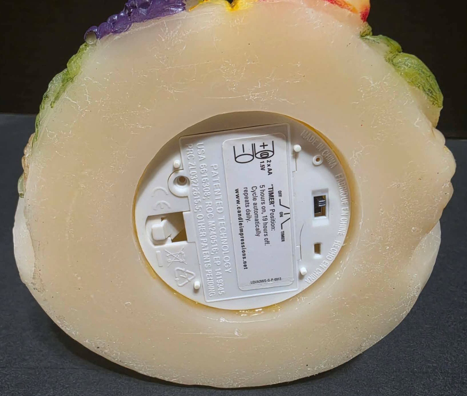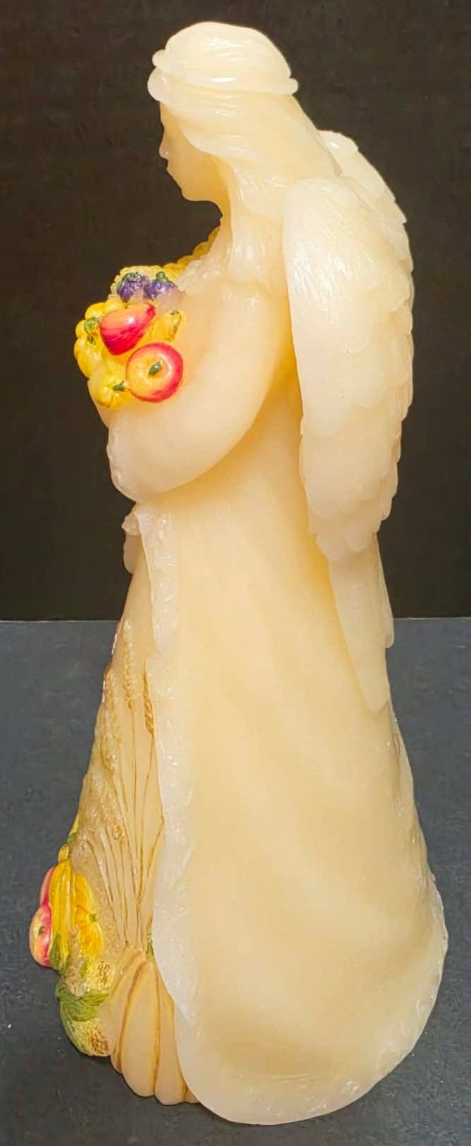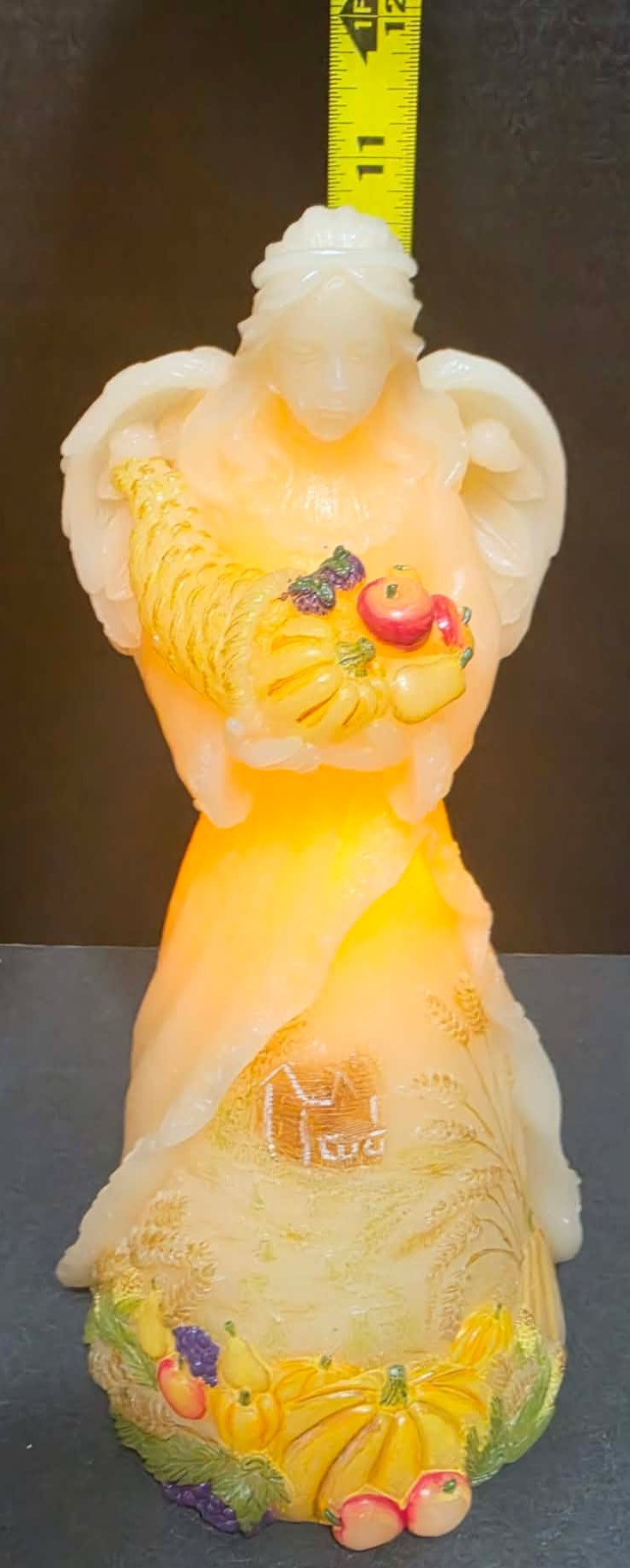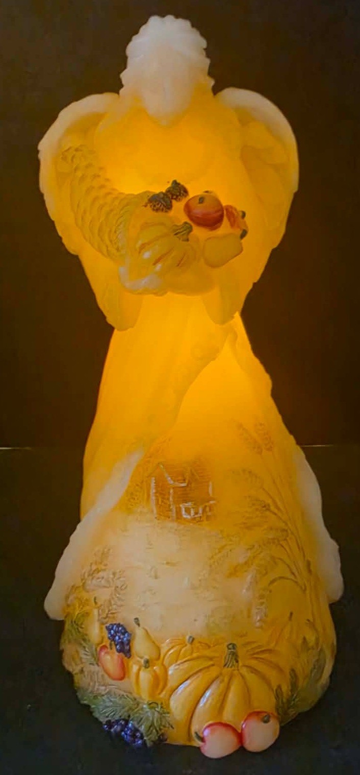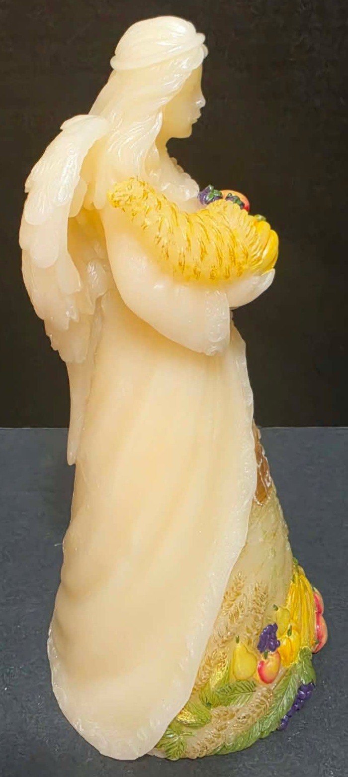 Candle Impressions Angel Luminary featuring a harvest scene with a cornucopia. Measures approximately 10".
