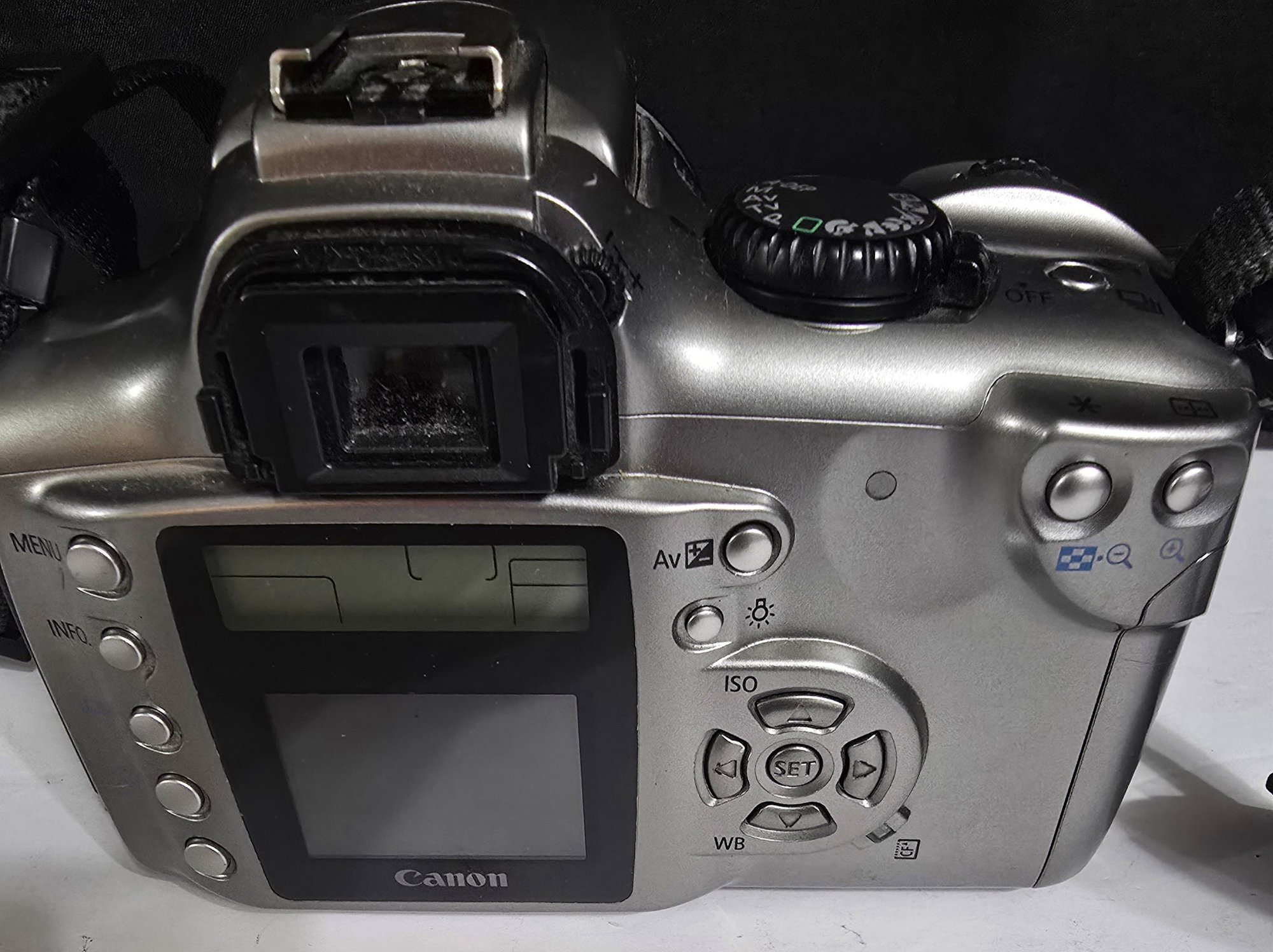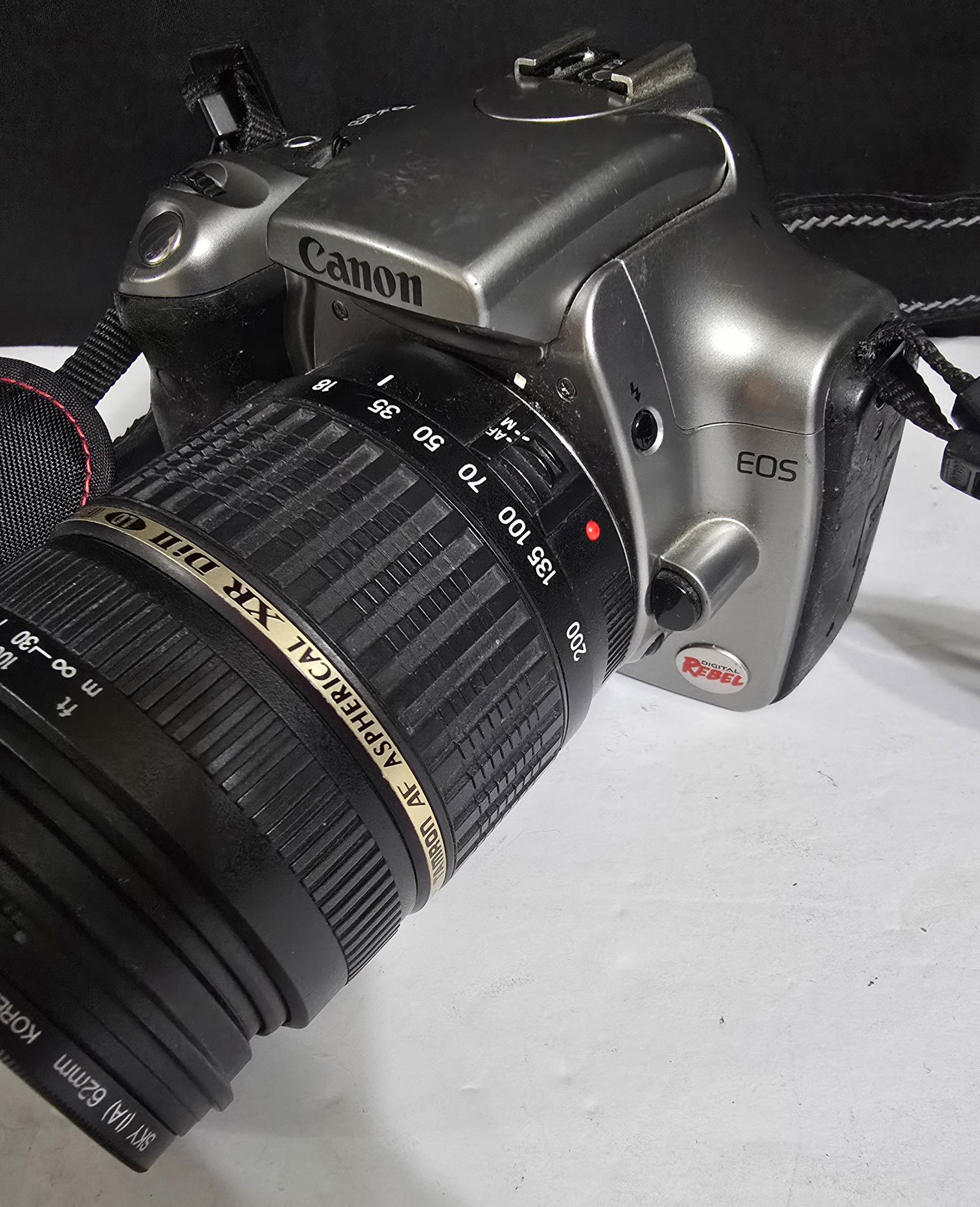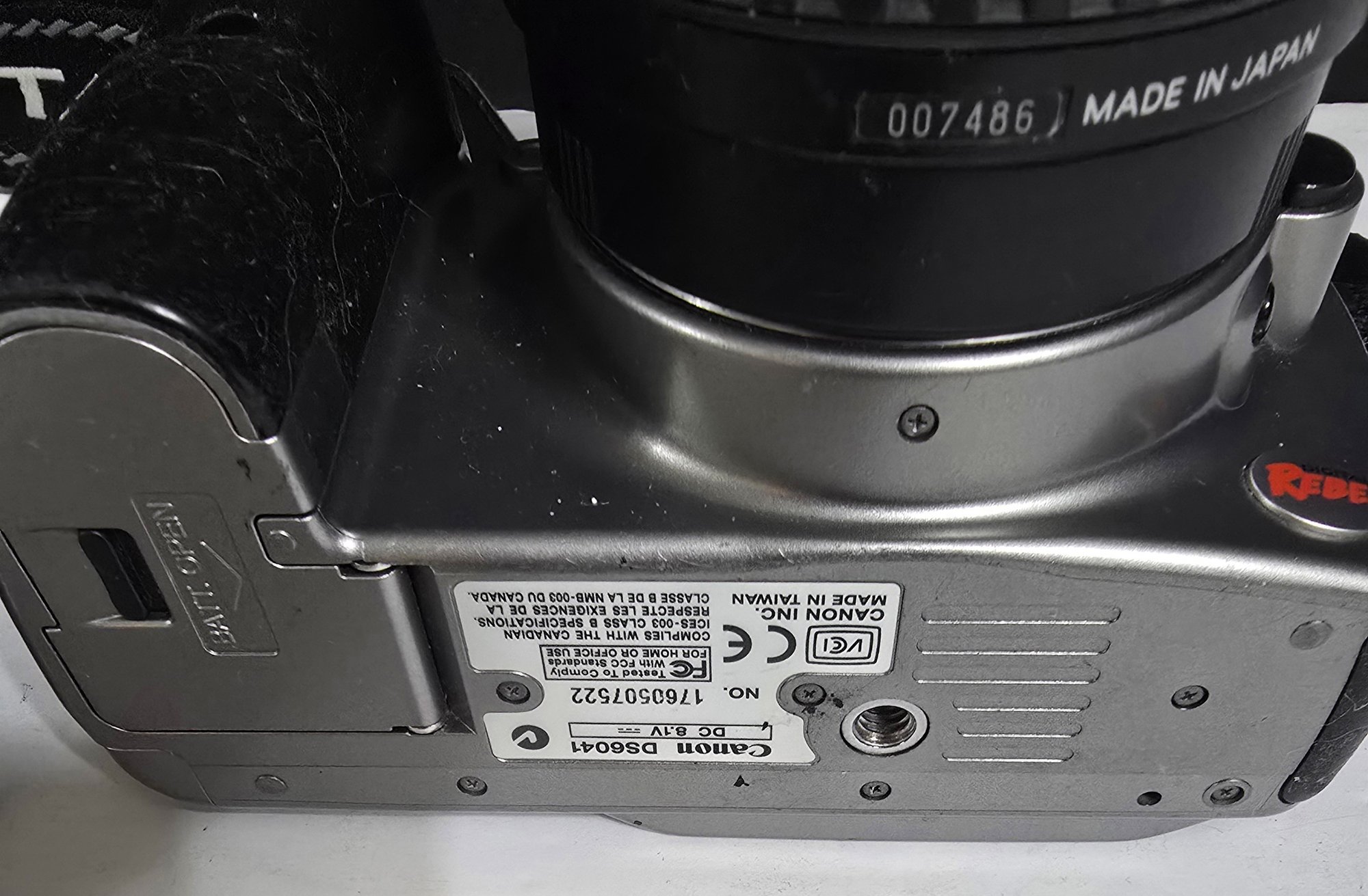 Canon EOS 300D (also known as the EOS Digital Rebel). Untested. Does not turn on. Battery may need charged or replace. Please see all pics for details.