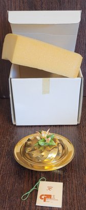 This measures 4.5" in diameter by 2.5" tall. See pictures for details