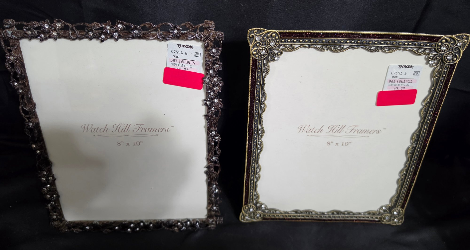 Nice variety of 8 x 10 and 5 x 7 picture frames. Includes 3 document frames. Needs cleaned. Please see all pics for details