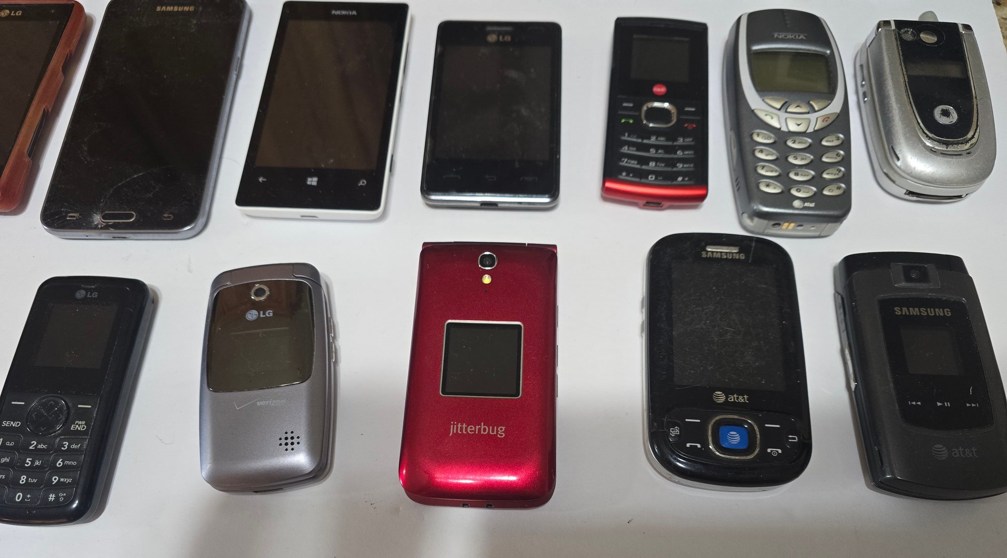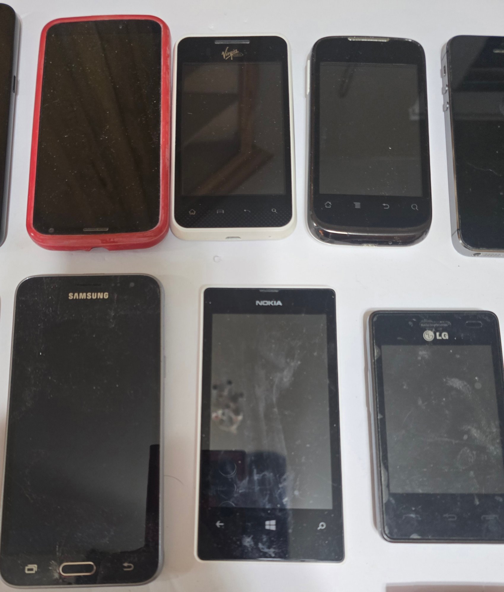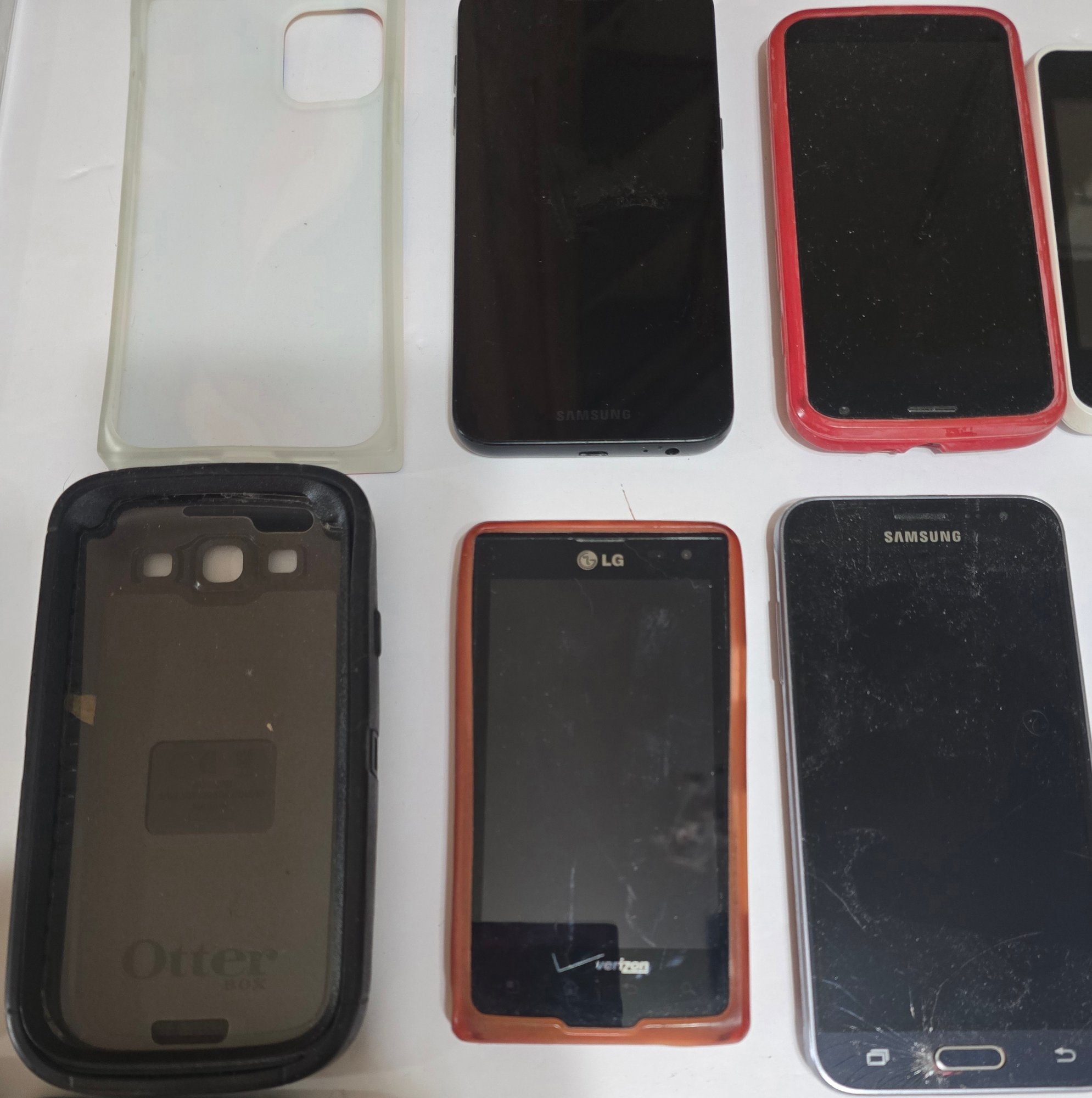 Group of different cell phones and cases. None have been tested. Listed as "PARTS ONLY". Please see all pics for details