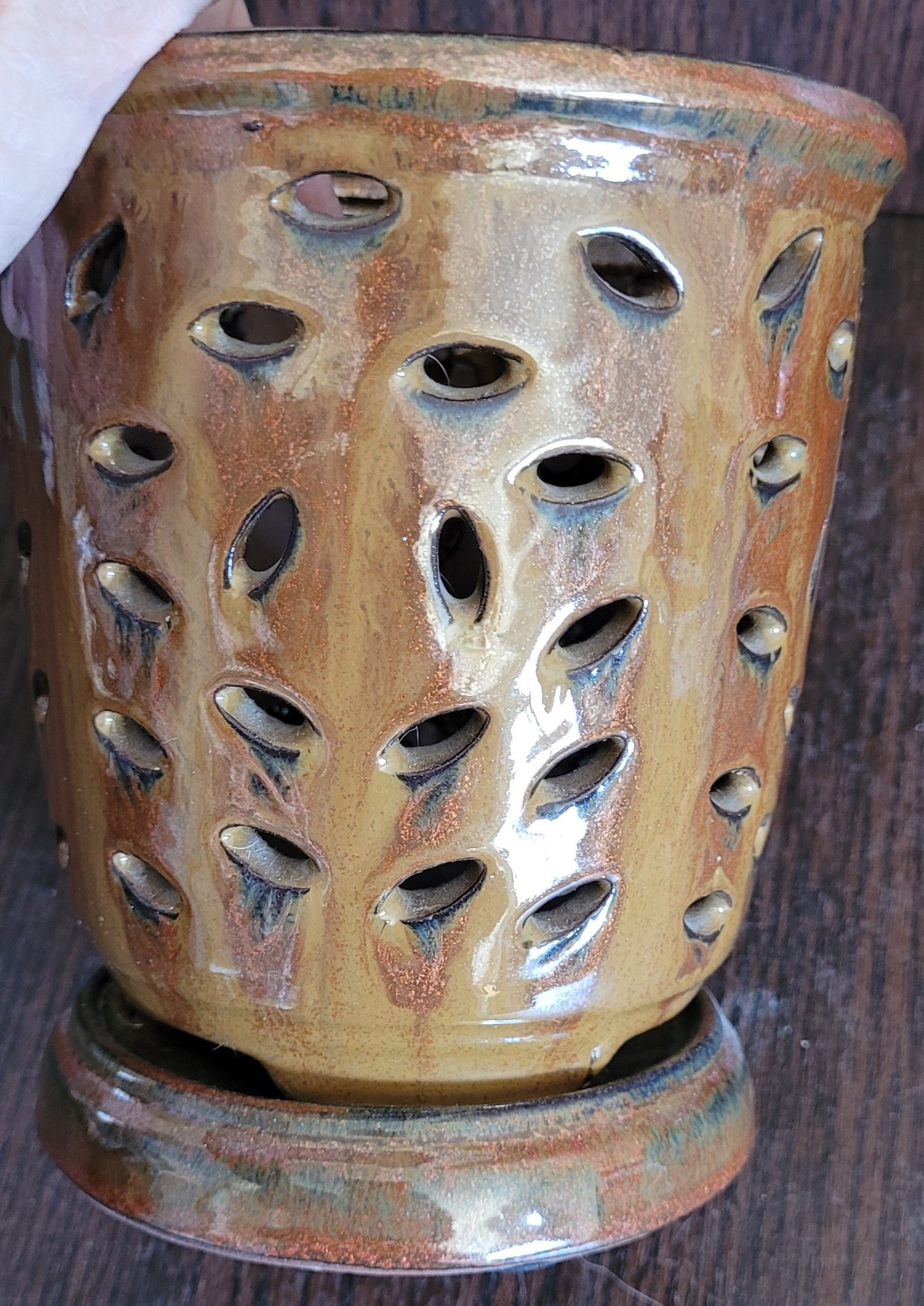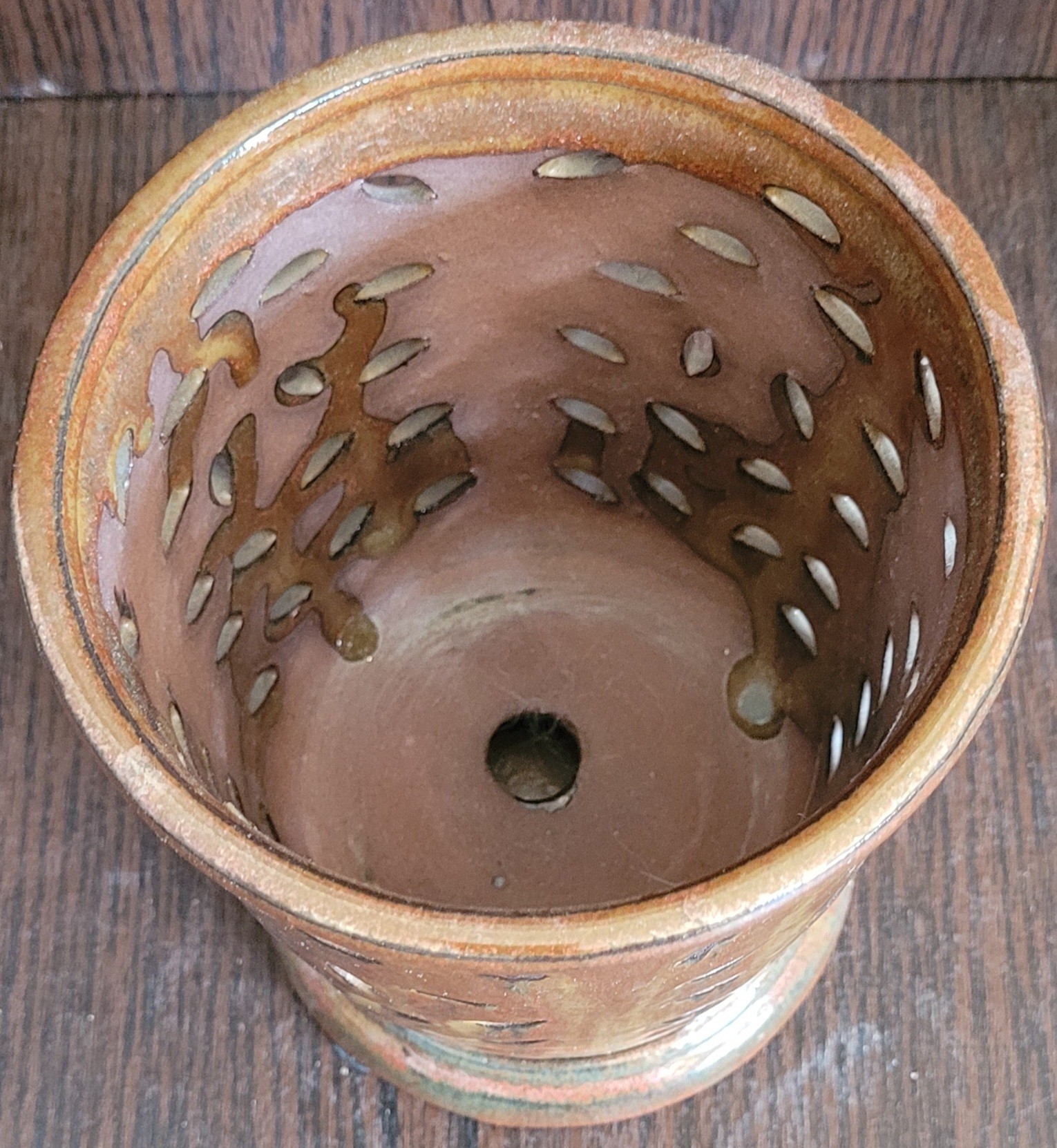 This pot measures 6" tall by 5.25" in diameter. This is in good condition. See pictures for details.