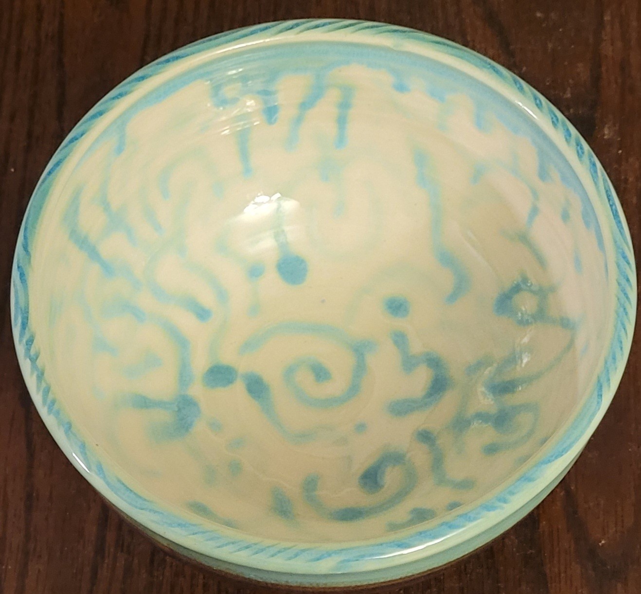 This measures 3.5" tall by 7" in diameter. It is signed on the bottom and is in good condition. See pictures for details.
