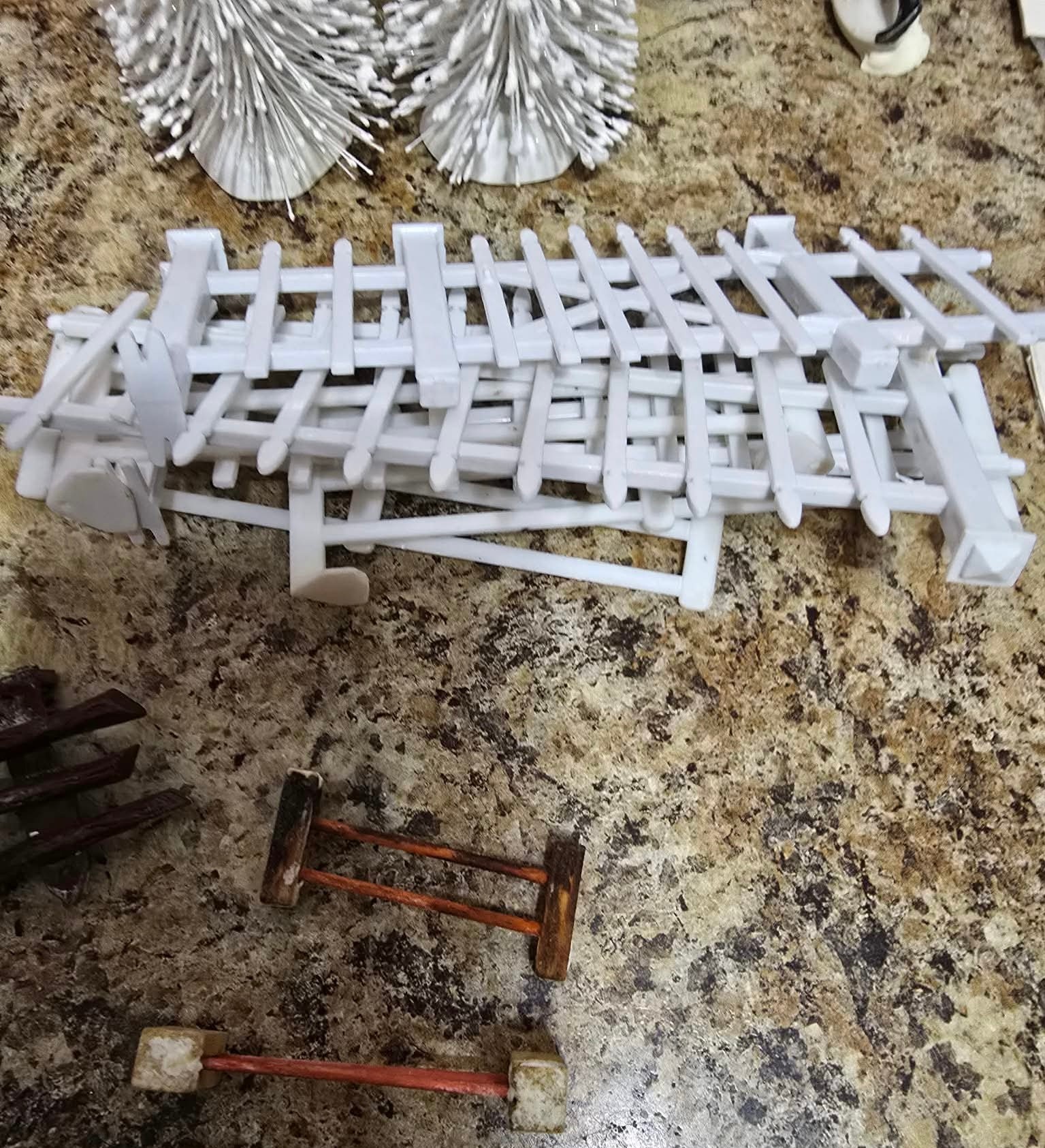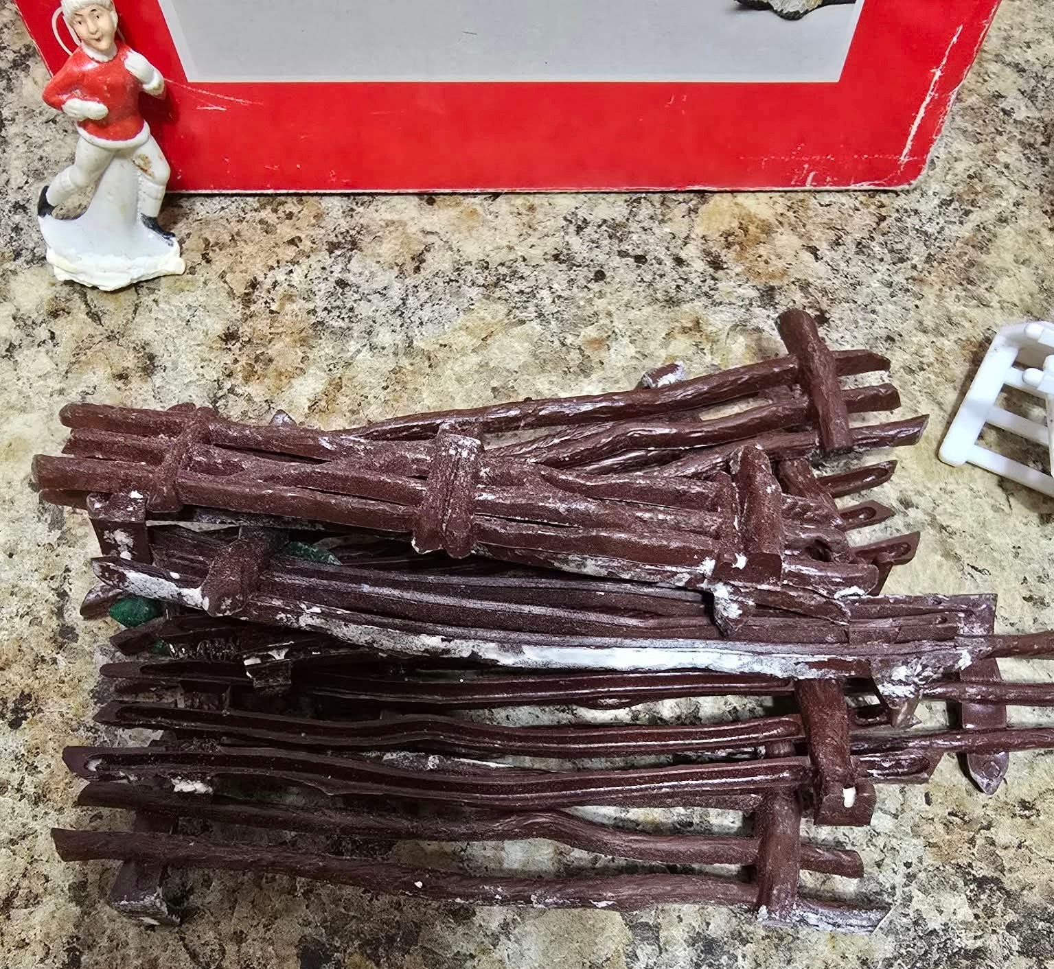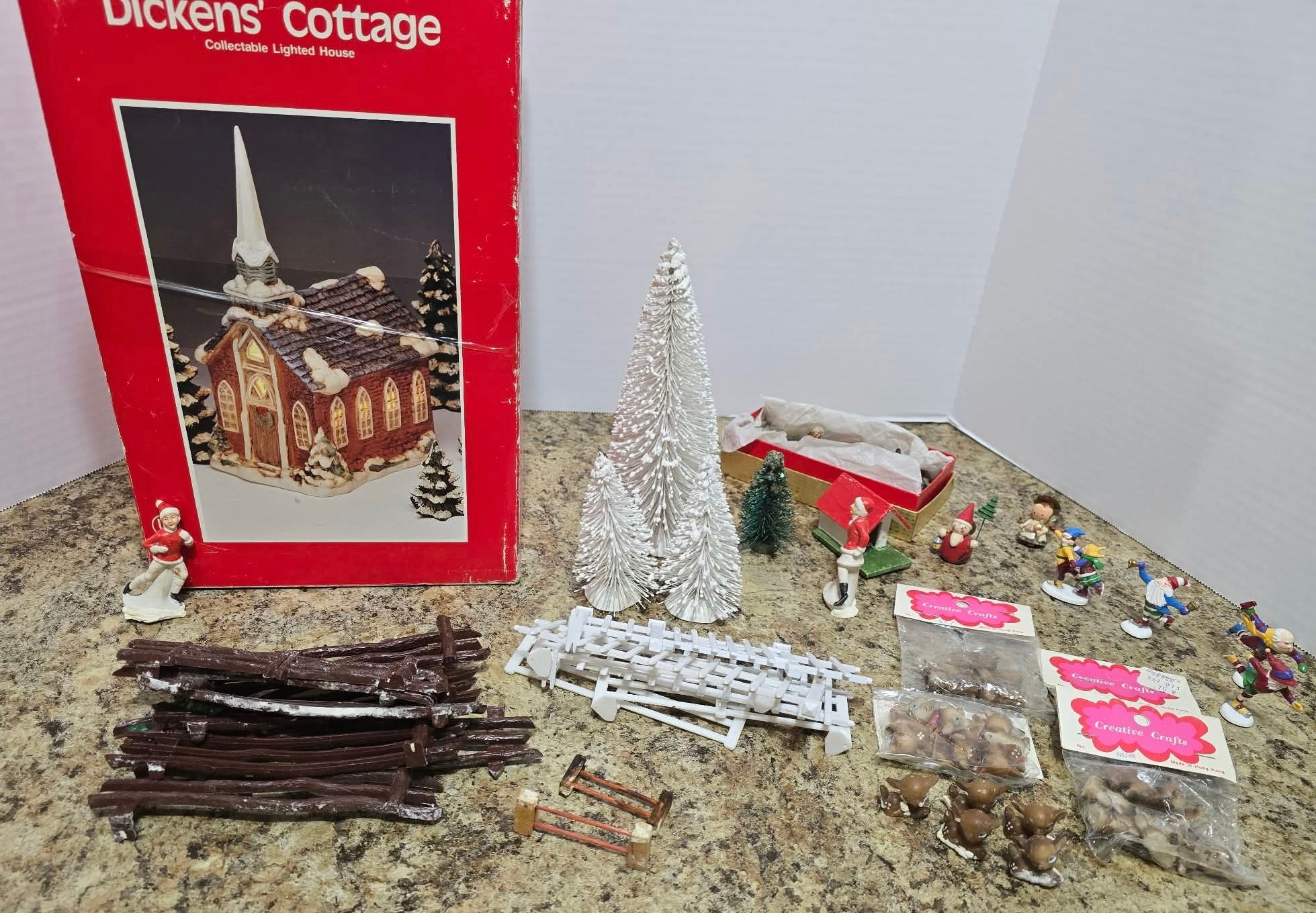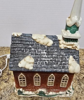 Christmas Items. House lights up. Needs cleaned. Looks like tip of steeple may be chipped.