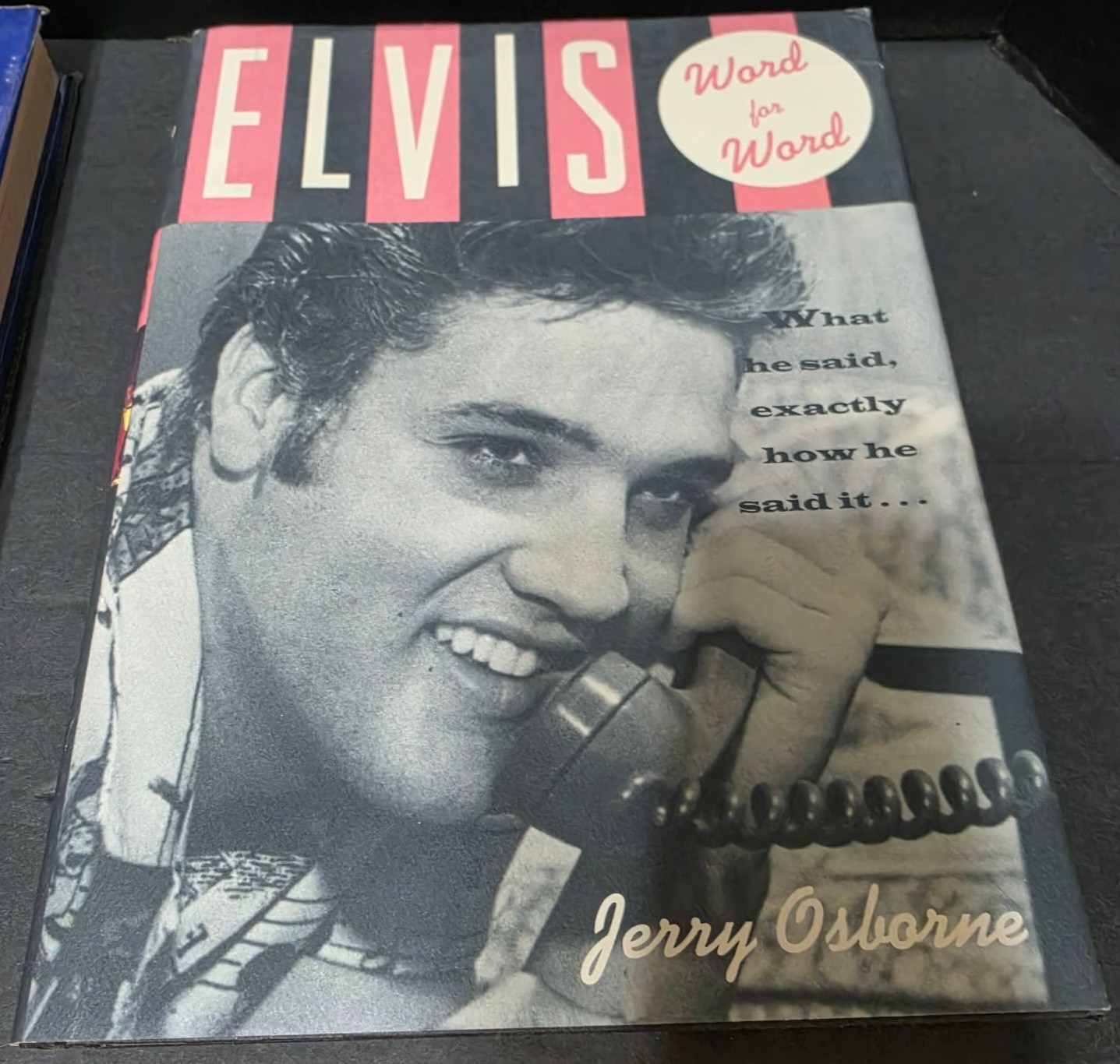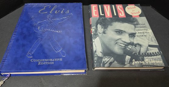 Collectible memorabilia related to Elvis Presley, specifically a "Commemorative Edition" book and a volume titled "Elvis Word for Word" by Jerry Osborne.
