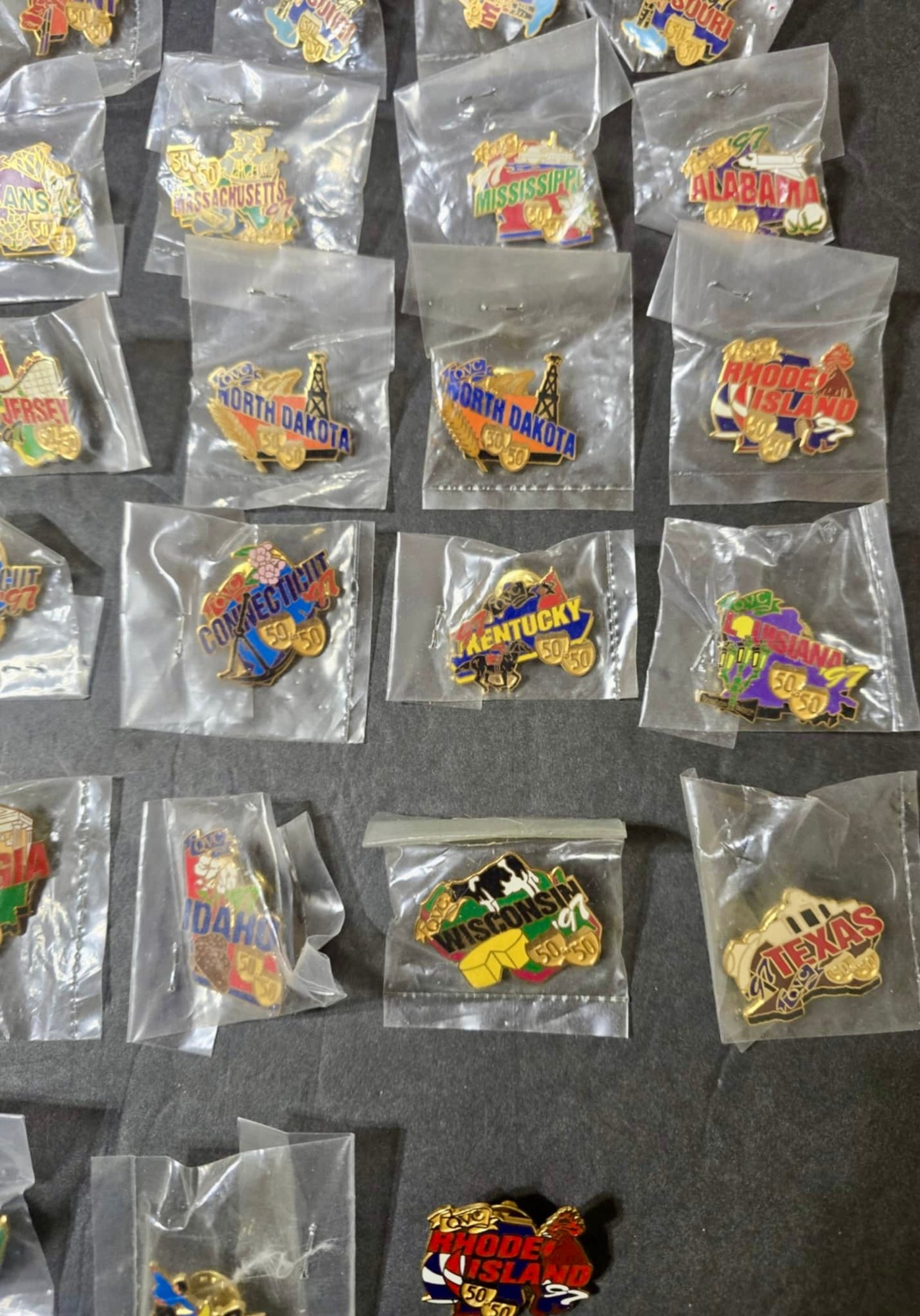 Can also be worn as a hat tack. All but one are unused and unopened packaging.