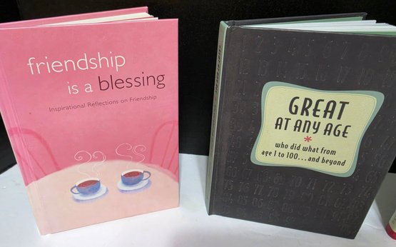 Collection of Christian-themed and inspirational hardcover books.