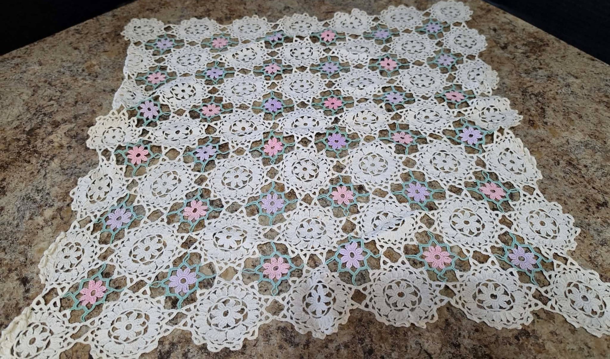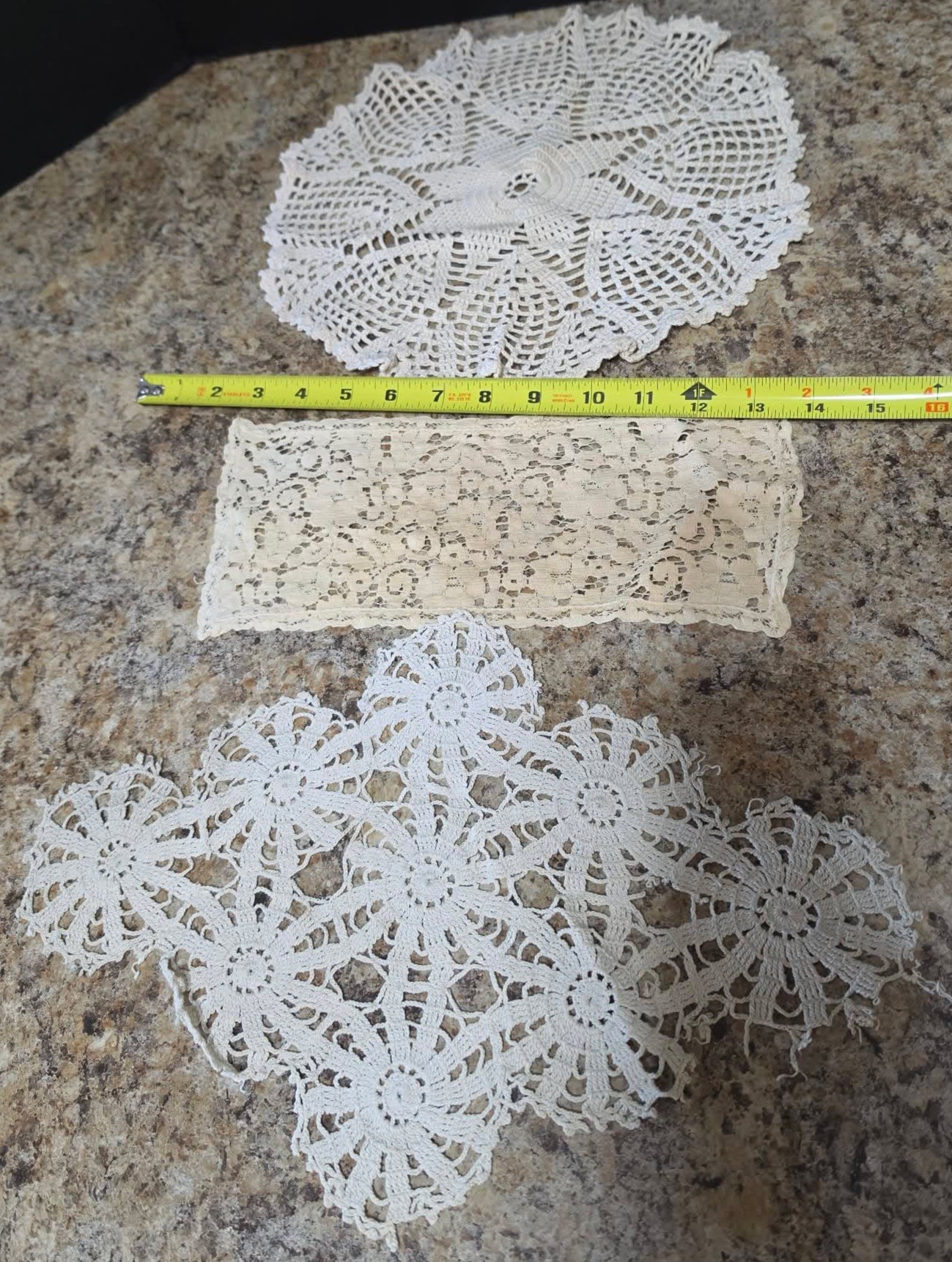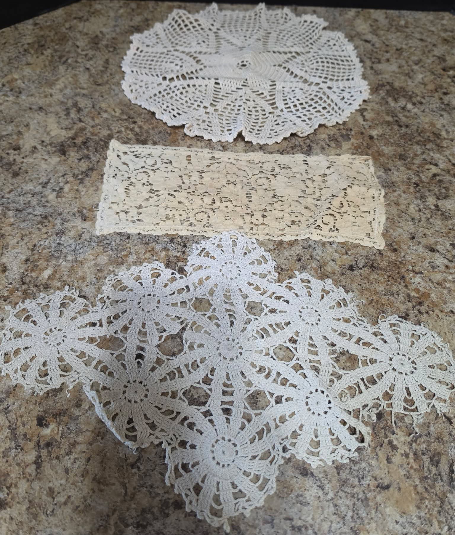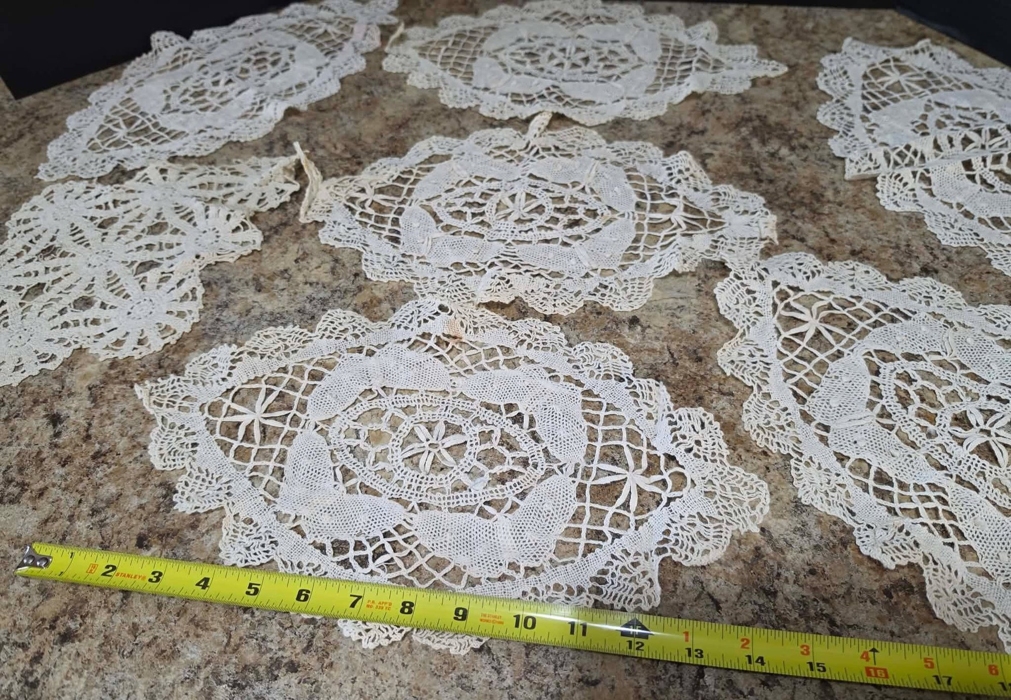 Collection of handmade vintage crochet doilies. Some staining.