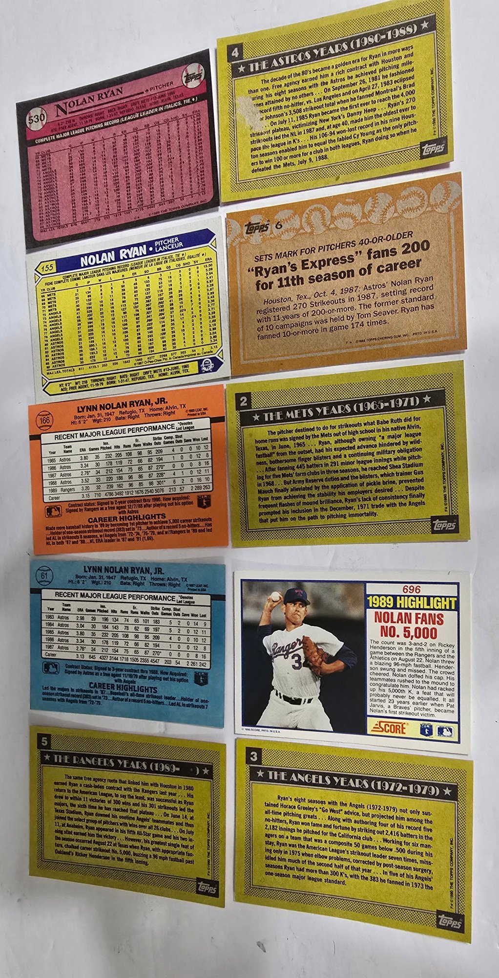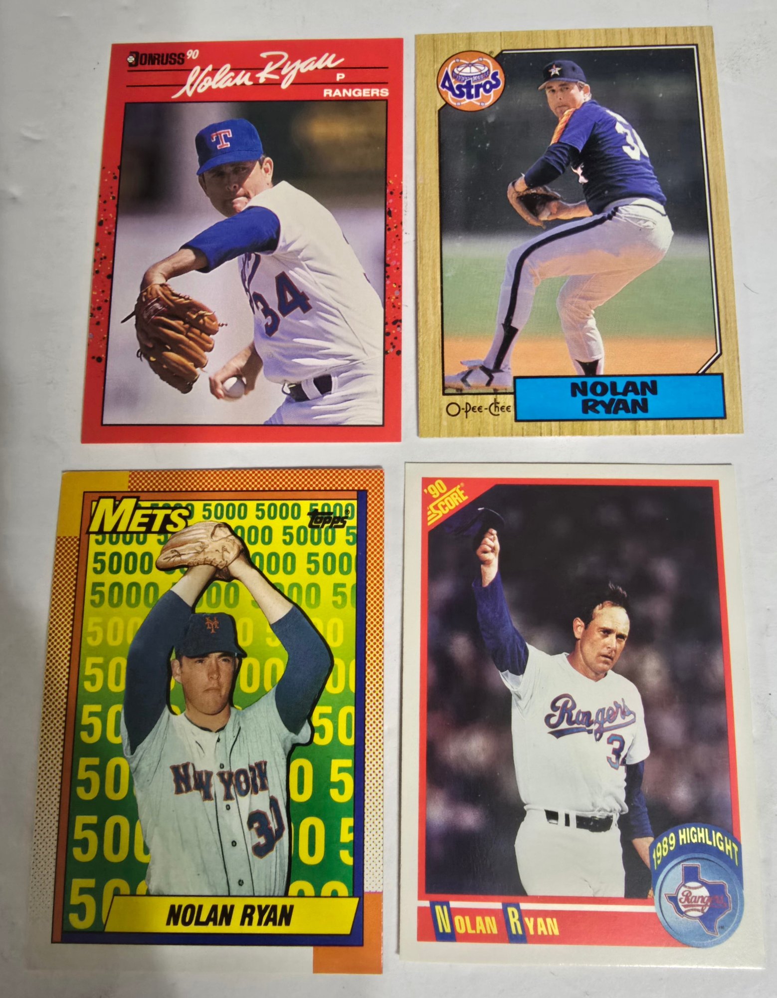 Collection of vintage Nolan Ryan baseball cards from various manufacturers like Topps, Donruss, and Score. Please see all pics for details.