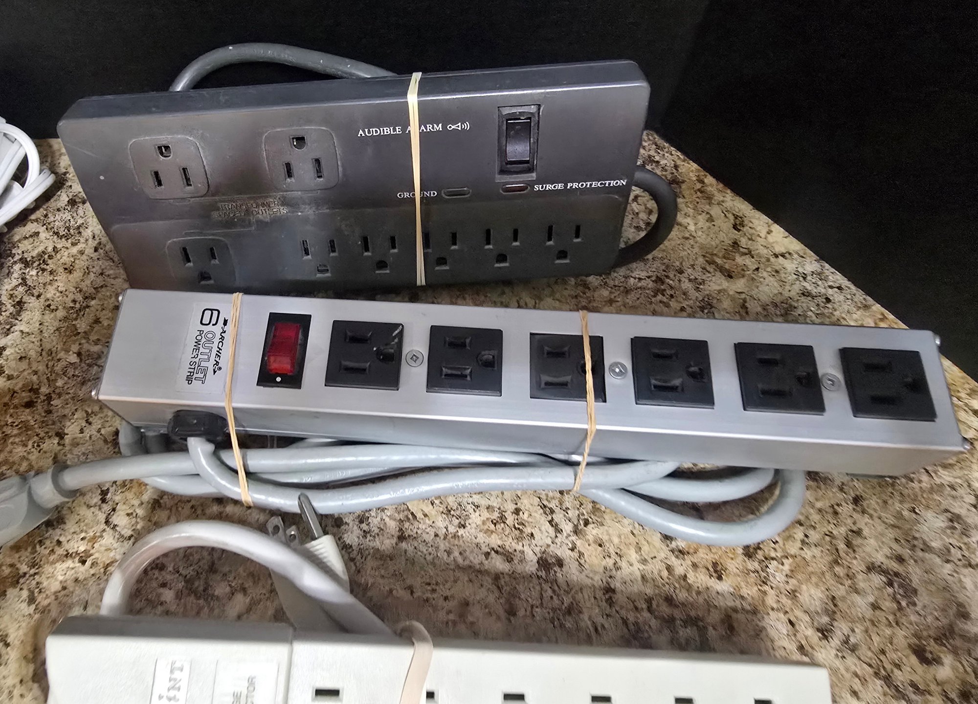 Collection of Power Strips & Indoor Extention Cords. Untested. Please see all pics for details.
