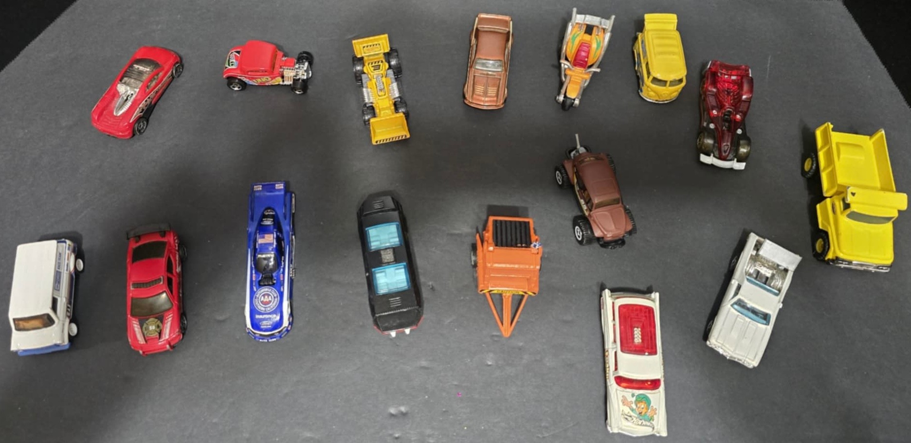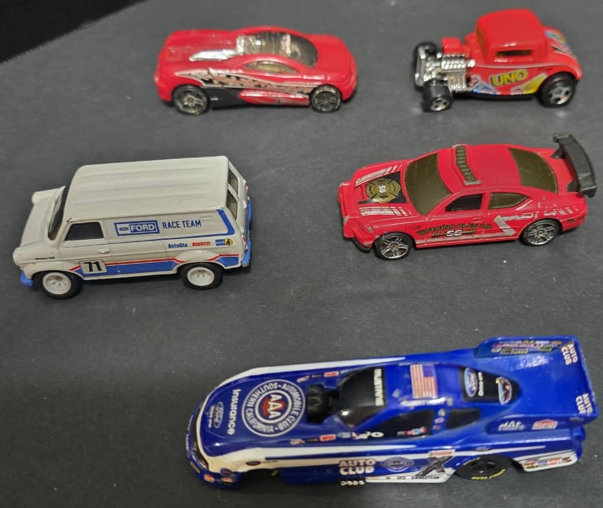 Collection of vintage die-cast toy cars.
