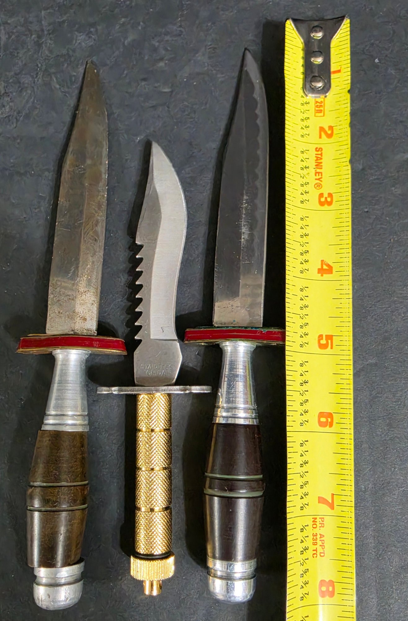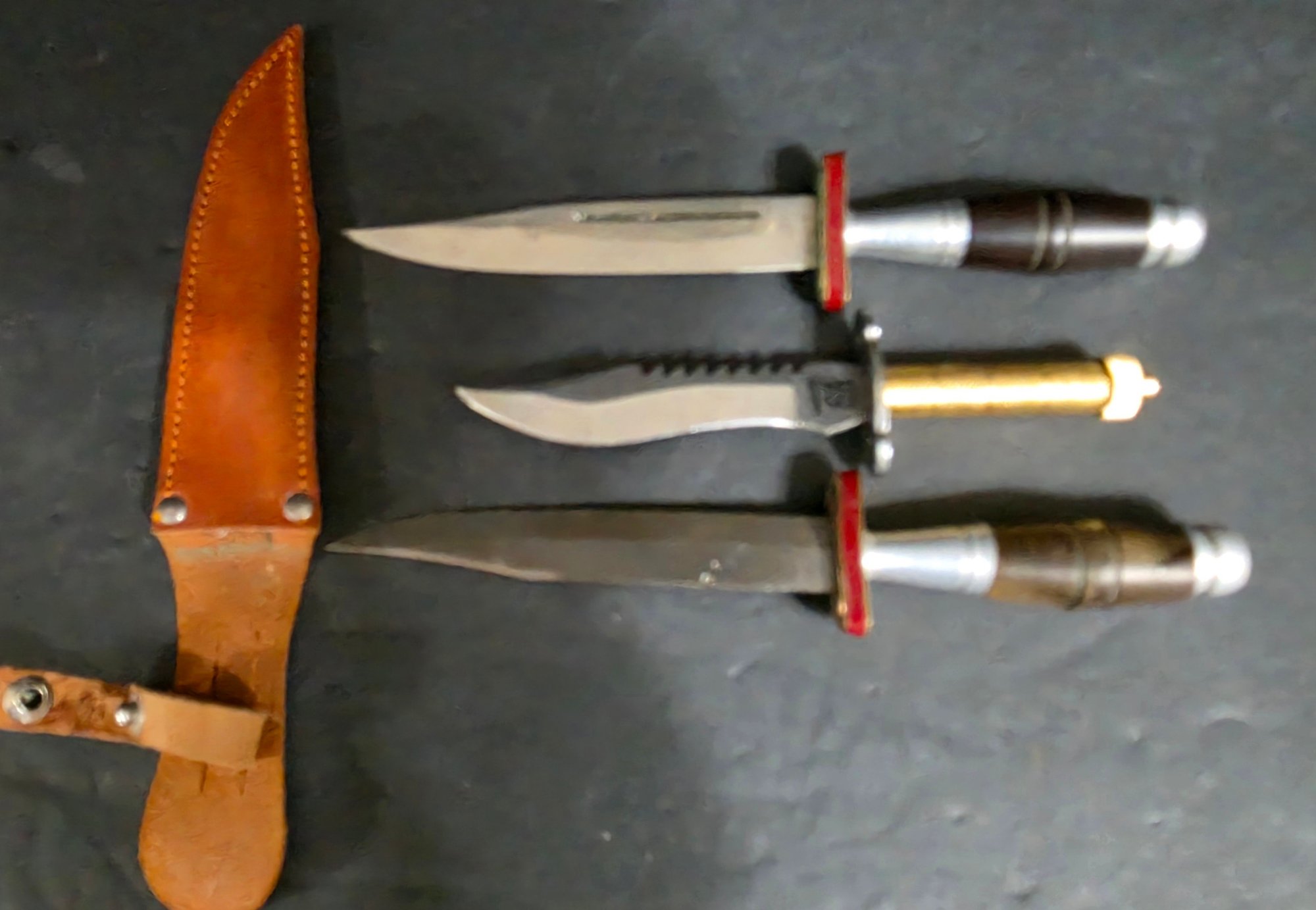 Collection of Vintage Knives. One with a Sheath. They do need cleaned. Please see all pics for details.