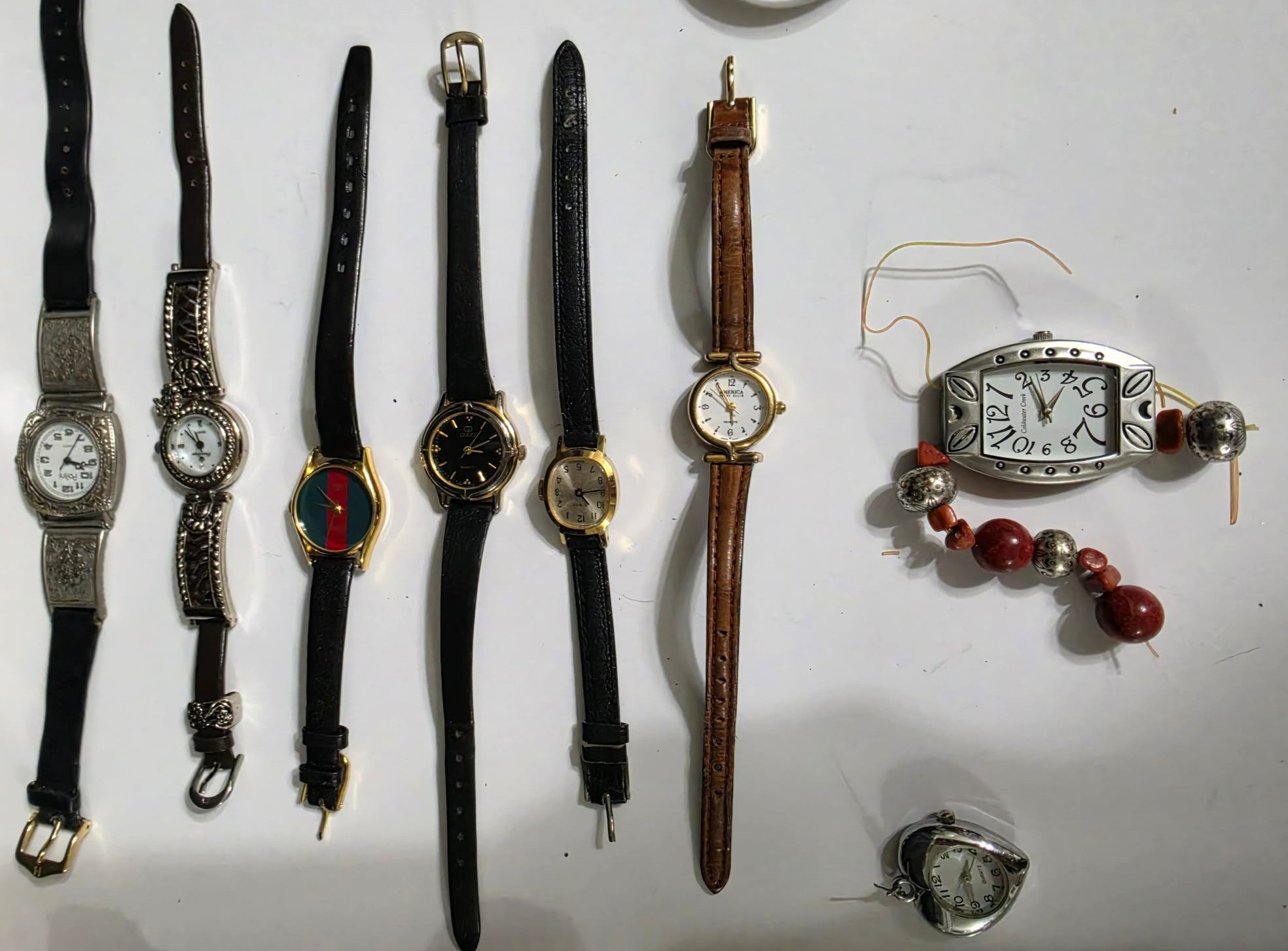 Collection of watches. Untested. Some bands broken. A couple missing the back.