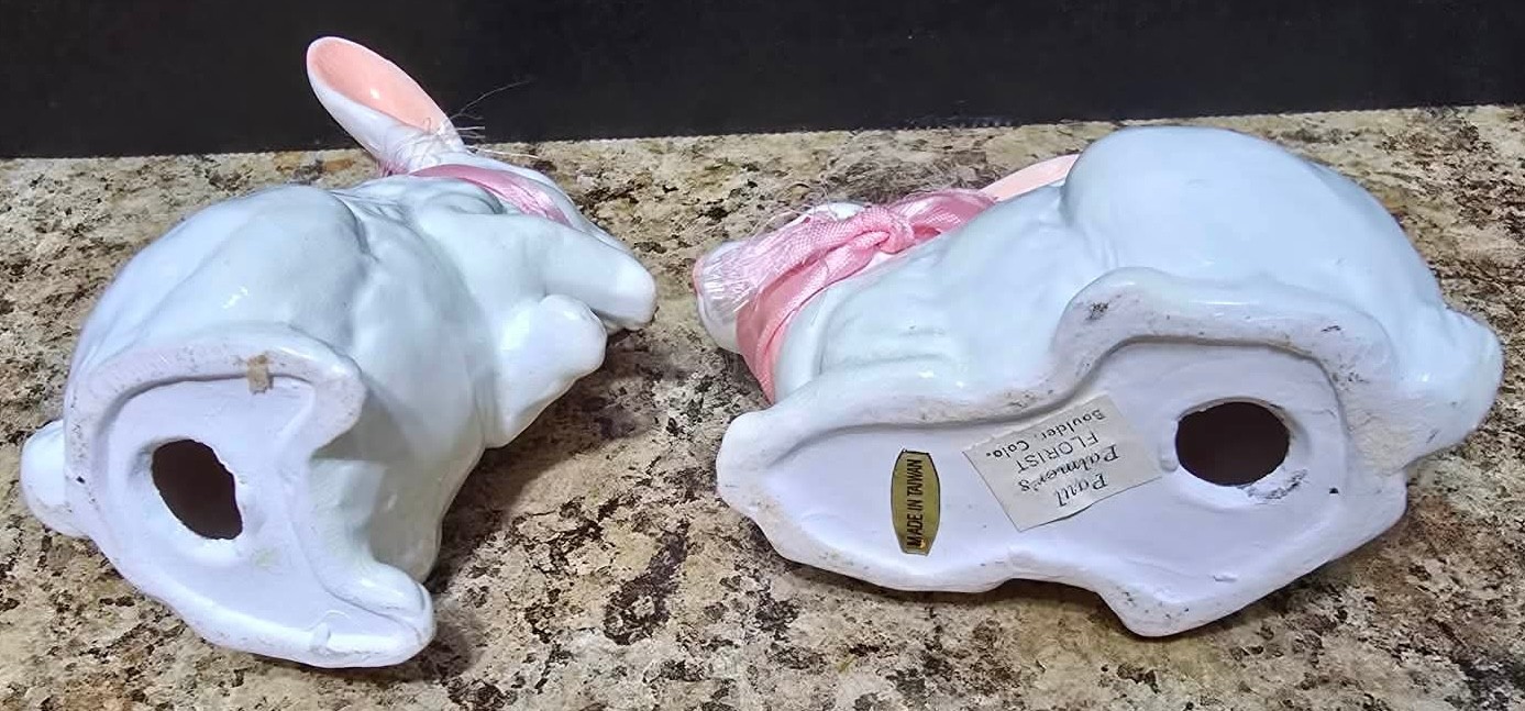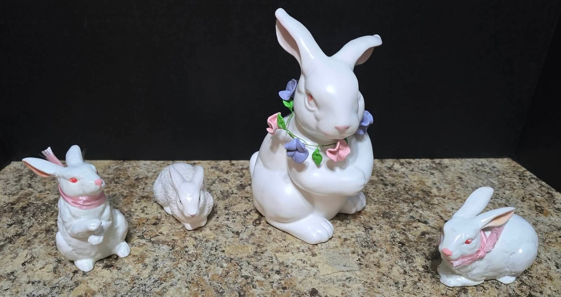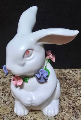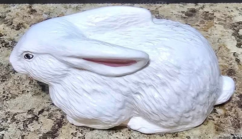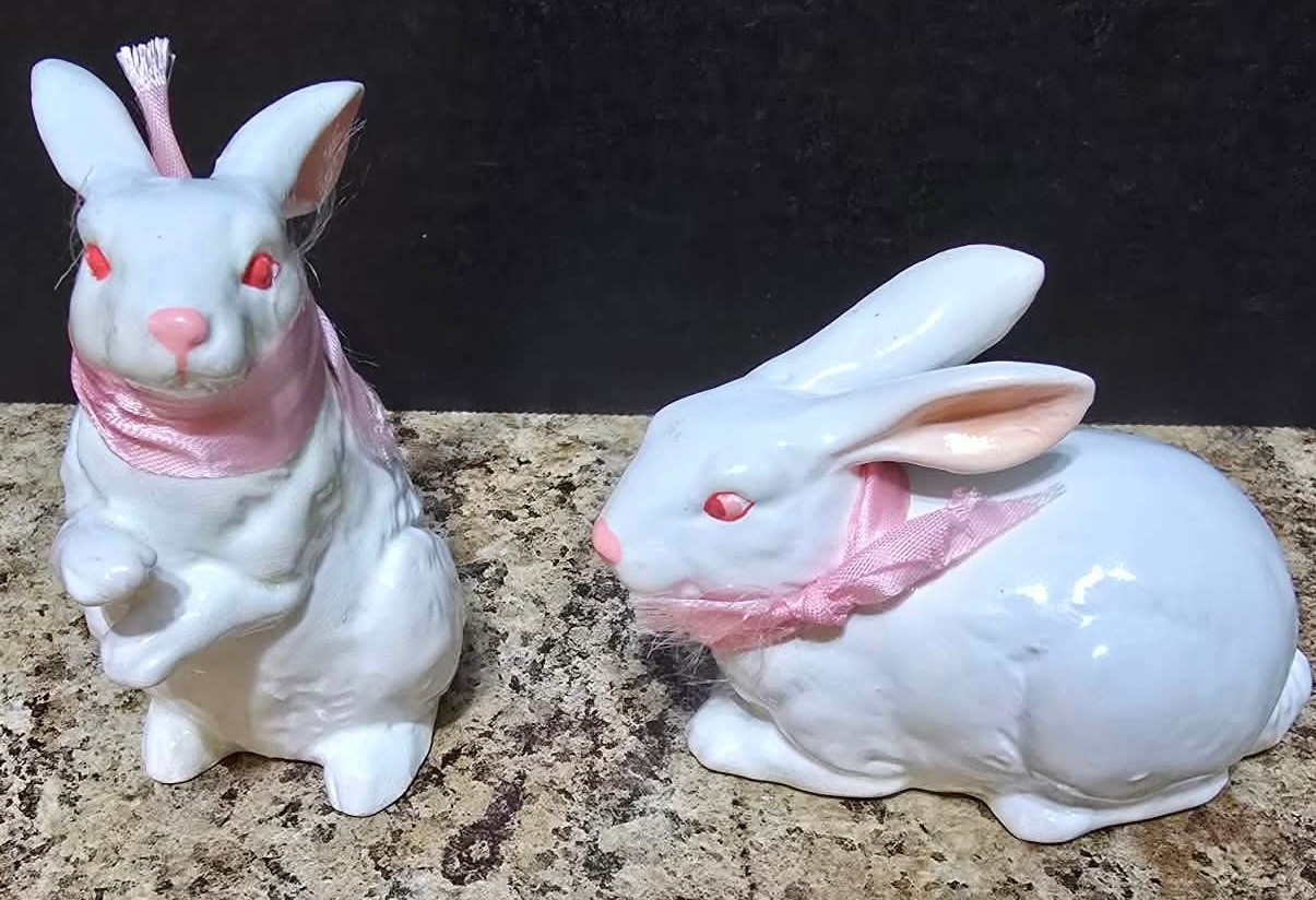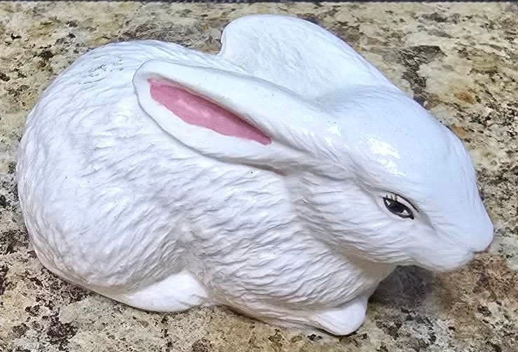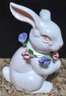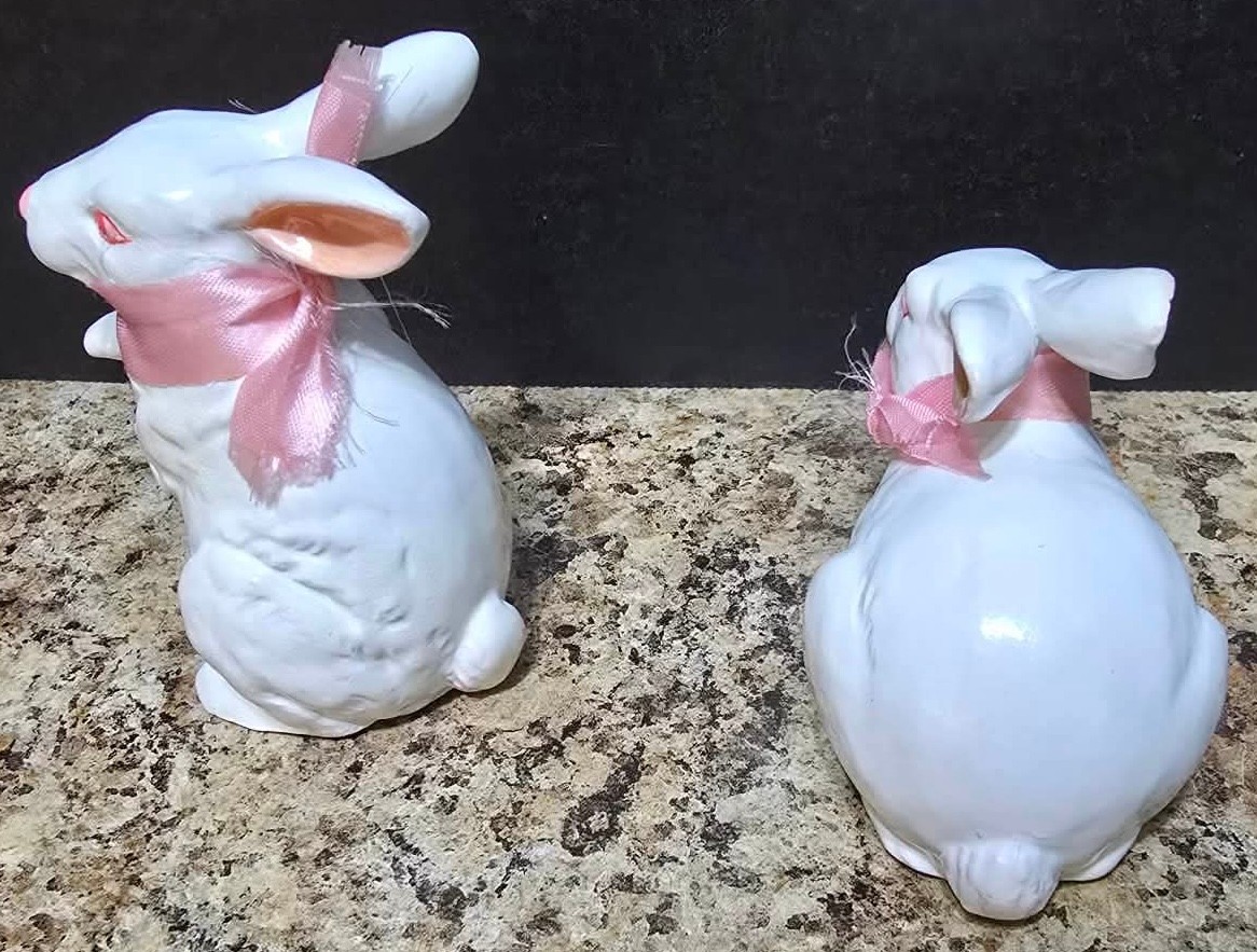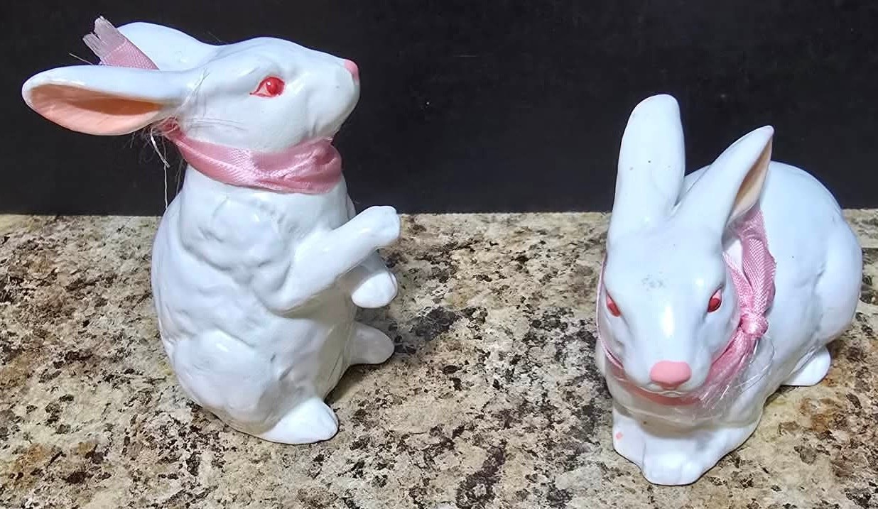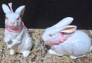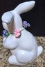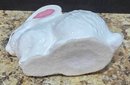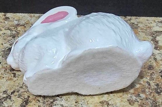 Collection of white porcelain rabbit figurines. Measures 6.5 h, 4h and 2.5h.