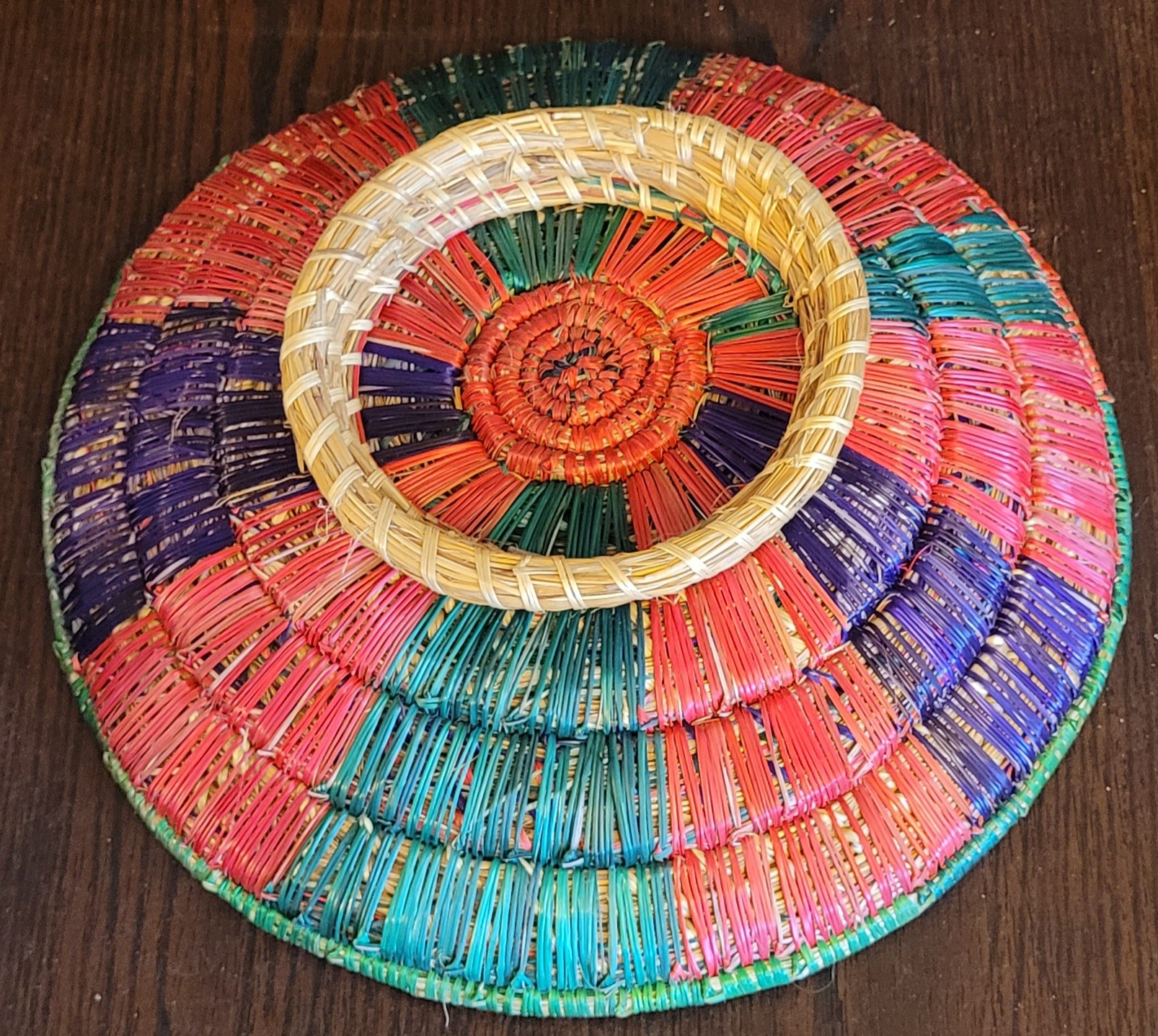 This basket measures 12.25" in diameter by 3.125" tall. See pictures for details.