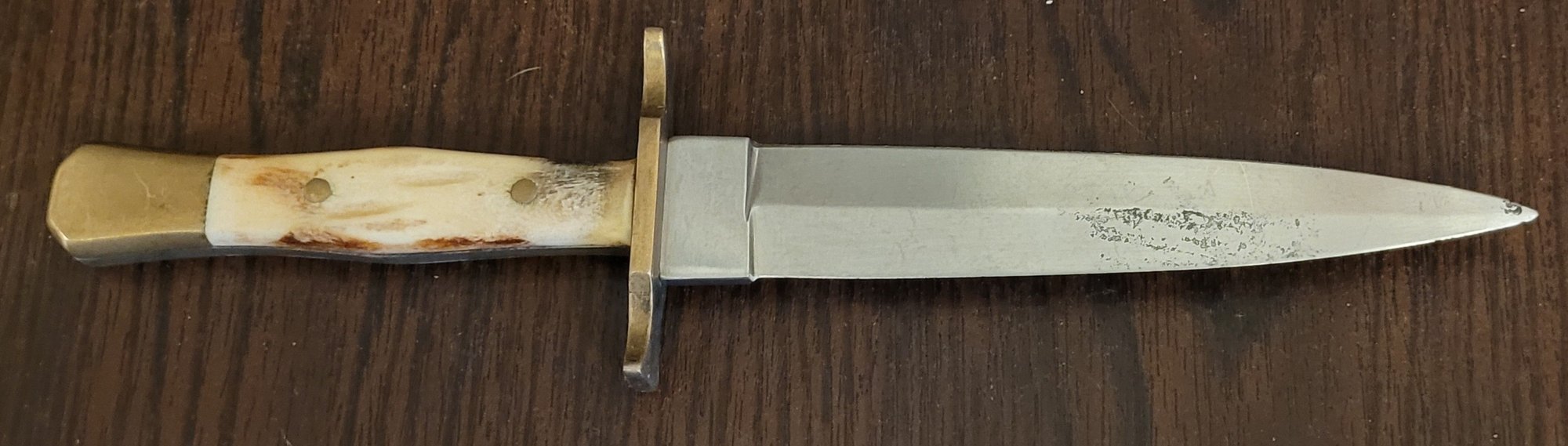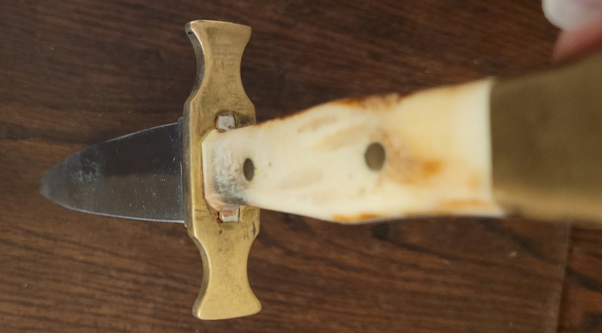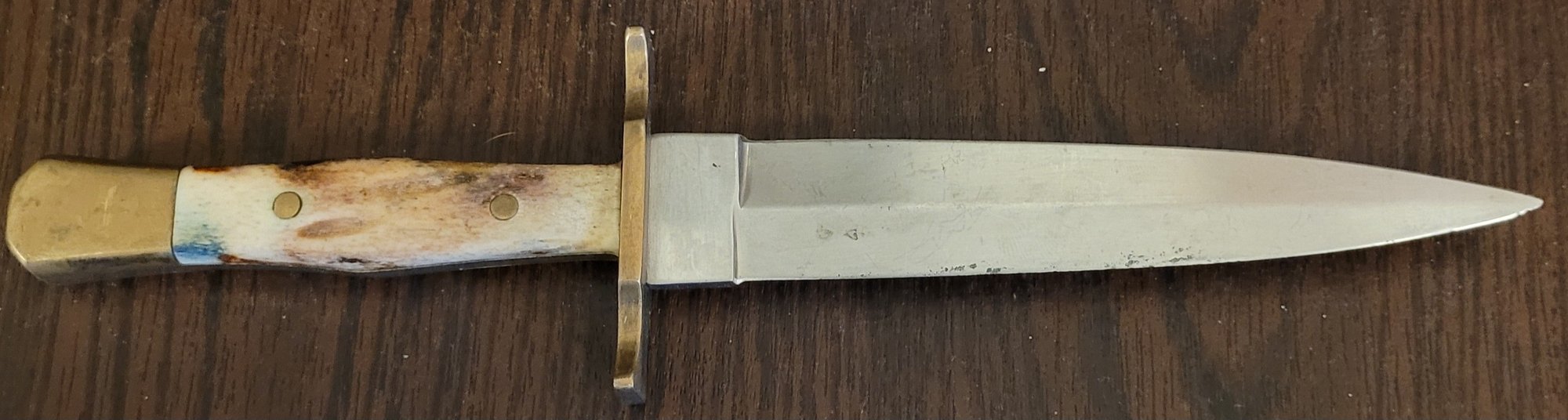 I could fine the brand on this. It measures 11.25" long and the blade measures 6.25" long. See pictures for details.