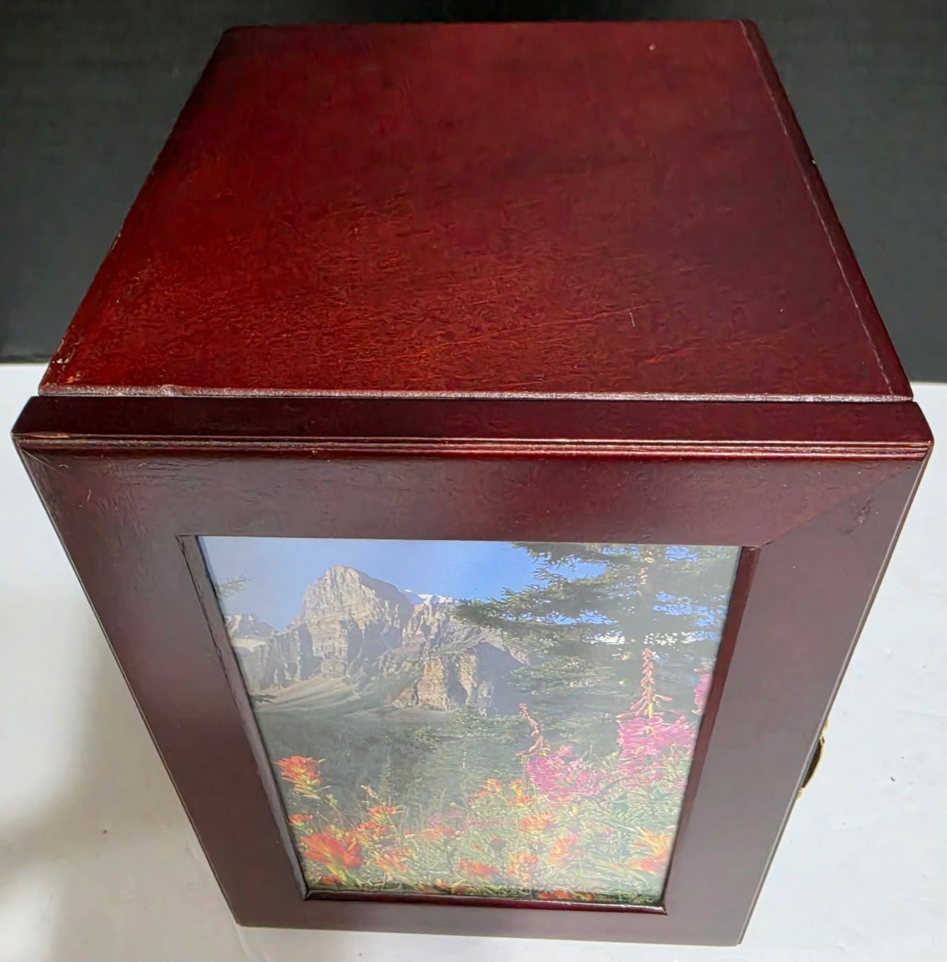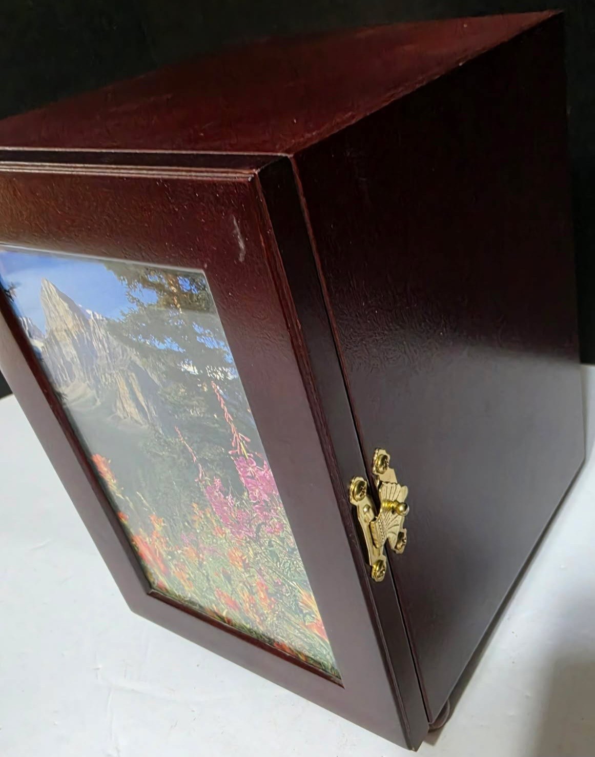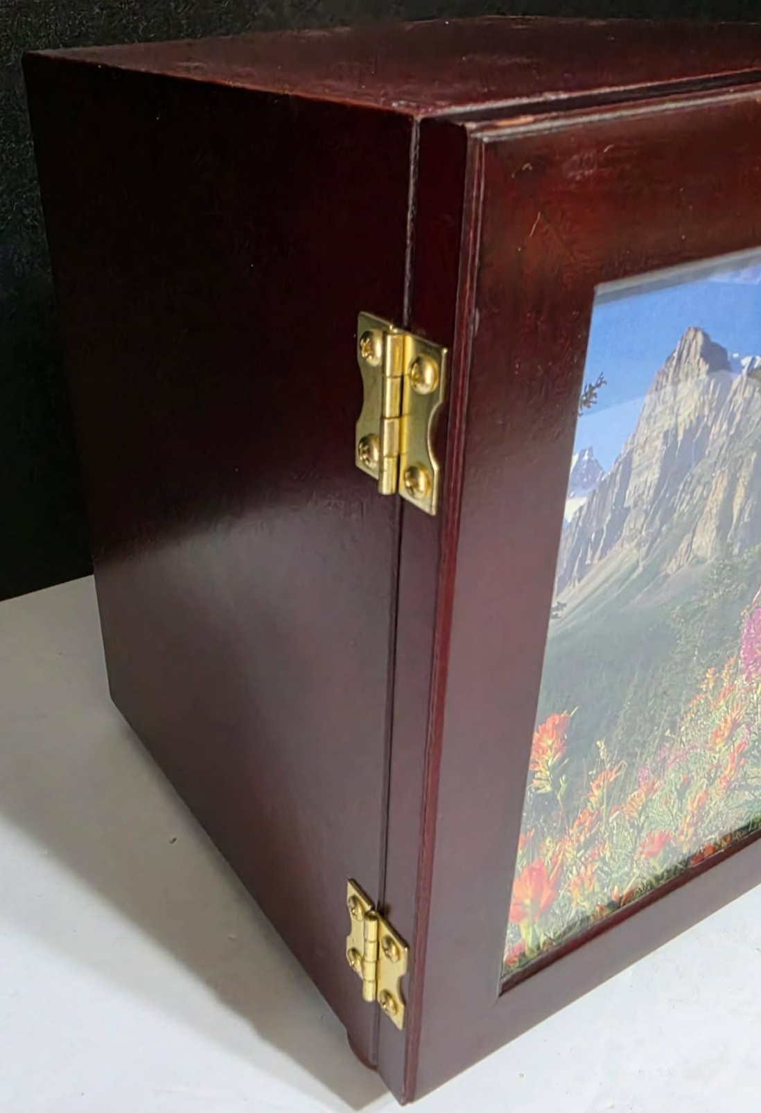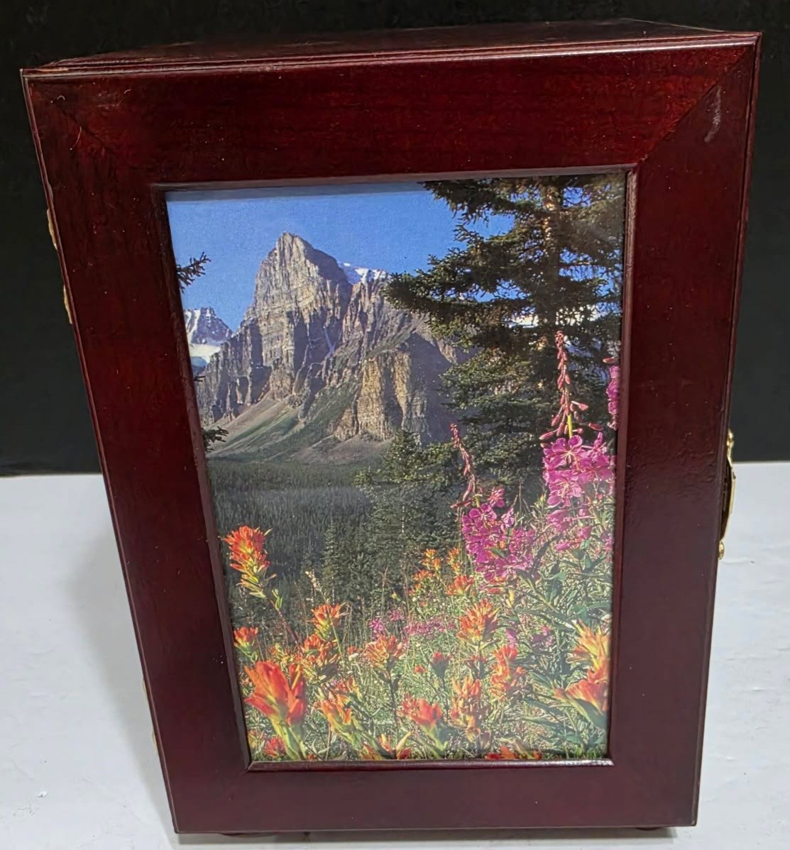 Dark Wooden Photo/Memory Box 24 Photo Spaces 4x6 Box, measures L 6in + W 5in + H 8in.