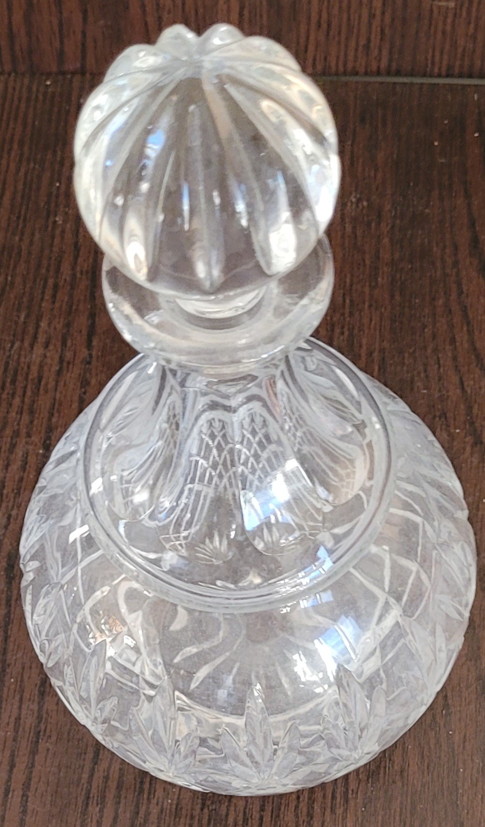 This measures 11.5" tall. The topper does have a chip on it and it needs to be cleaned. See pictures for details.