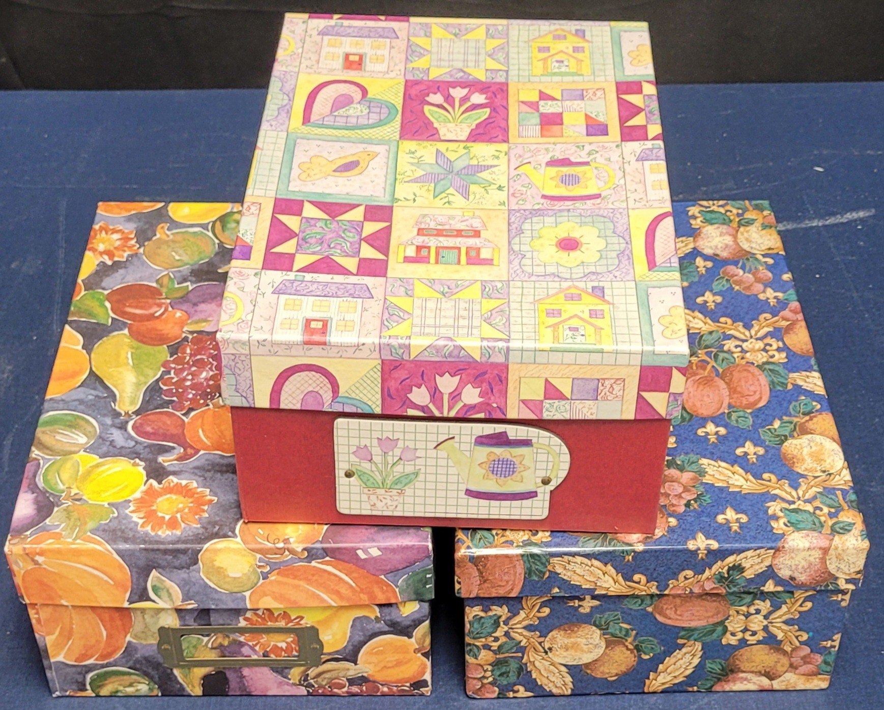 Each of these boxes come with a lid and each one measures 11.25" long by 7.75" wide by 4.5" tall. See pictures for details.