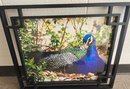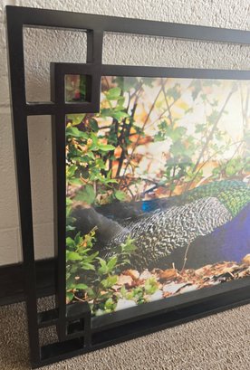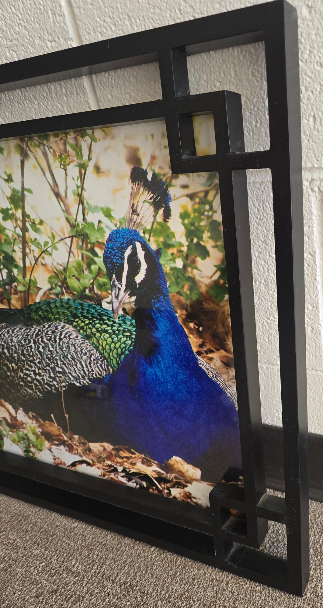 Decorative framed peacock wall art, Measures 22 x 20. Please see all pics for details.