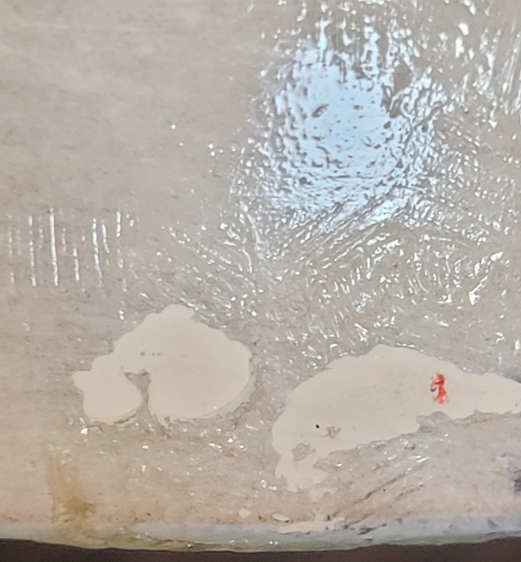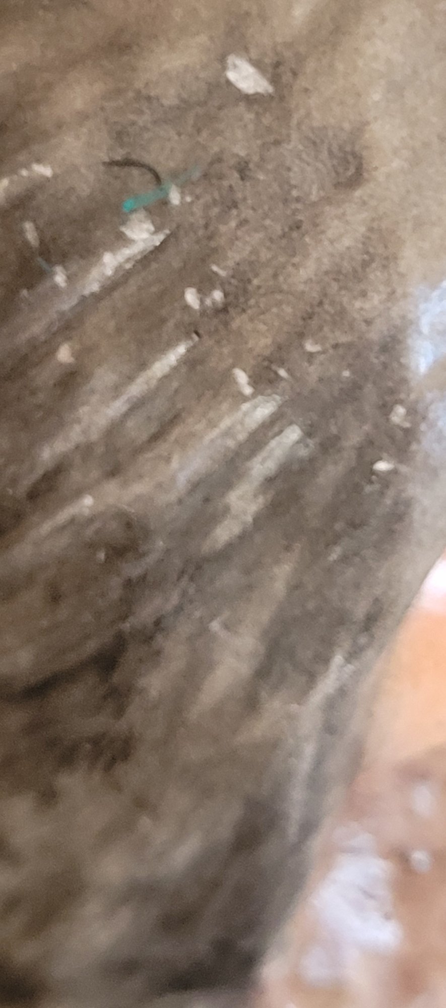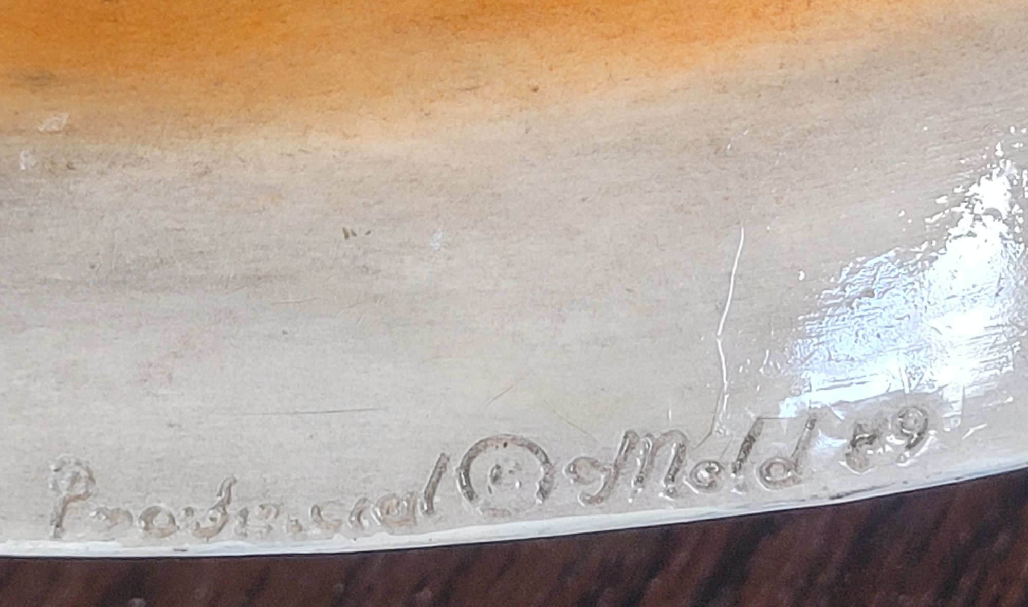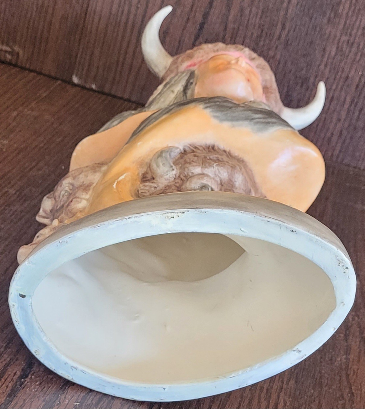 This measures 8.25" tall. It does have some chipping paint. It is signed. See pictures for details.