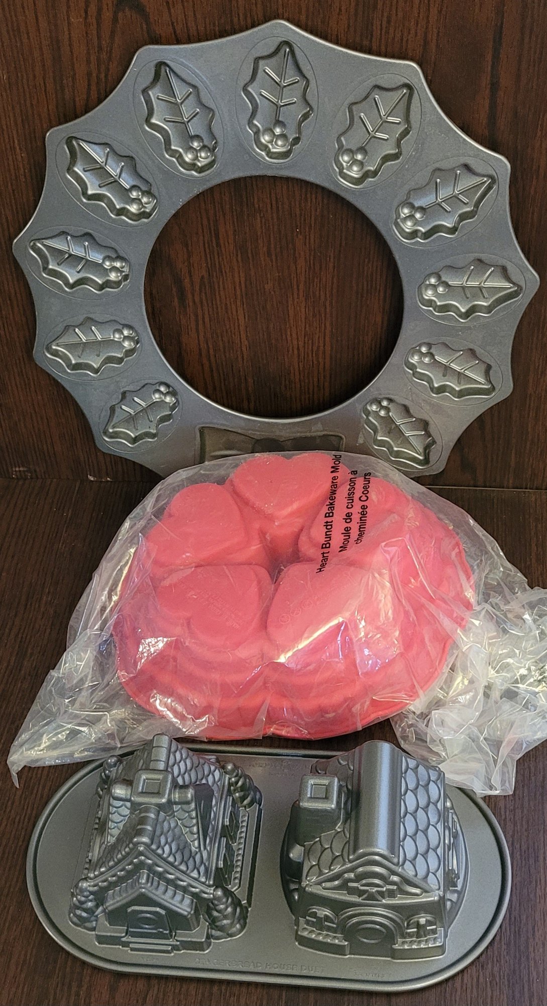 This lot comes with 3 different baking items. The bunt pan is still in the original packaging. See pictures for details.