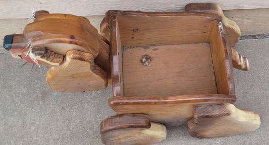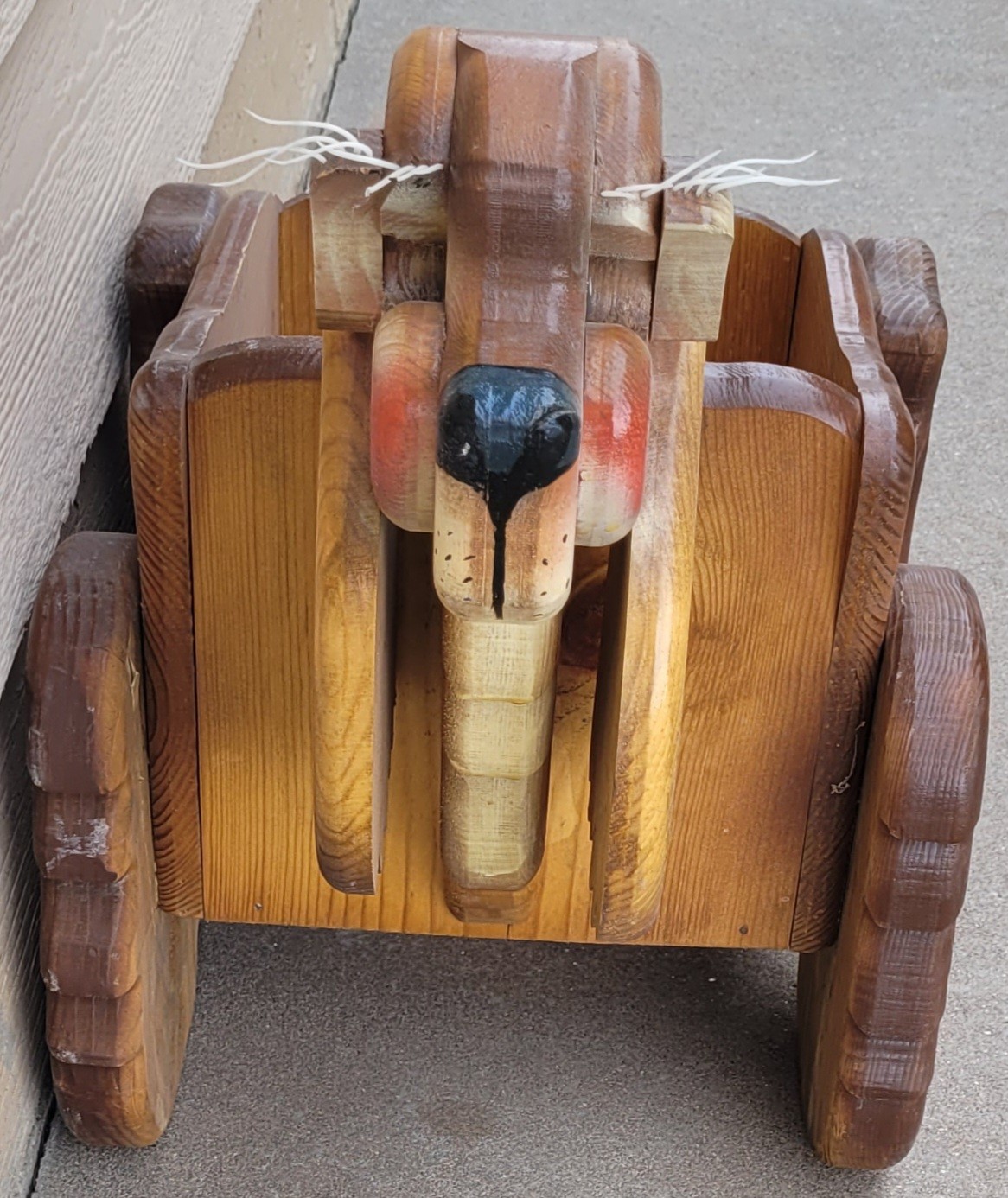 This measures 26.5" long by 14" wide by 20.25" tall. The tail on it needs to be nailed back on. See pictures for details. Not shippable